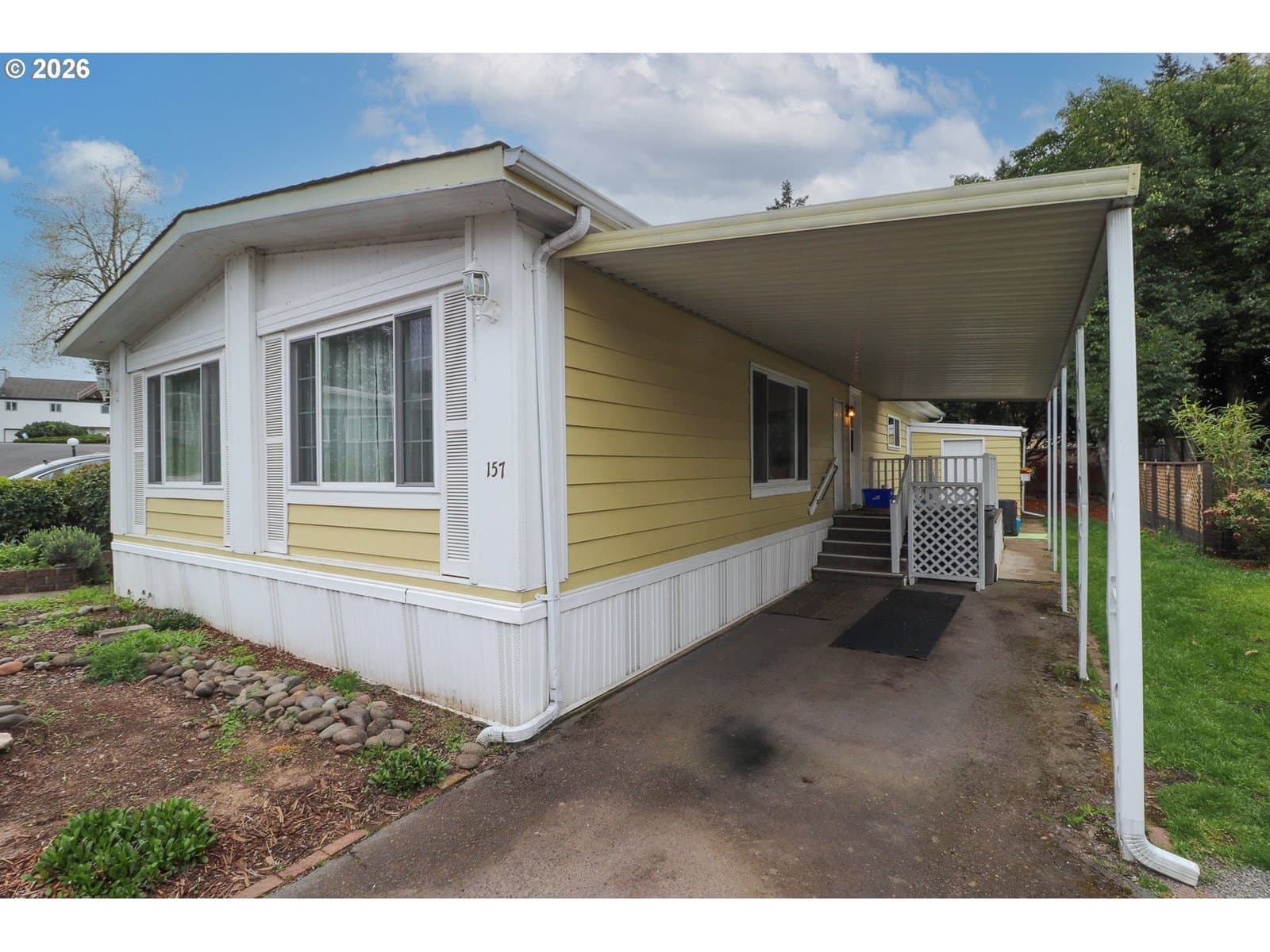 1974 Golden West doublewide in a 55+ community offering 1,464 sq. ft. with 2 bedrooms and 2 bathrooms. This home features a large living room plus a separate family room, giving you plenty of space to spread out. A mini-split heat pump provides efficient heating and cooling, and an 8' x 10' tool shed adds extra storage. The home is a fixer and is being sold in as-is condition, offering a solid opportunity for someone ready to make improvements. Park approval is required. Convenient location near shopping with quick highway access.