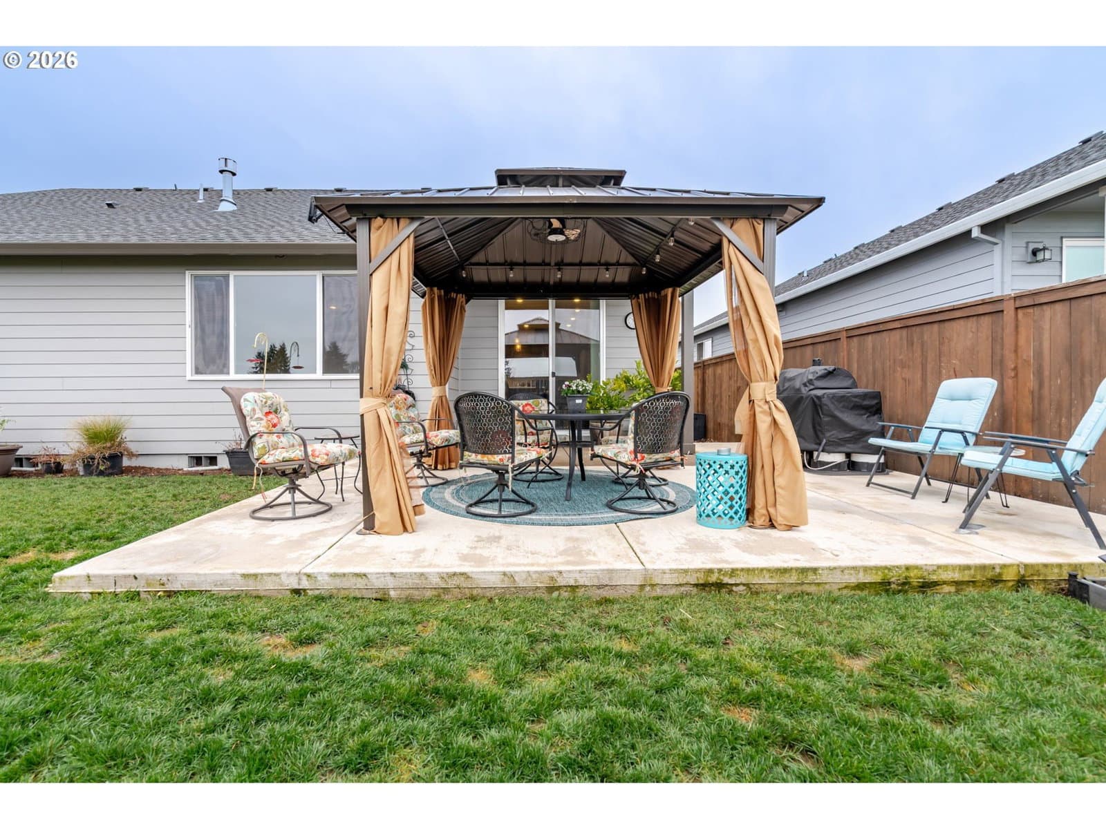 It feels like Home! Step inside this well appointed one-level Elmhurst Plan home. Layout features open Great Room with a cozy fireplace. The kitchen is a Chef's delight with oversized island, quartz counters, 5 burner gas range, and walk-in pantry. Plenty of space for entertaining inside and outside. Primary Suite is a restful retreat. LVP flooring throughout. Better than new - see upgrades.