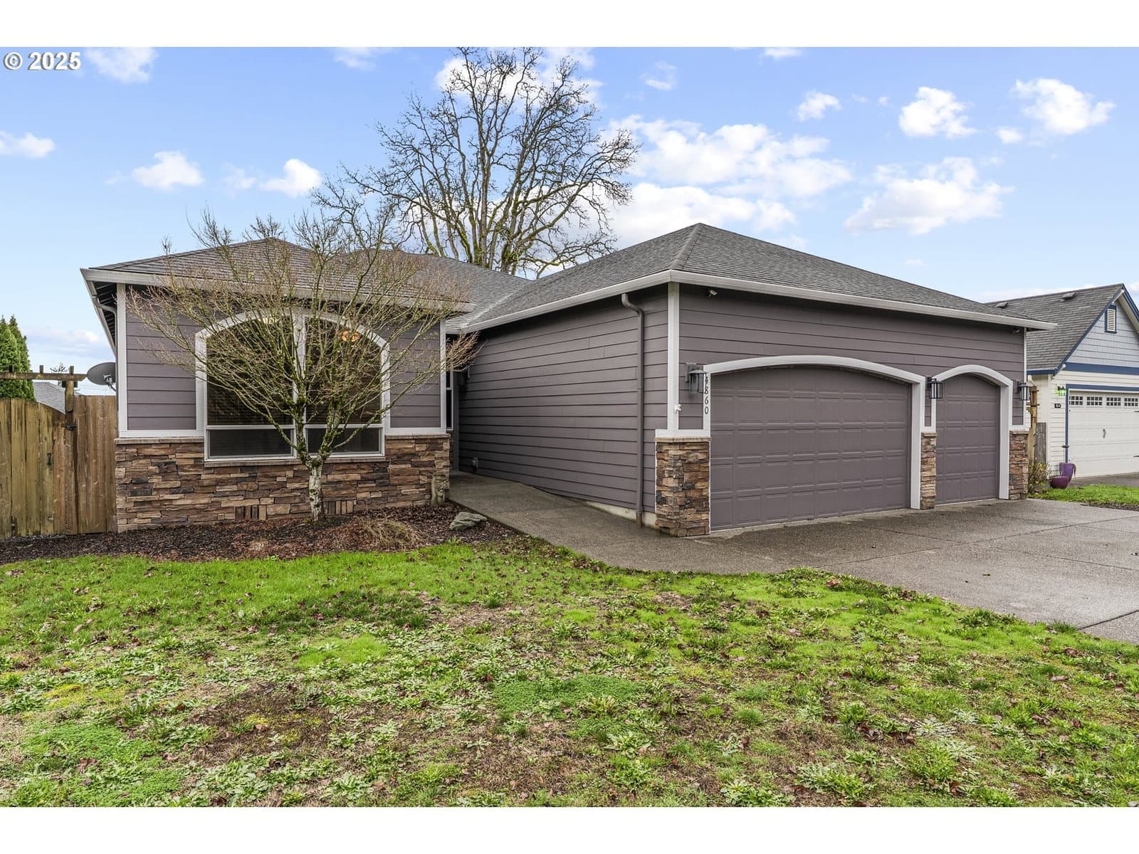 This 2,568 sq ft home offers a comfortable, open layout, beautiful inlayed wood floors, spacious kitchen with granite counters, large island, stainless appliances and an easy flow to the family room with gas fireplace. 3 bedrooms+ (fourth bedroom was converted into a walk-in closet for the primary suite and could easily be converted back). Primary bathroom features a jetted tub, tiled shower and heated bathroom floors. Some smart features throughout, wired for speakers inside and out, fenced backyard with deck, built in vac system, sprinkler system for easy maintenance. Quiet neighborhood, no HOA, and conveniently located near the golf course and pickleball courts. Warm, well-cared-for home that feels good the moment you walk in.
