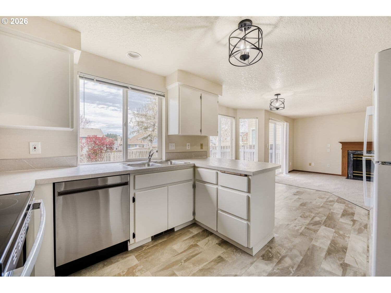 On the market for the first time, this highly sought-after Bull Mountain Meadows plan offers a desirable layout with four bedrooms, large room sizes, and numerous vinyl windows and skylights for great natural light. It's been meticulously maintained and thoughtfully updated with no detail overlooked. Highlights include a brand-new composition roof, fiber cement siding, all-new flooring, new fixtures, recent water heater, and more! Open-concept kitchen offers new countertops, freshly painted white cabinets, new flooring, appliances including new SS dishwasher and range, and a bayed dining nook. The kitchen is open to the family room, featuring a gas fireplace and slider to the deck and backyard beyond. Deluxe primary suite includes vaulted ceilings, walk-in closet, skylight, updated vanity with dual sinks, and walk-in shower. There are three more generously sized bedrooms upstairs, plus a second updated full bathroom and convenient laundry closet. Great lot with fenced backyard offering deck, irrigation, and mature landscaping. Unbeatable location, just minutes from Progress Ridge and its outstanding amenities. Great Beaverton schools!
