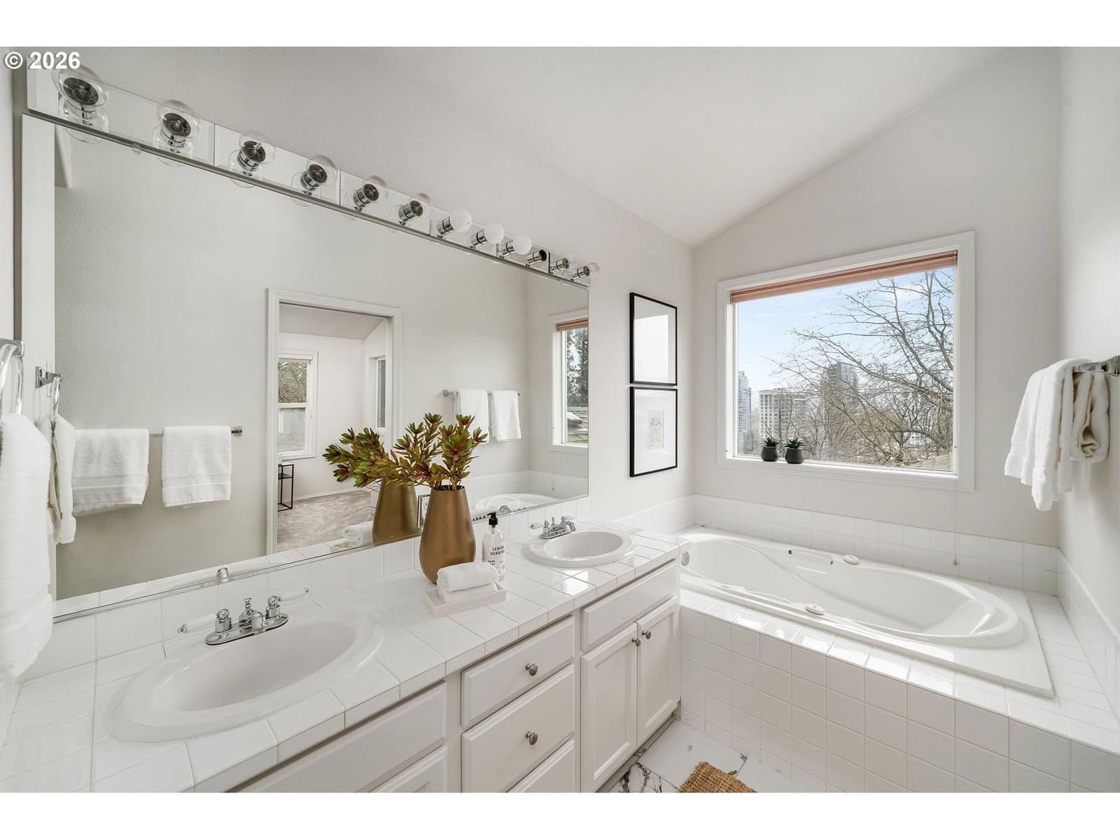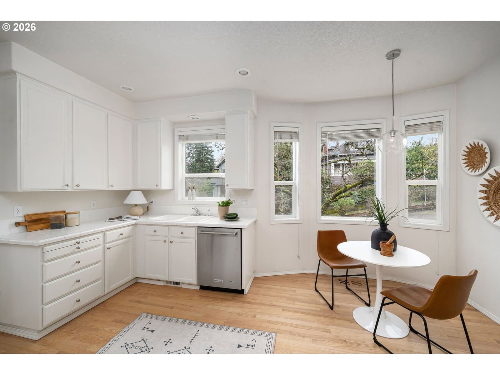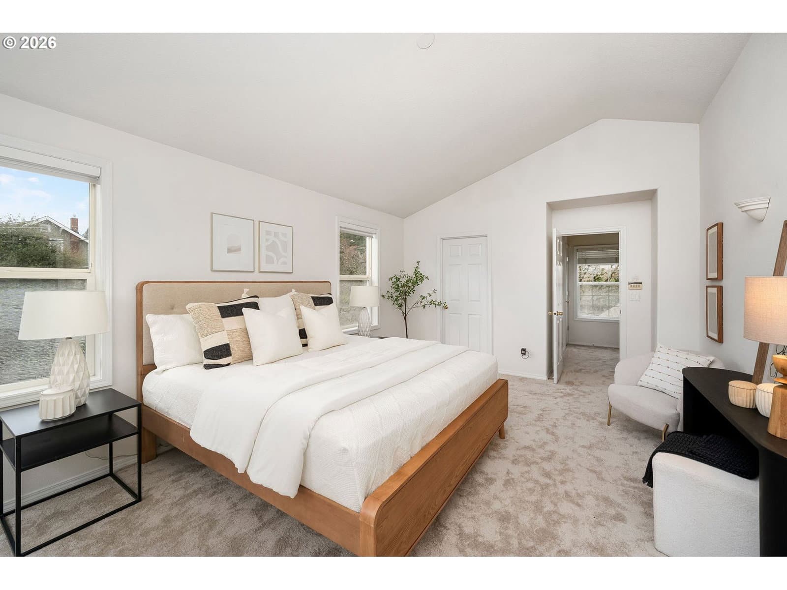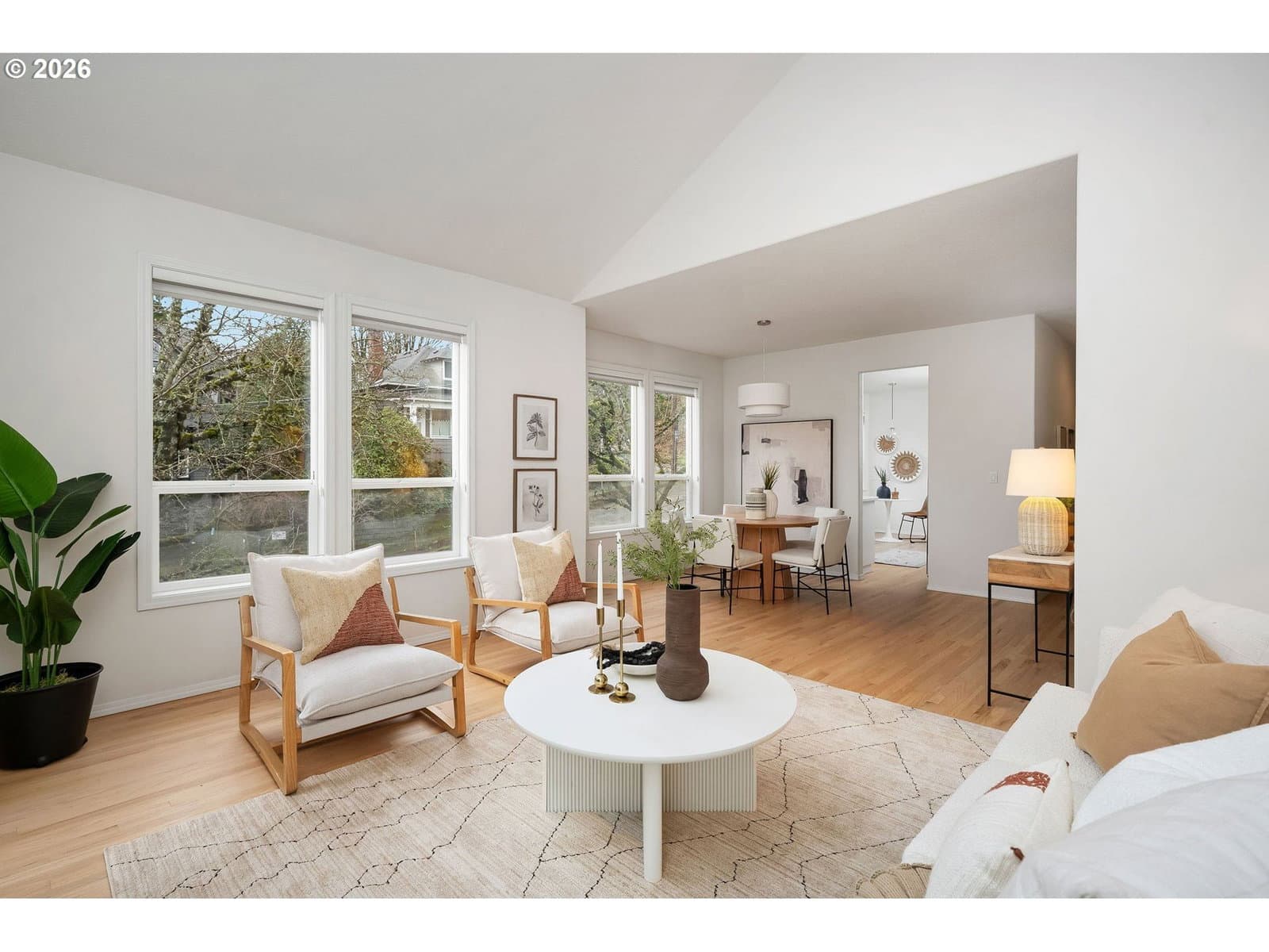 Sparkling clean townhome with gorgeous, freshly refinished real hardwood floors, new bathroom tile floors, and brand new carpeting. (booties provided!) Freshly painted kitchen cabinets, all appliances included. The kitchen has a beautiful nook for your breakfast and the dining room is just off the kitchen - both with new lighting. This bright, light and open townhome is so cheerful you just have to love it! Vast living room with big windows opens to a view deck and stairs to the garden. The upper floor is all primary suite, with terrific storage and large windows, a big bathroom and walk-in closet. Room for a desk or reading nook in the hallway. Downstairs, you'll enjoy outside access to the level brick patio and beautiful gardens. Two nice bedrooms, hall bath and laundry room complete the package. Under garage and in-garage storage make this house so livable! Lovingly purchased for its excellent proximity to Portland State Univ. and blocks to the tram, this centrally located home is perfect for OHSU or PSU workers, or anyone who loves being so close to downtown. NO HOA, just a maintenance agreement with the neighbor - you can rent or enjoy it all to yourself. Garden was professionally installed and the lush plants are a summer treat. What a terrific home! [Home Energy Score = 5. HES Report at https://rpt.greenbuildingregistry.com/hes/OR10238025]