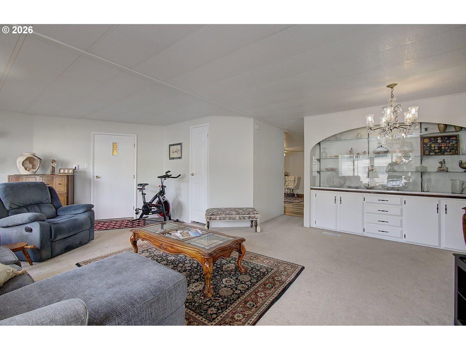 Welcome to easy, comfortable living in Kelso’s desirable 55+ Brook Hollow RV Park! This well-designed 3-bedroom, 2-bath, 1,433 sq. ft. double-wide manufactured home offers both space and charm. Enjoy a bright front living room filled with natural light from expansive windows, plus a cozy family room with a sliding door that opens to a covered deck—perfect for relaxing or entertaining year-round. The kitchen is thoughtfully equipped with bar seating, a pantry, built-in oven, cooktop, and microwave, making meal prep a breeze. A standout feature is the beautiful built-in, lighted curio/china hutch, ideal for showcasing your favorite pieces. The primary suite provides comfort and convenience with dual closets and a private bath featuring a step-in shower, while two additional bedrooms offer flexibility for guests or hobbies. A utility room just off the kitchen adds valuable extra storage and direct access to the carport. Sellers recently added a large storage shed and new appliances. This home combines function and style in a welcoming community setting. Sale is subject to park approval of the buyer.