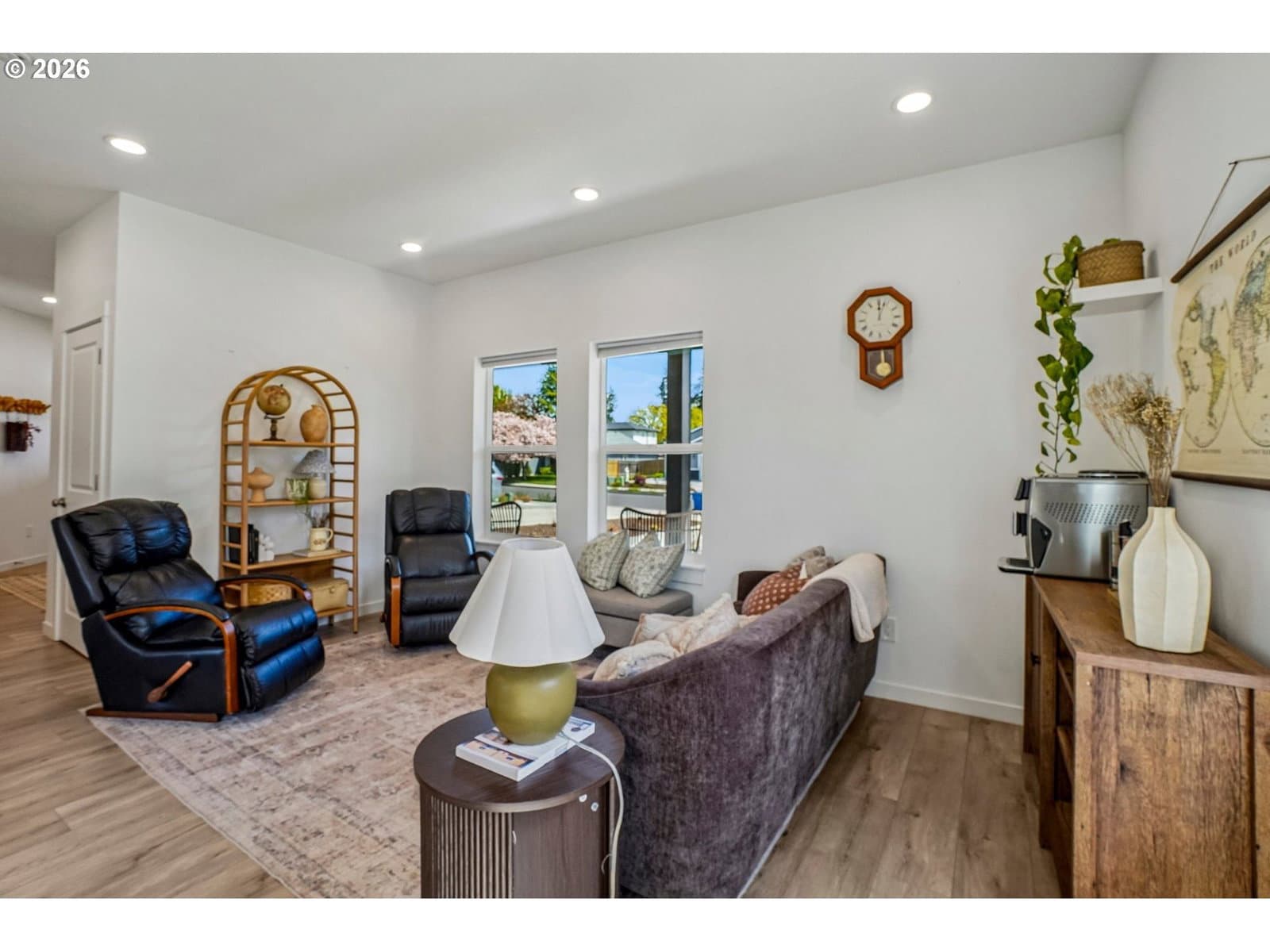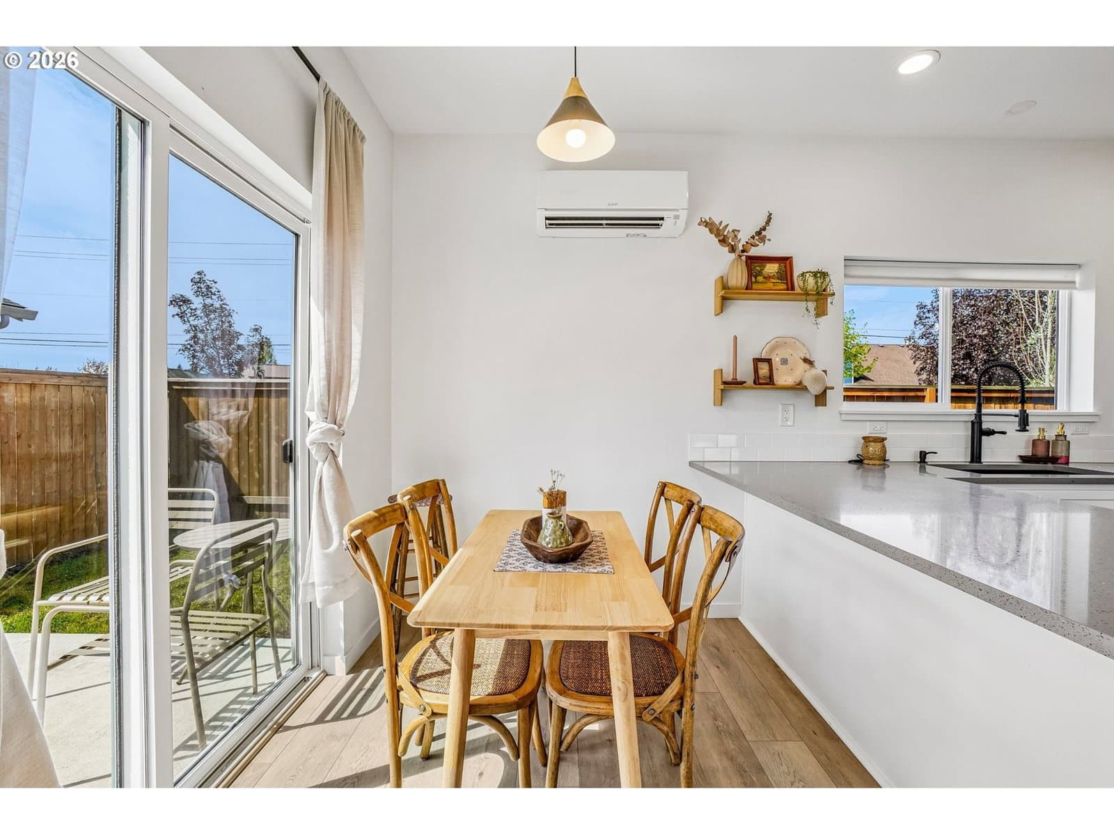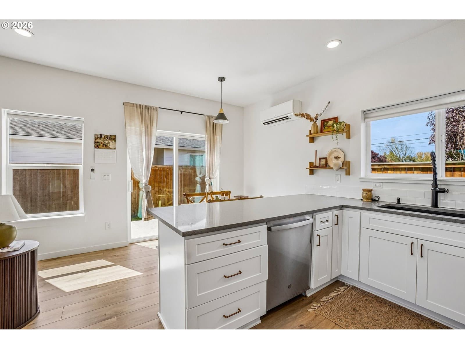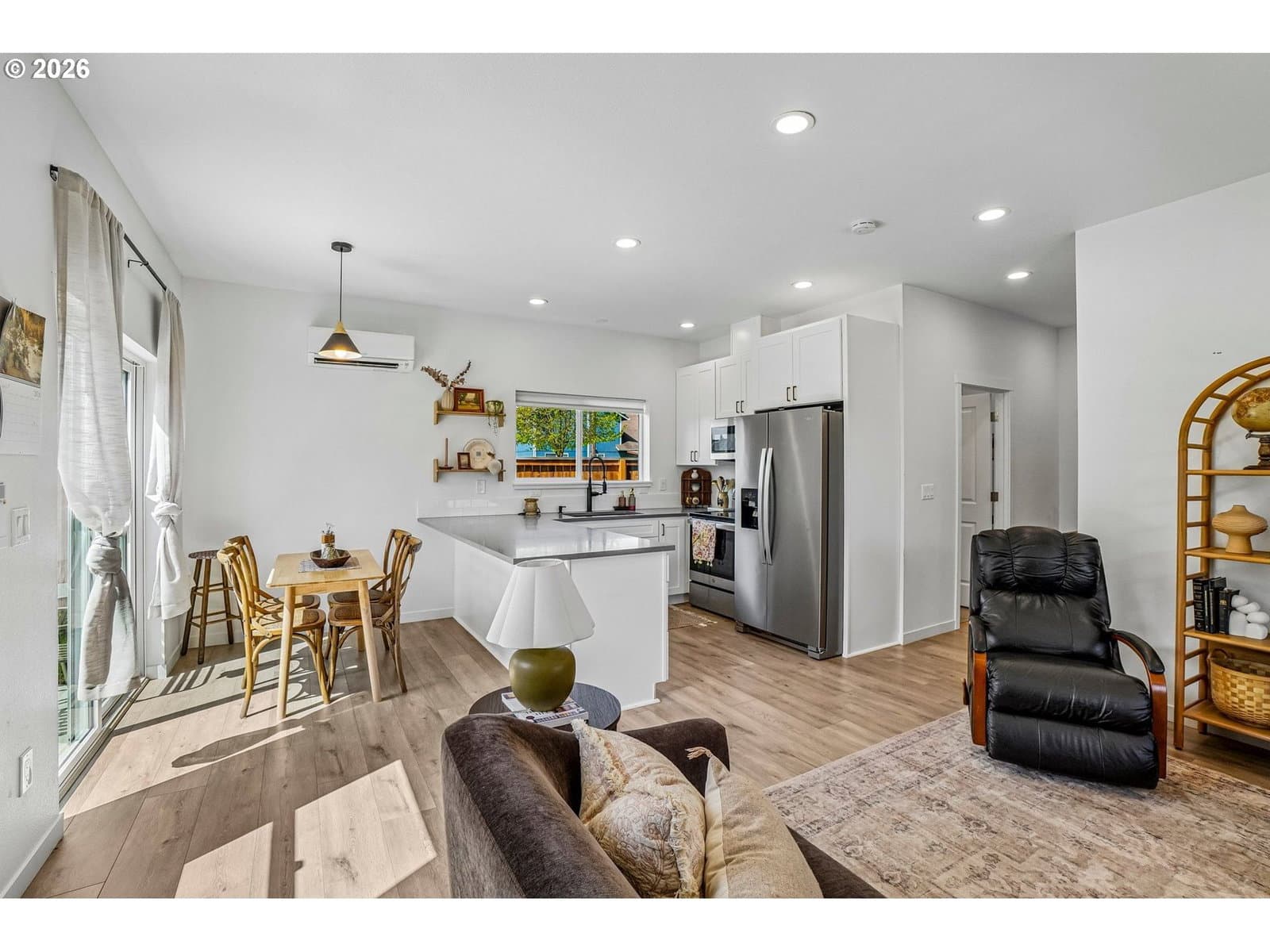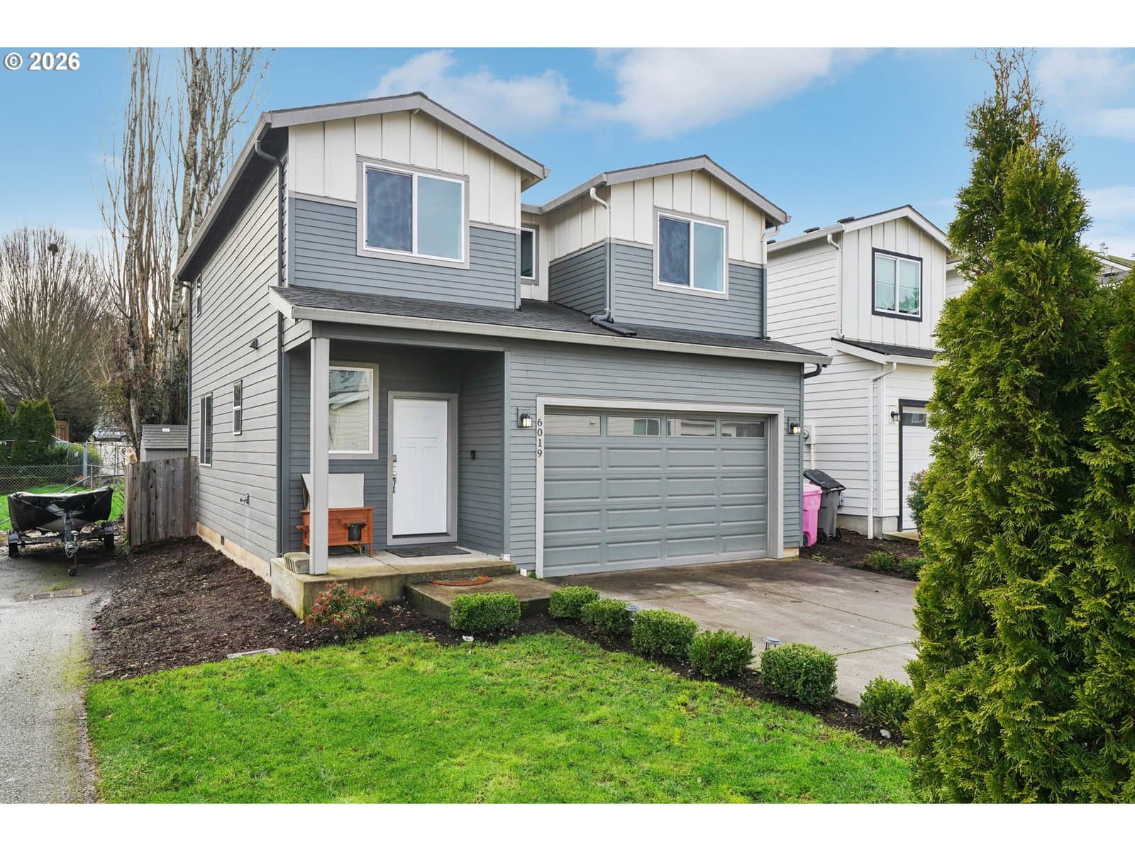Welcome to this almost-new home tucked away at the end of a quiet dead-end street in a convenient Battle Ground location! Built in 2024, this thoughtfully designed 2-story home offers nearly 1,400 sq ft with 3 bedrooms and 2.5 bathrooms. Step onto the inviting covered front porch and into a bright, modern interior. The kitchen has quartz countertops, stainless steel appliances, and an eat-at bar—perfect for everyday living and entertaining. The main level flows comfortably, while energy-efficient mini splits on each floor keep the home comfortable year-round. Upstairs, all three bedrooms are well laid out for privacy. The primary suite is positioned on one end of the home and features its own bathroom and a spacious walk-in closet. Two additional bedrooms are located on the opposite end along with a full bathroom. Enjoy the fully fenced backyard complete with a patio and a unique bonus—your very own barrel sauna, creating a perfect space to relax and unwind. With modern finishes, energy efficiency, and a peaceful yet convenient setting, this nearly new home is move-in ready and checks all the boxes!
