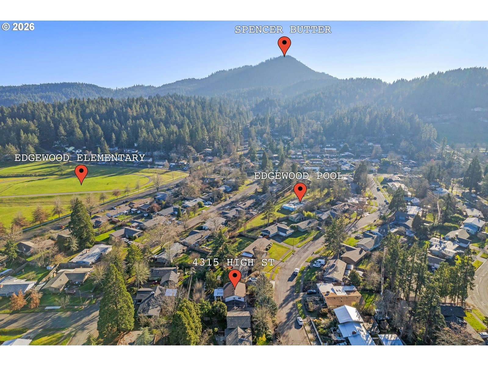 Do not miss this Mid-century charm meets modern comfort set on a sweeping, tree-lined street with views of iconic Spencer’s Butte. The remodeled kitchen is beautiful and functional, featuring granite countertops, alder cabinetry, stainless steel appliances, a generous island with a secondary prep sink, and a window perfectly placed over the main sink. The thoughtful design boasts openness...a lovely integration of areas, yet a comfortable separation blended warmly between the living, dining, and family rooms—ideal for everyday living and entertaining. Main floor offers extra built in storage under the stairs, and a warm gas fireplace to cozy up to in the winter months. A light-filled sunroom adds wonderful flexibility and could serve as a playroom, music/art studio, office, or additional family space. New carpet on the stairs leads you up to the bedrooms boasting newly refinished oak floors that shine alongside clear CVG closet doors in each room. Efficient ductless heat pumps offer zoned heat and AC in bedroom spaces. The primary suite opens to a large private balcony—perfect for morning coffee in the sun. Additional highlights include large windows offering plenty of natural light, a separate laundry room, a spacious two-car garage with extra storage, and outdoor spaces designed for enjoyment: raised garden beds, mature landscaping, and an adorable playhouse ready for summer fun. Don't miss the Edgewood Pool tucked away just a few doors down! This lovely updated home is very walkable to hiking trails, coffee shops, groceries, excellent schools, and so much more.
