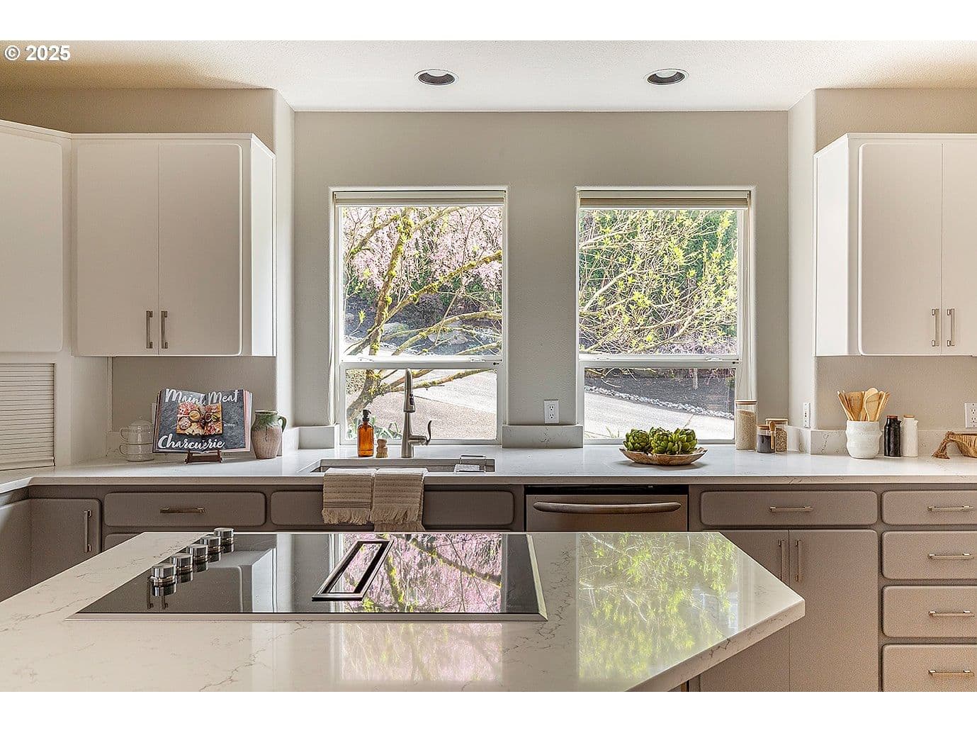 OPEN HOUSE SUNDAY 2/15 FROM 12-2! HUGE PRICE DROP! One Owner, Premium Upgrades, Home Warranty Included and all appliances to stay with home! This home is situated in a highly sought-after neighborhood and perfectly balances modern upgrades with timeless design. Nestled in the heart of Happy Valley, this stunning one-owner NW Contemporary home offers an exceptional blend of style, comfort, and thoughtful updates. Boasting a newer presidential roof and newer Hardie plank siding, this home is built for longevity and low maintenance. From the moment you step inside, you're welcomed by a grand marble entry, soaring ceilings, and a seamless flow of hardwood floors and brand-new plush carpeting. The recently renovated kitchen features gorgeous quartz countertops, new cabinetry, modern appliances, rich hardwood flooring, and a sliding door to the almost full wrap around back deck that creates an ideal space for cooking and gathering. On the main floor, you have an open floorpan from the two living spaces and dining area that are centered around beautiful landscapes and picture windows along side a sliding door to the deck, perfect for peaceful nights or lively hosting. The first floor bedroom, currently used as a den, could be used for main floor living or office/flex space boasts beautiful French doors, custom built-ins, new carpet, and elegant crown molding. The three-car garage alongside additional exterior parking provides ample room for storage, workspace, or perfect if you are a car lover! The secondary floor has three more bedrooms including a massive primary suite with jetted tub and walk in closet. The laundry room is situated perfectly in between all three room. Last but not least, don't miss the huge bonus space on the lower level! Complete with carpet and exterior access, this could be a great opportunity for an ADU, multigenerational living, or just a fun room for hobbies!