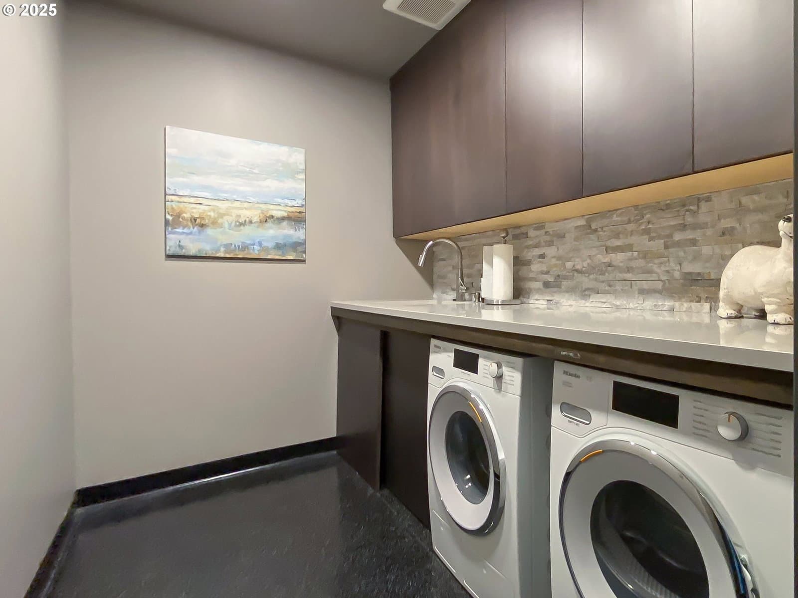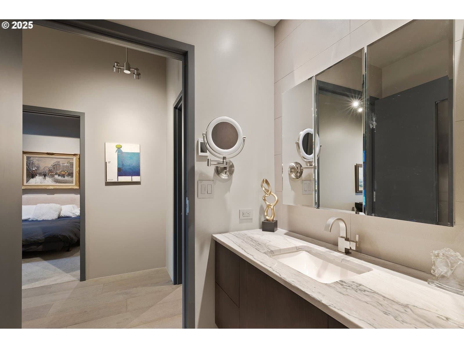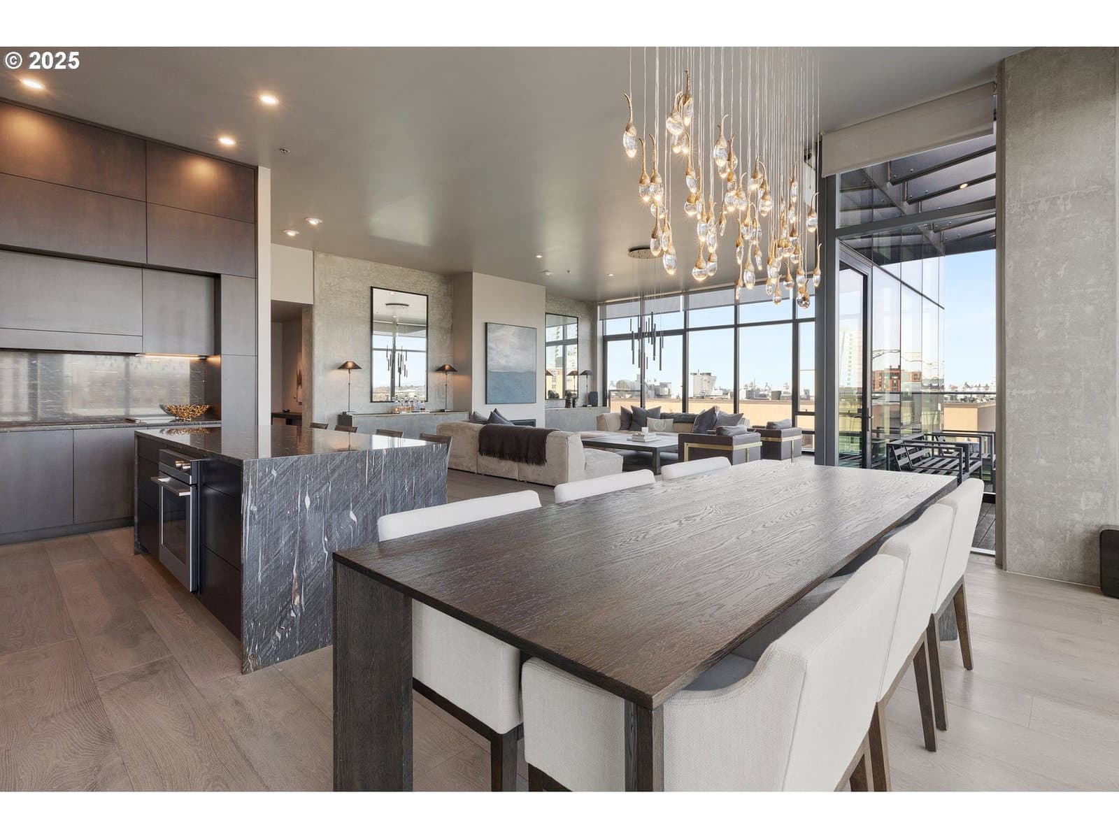 Experience penthouse living at its finest in this sophisticated residence atop The Edge in the heart of Portland’s vibrant Pearl District. This rare 2-bedroom penthouse, complete with a bonus room and spacious den, offers 2 baths and 2,353 sq. ft. of elegantly curated living space. Floor-to-ceiling windows illuminate the home with natural light while framing sweeping city views.The open-concept living area features wide engineered oak floors paired with polished cement for a sleek, modern aesthetic. A chef’s dream, the kitchen showcases Parr engineered cabinetry, striking quartzite countertops, and thoughtful under-cabinet and island lighting.The expansive primary suite is a true retreat, featuring a custom Elva Container Store closet with hidden safe and an adjoining den ideal for a private office or reading lounge. The spa-inspired primary bath offers heated floors, quartzite countertops, a walk-in shower, and a KOHLER heated-seat bidet. The second bedroom includes a built-in desk, while the second bath echoes the home’s elevated finishes with heated floors and quartzite counters.A flexible bonus room with a Murphy bed and a separate laundry room with additional storage add invaluable functionality. Two deeded parking spaces and a private storage unit complete this exceptional offering.Set within the Pearl District—one of Portland’s most coveted urban neighborhoods known for its art galleries, award-winning restaurants, boutique shops, and pedestrian-friendly parks—this penthouse delivers the perfect blend of luxury, style, and convenience. With its breathtaking views, refined design, and unmatched location, this residence embodies elevated city living.