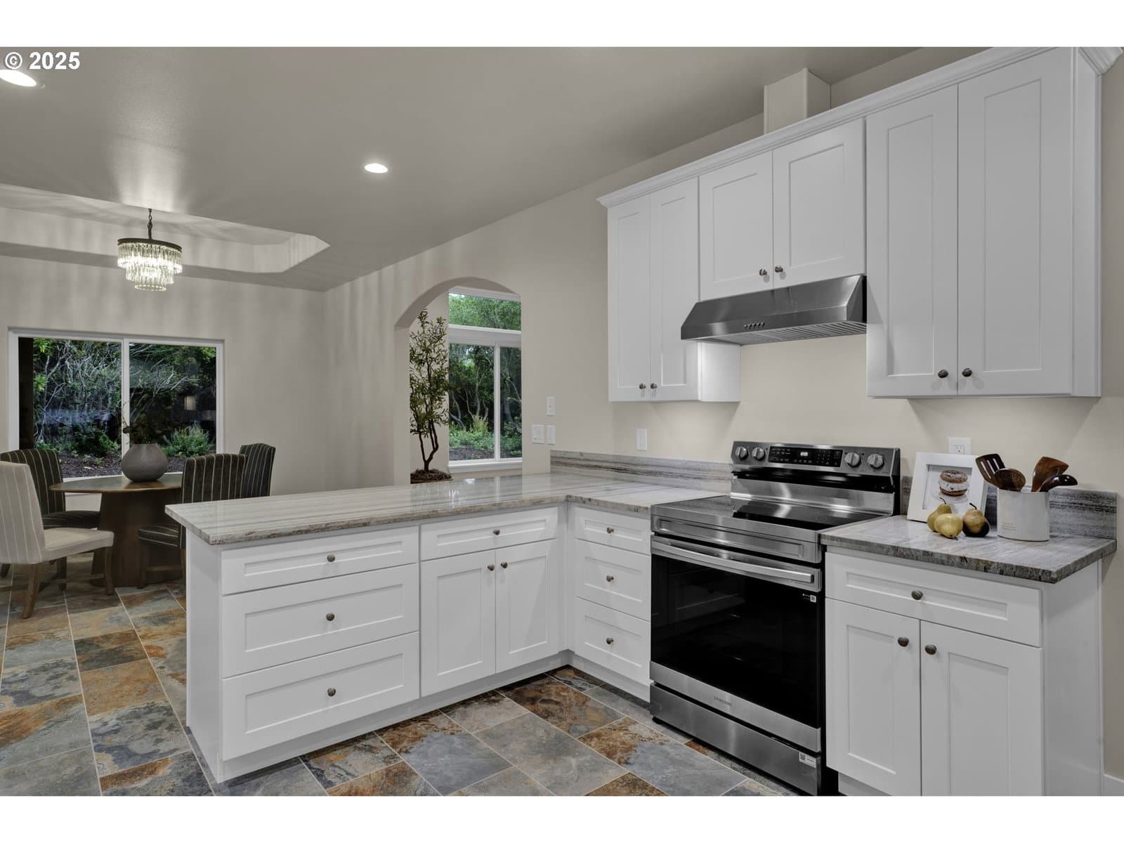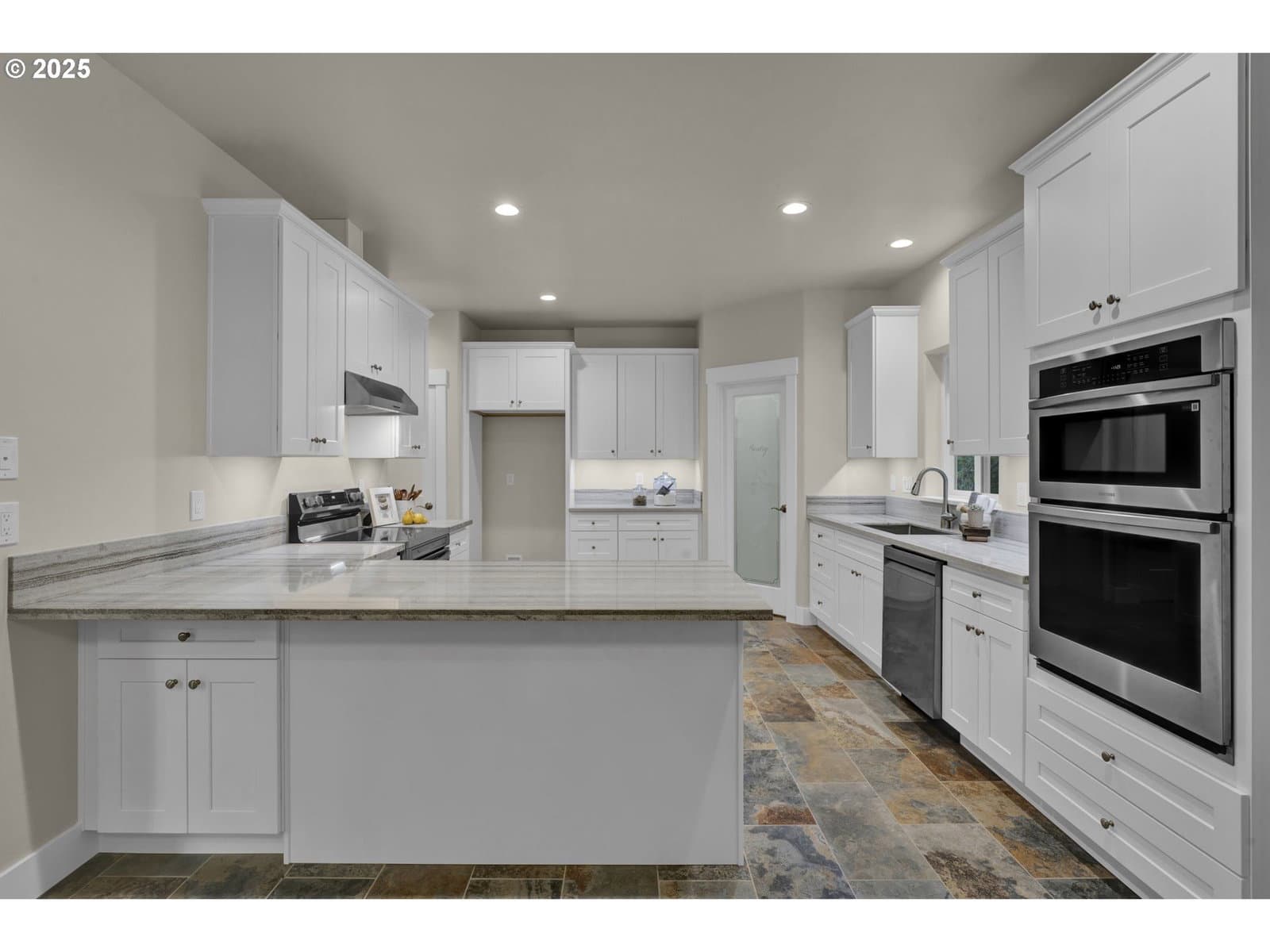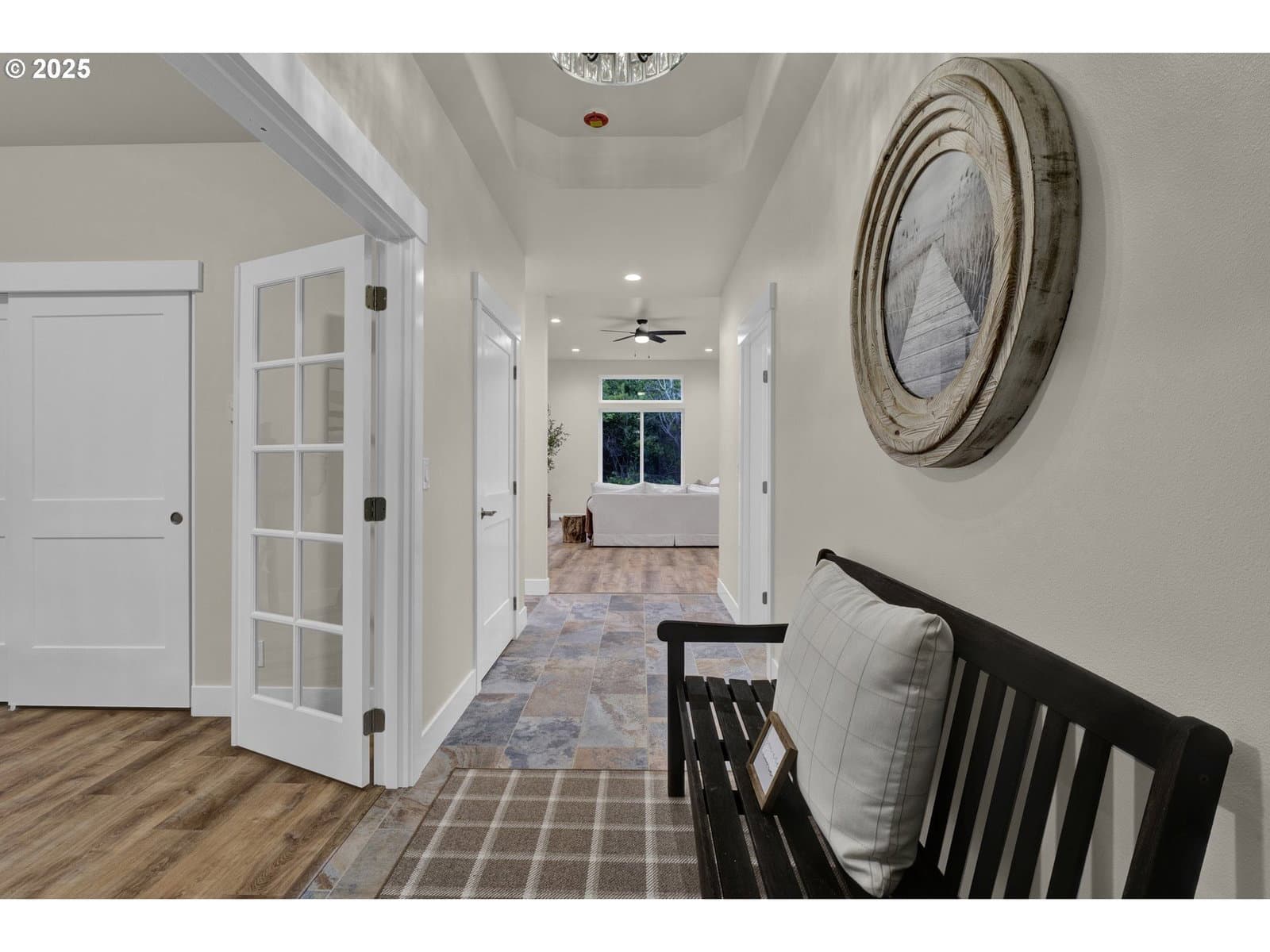 New construction in Shelter Cove. 2,120 sf, 3-Bedrooms, 2-Bathrooms with an oversized 3-car garage, and the addition of a RV/boat parking pad on 0.43 acre. The builder carefully designed the home with an element of separation and elegance. No open living concept. The foyer is open and grand setting the stage of the efficient layout. Finishes of include coffered ceilings, LVP and tiled flooring and glass like painted trims. 11ft ceilings accented with coffered ceilings in the dining and foyer. The versatility of the 3rd bed/office/library is accessible by bay doors for added privacy with separation from main living area. The oversized open kitchen will please the most particular chef with an open spacious walking area, 9’ ceilings, ample countertop area, painted cabinets with soft close drawers and a large walk-in kitchen pantry with a 2nd separated pantry included for appliance storage. En-suite offers dual sinks, a very large linen closet with a tiled zero step walk-in shower for ease. The oversized garage is finished with painted and textured sheetrock. Entertain or relax on the oversized wrapped covered concrete patio finished with stained wrapped beams and tongue and groove sealed blue pine ceilings. Enjoy the Oregon Coast sandy beach of the Siuslaw River/North Jetty by a maintained deeded access offered to Shelter Cove residents, conveniently located across the street! Shelter Cove is a gated residential community in Florence, Oregon known for its well maintained homes, mature landscaping and peaceful coastal setting.