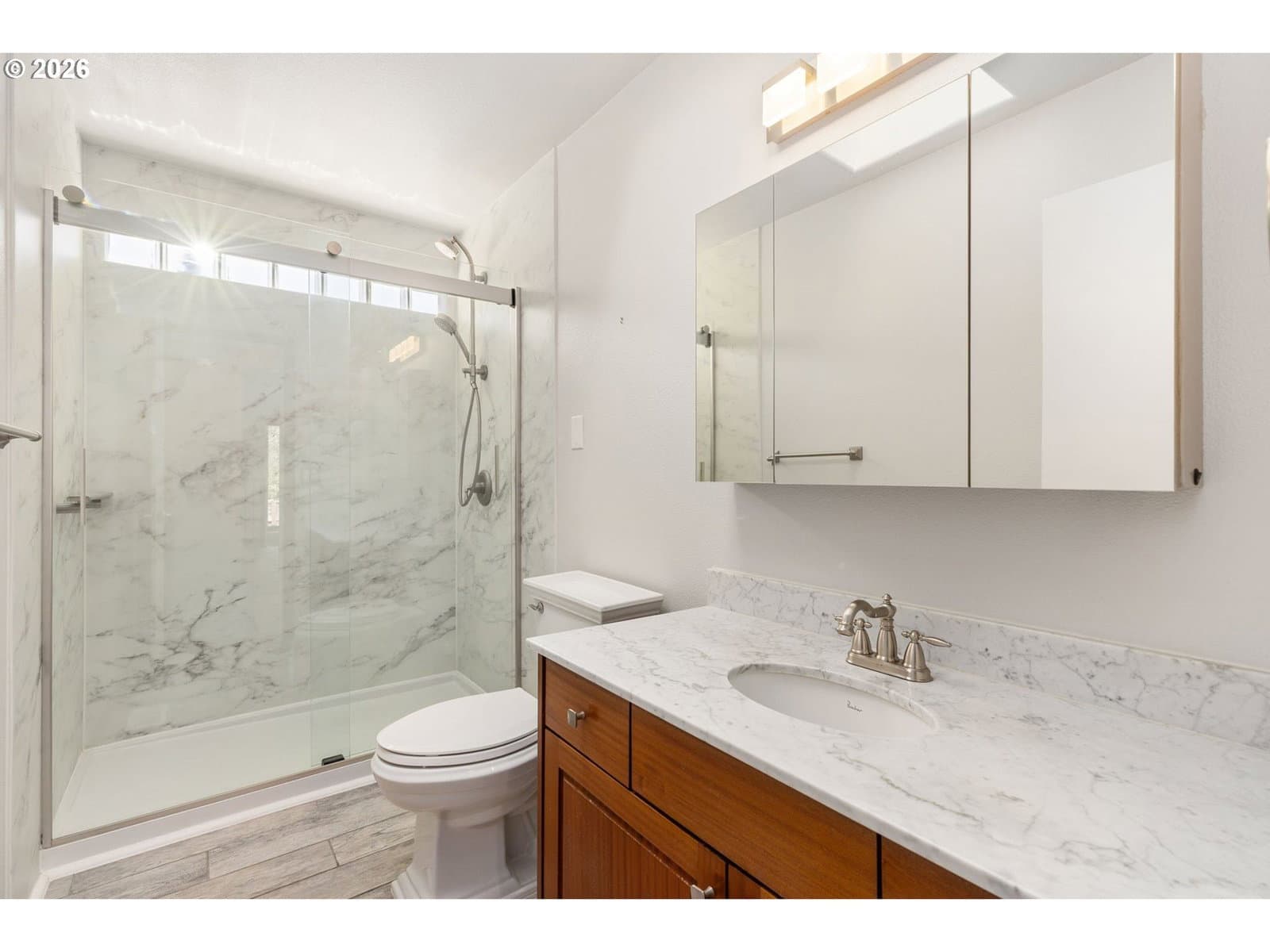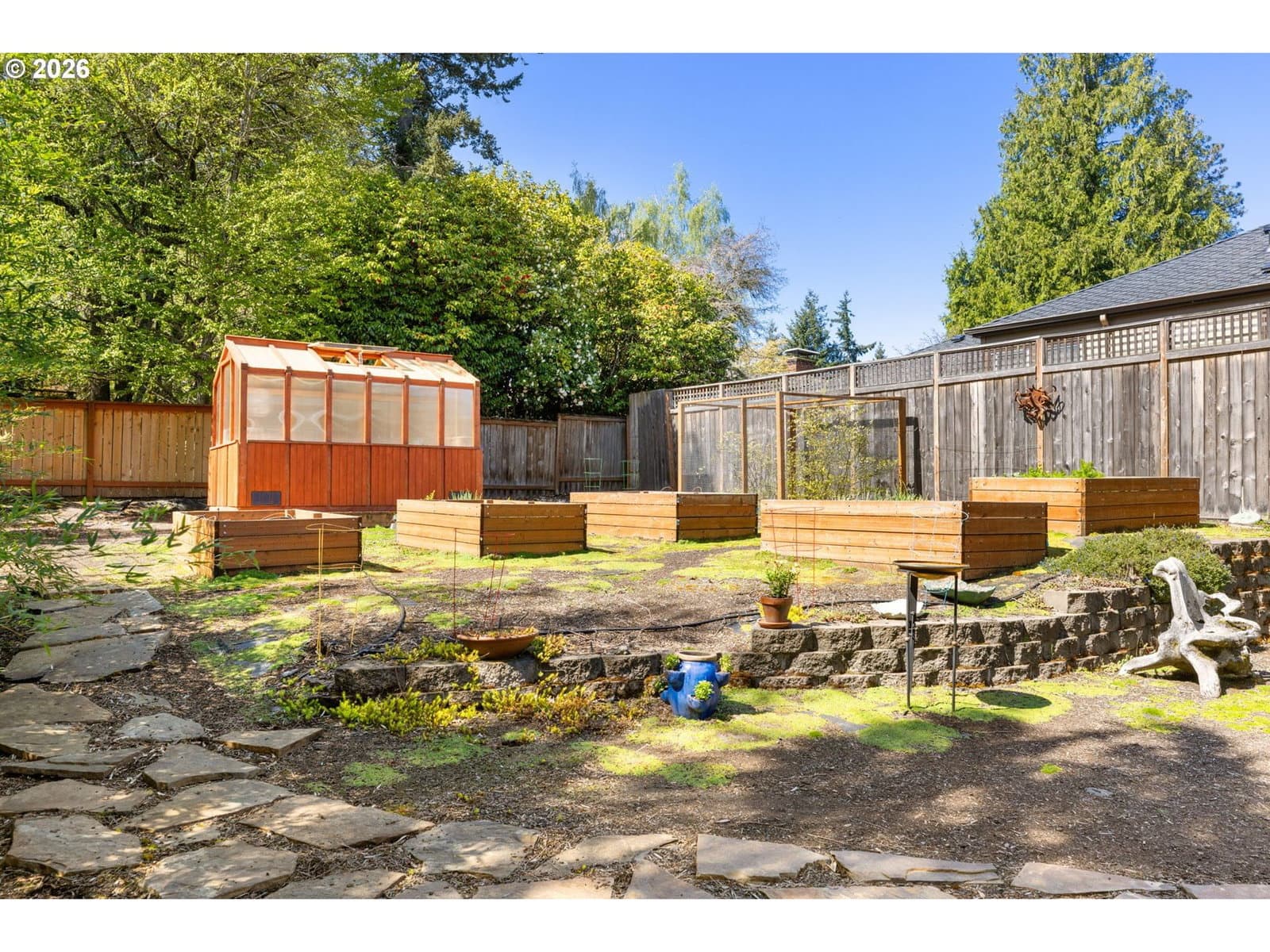 Thoughtfully upgraded inside and out, this exceptional Hayhurst/Vermont Hills home delivers quality at every turn. Newer fiber cement siding, roof, and freshly painted interior set the stage before you even step inside.The kitchen impresses with granite slab counters, custom cabinetry, induction cooktop, double convection ovens, built-in microwave, and counter-depth refrigerator. Ceramic tile throughout main living areas, high-end carpet in both bedrooms, gas heatilator fireplace, walk-in shower with Kohler Memoirs fixtures, and bottom-up/top-down blinds throughout.Infrastructure upgrades include whole-home surge protector, generator wiring, 2021 gas water heater, newer HVAC, most windows replaced, and leaf guard gutters. Low utility costs.The triple-car garage with double bays features a workspace with cabinets and sink. Lower level utility room with washer/dryer included, plus upstairs hookups. Additional bathroom potential in lower level.Outside: composite deck, working greenhouse with backflow, fire pit, raised garden beds, berries, dahlias, and bamboo.Steps from 90-acre Gabriel Park — baseball, tennis, skatepark, dog off-leash area, and the SW Community Center with pool, climbing wall, fitness room, and gym. Hayhurst Elementary ranks in Oregon's top 10% for math and reading.A rare, move-in-ready package in one of SW Portland's most beloved neighborhoods. And an energy score of 9! [Home Energy Score = 9. HES Report at https://rpt.greenbuildingregistry.com/hes/OR10246766]