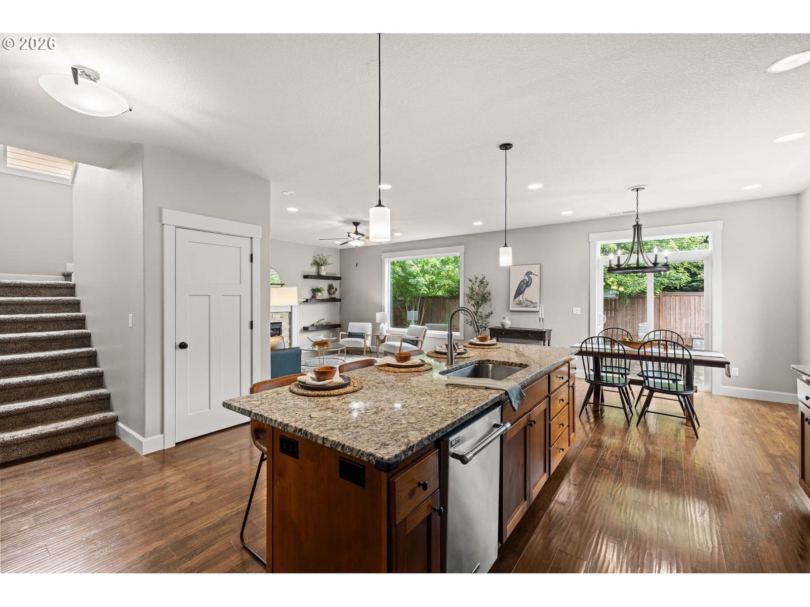 Turnkey, energy efficient, and no HOA, this beautiful 4 bedroom, 2.5 bath home offers an open floor plan with a den/office/5th bedroom on the main floor. In the kitchen you’ll find a gas range, granite countertops, a brand new refrigerator, and a large pantry. From the living room (complete with gas fireplace and tall ceilings), a large picture window looks out to the private, fully fenced, and low maintenance backyard complete with a large patio, fire pit, and irrigation system. Upstairs, the spacious primary suite features a walk in closet, dual sinks, and a walk in shower with laundry also on the second floor. Fresh interior paint, classic wainscoting, tankless water heater, oversized two car garage, and accessory parking (work vehicle? boat? etc?) make this home versatile and move in ready. Conveniently located just minutes from Wesley Lynn Park, Clackamas Community College, downtown Oregon City, and so many amenities, enjoy easy access to everyday conveniences while living in a quiet neighborhood.