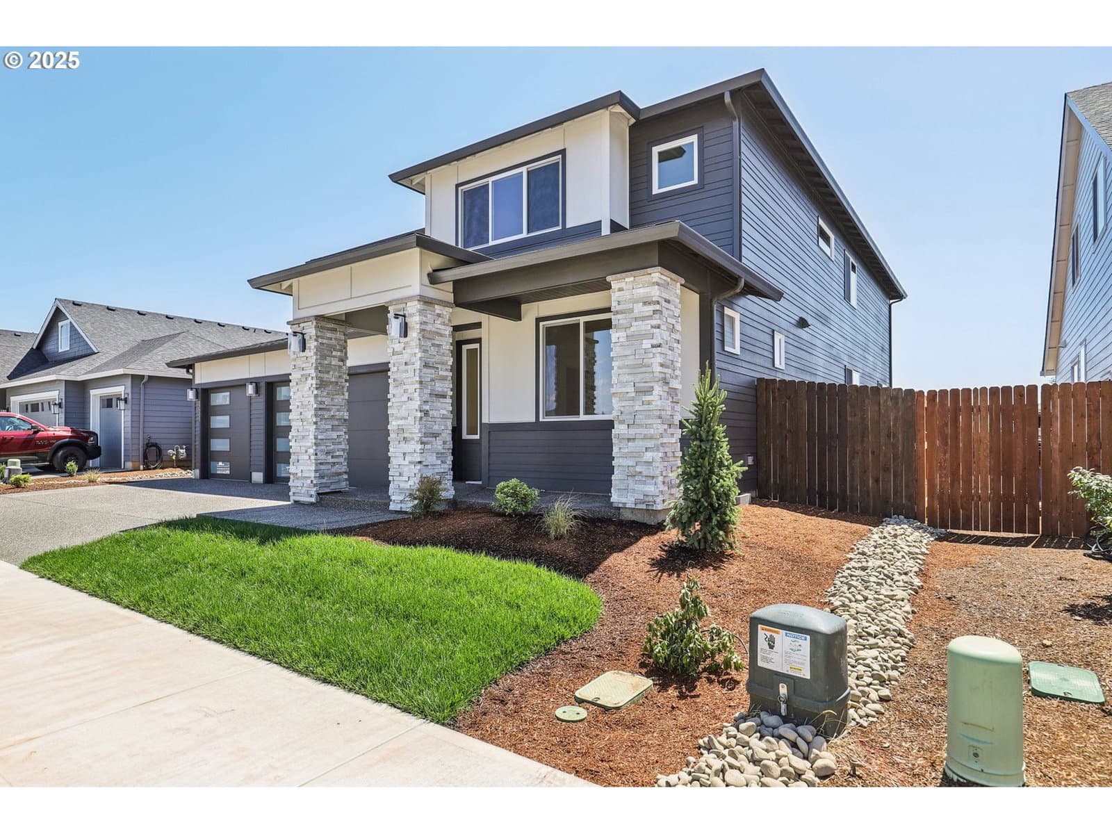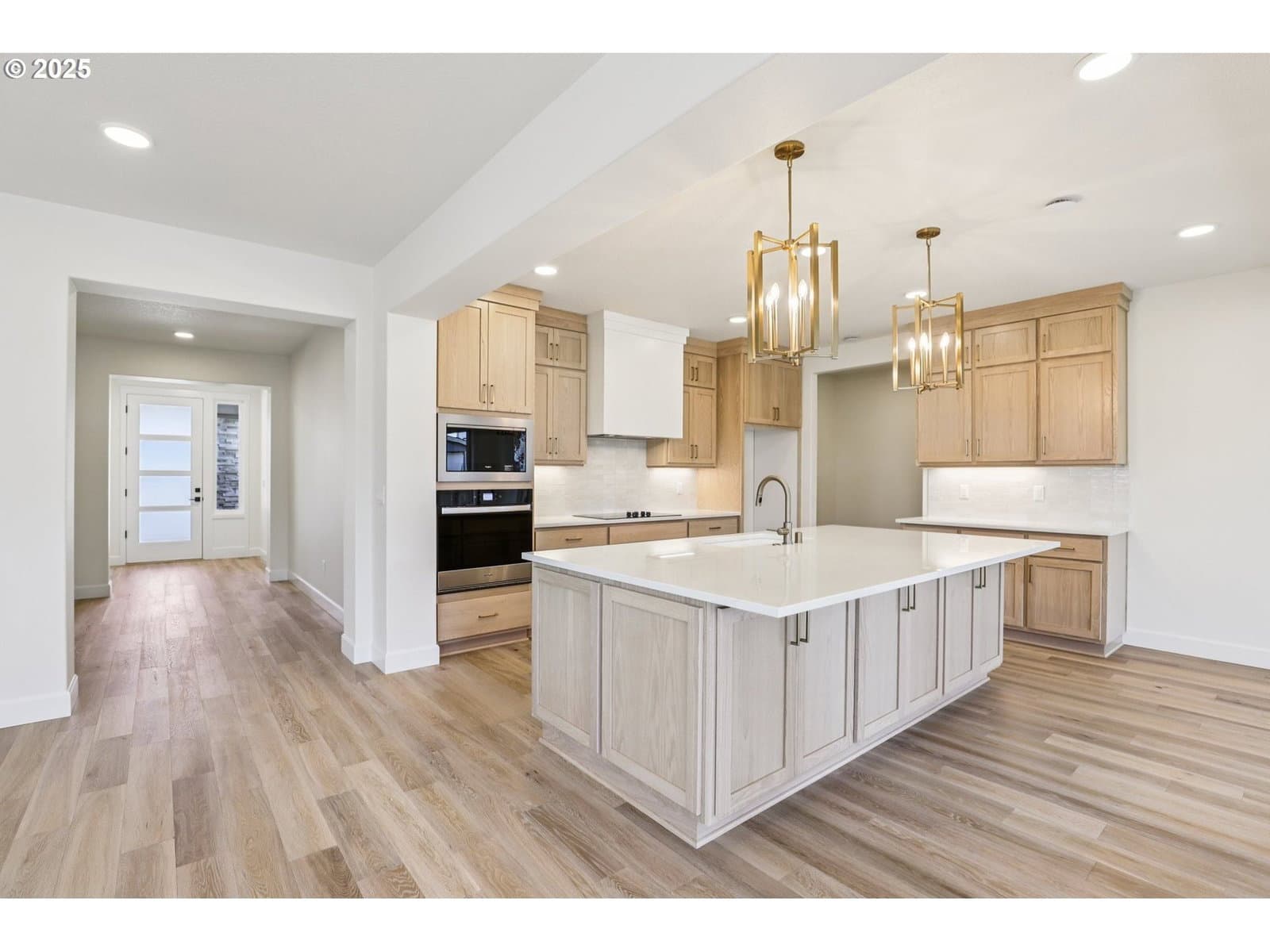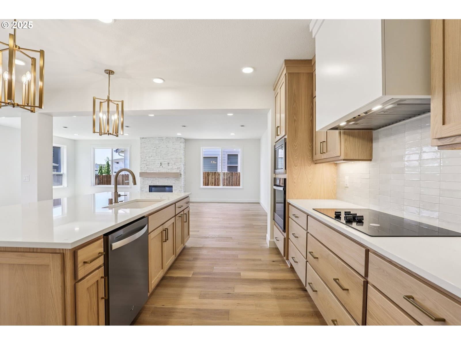 Spacious + Stunning- with a 3-Car & a Tandem Garage! Step into this beautifully designed open-concept home featuring a welcoming den with double doors, a sprawling great room with a gorgeous fireplace, the chef's kitchen is a dream, complete with a built-in wall oven & cooktop, drawers galore for every dish, pot and pan you own. The massive island packed with storage and plenty of room for bar stools, the walk-in pantry is big enough to fit a twin bed—seriously! Host dinner parties for 10+ in the spacious dining area. Enjoy oak hardwoods throughout, sleek quartz countertops, champagne fixtures and a full bathroom on the main floor. The luxurious primary suite offers a spa-like retreat with a dual-headed tiled shower, separate sinks a sit-down vanity, and a fully shelved walk-in closet. Out back, you’ll love the oversized double covered patios with two sliding glass doors—perfect for entertaining, relaxing, or planting your dream garden. This home truly has it all- NextGen Energy Star Certified by a third party, 2 Year Builder Workmanship Warranty & a 2-10 Home Buyer Warranty, come see it for yourself. *Use of preferred lenders can trigger maximum incentives*