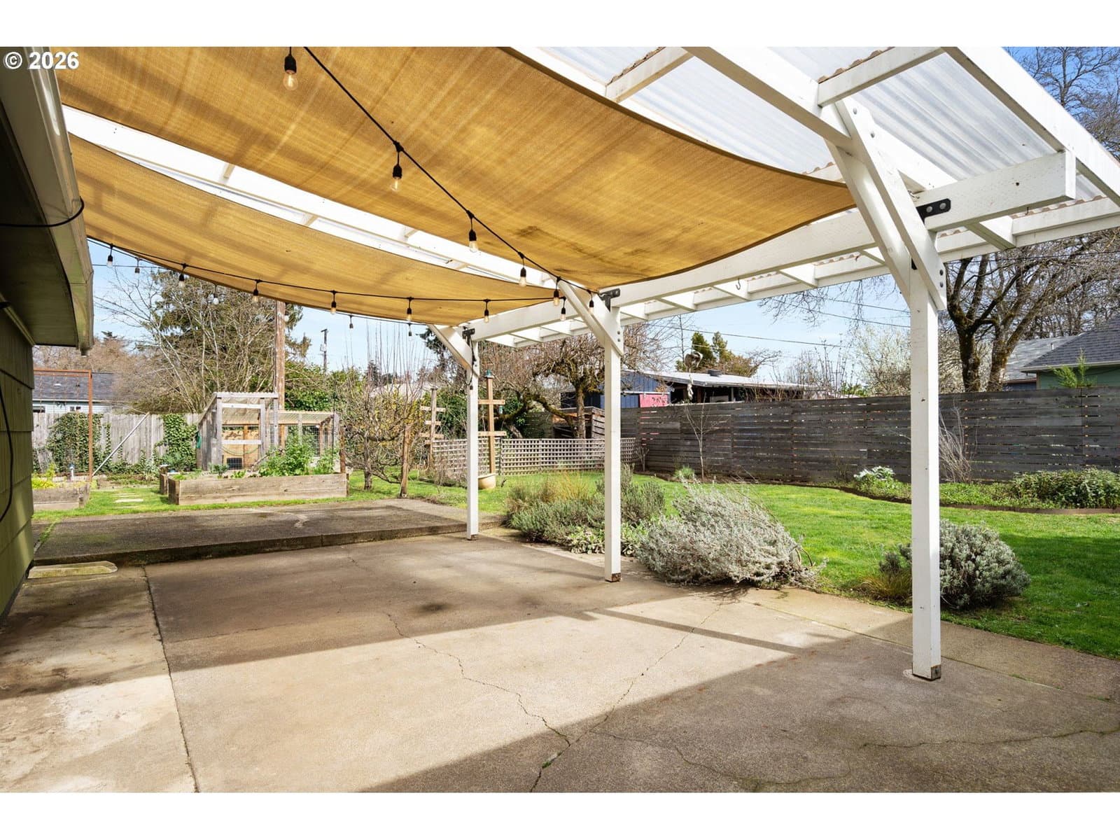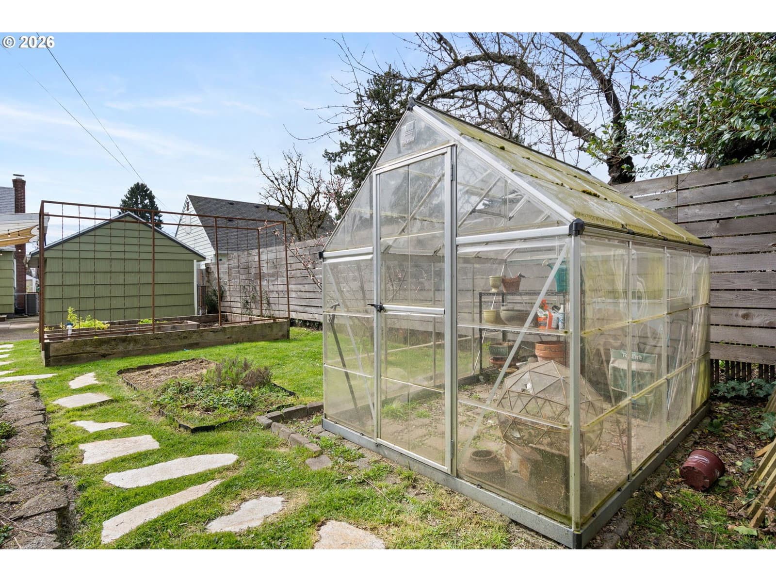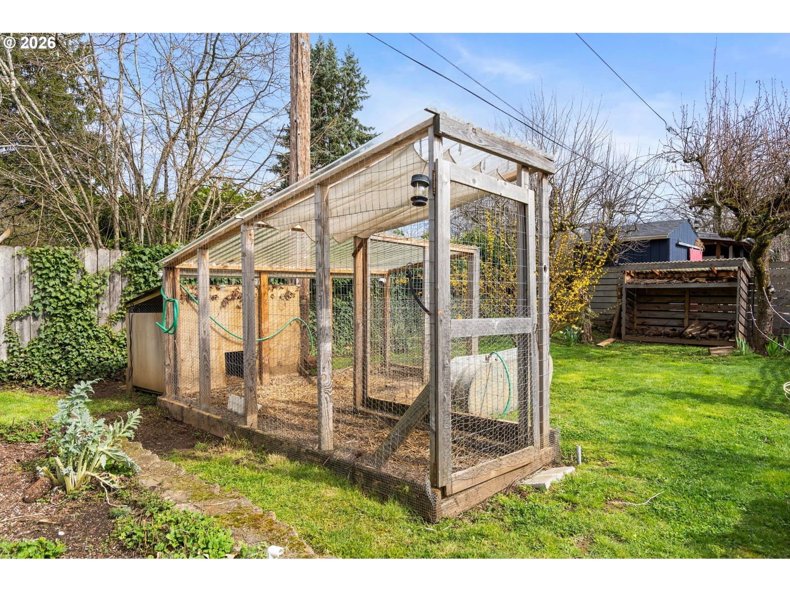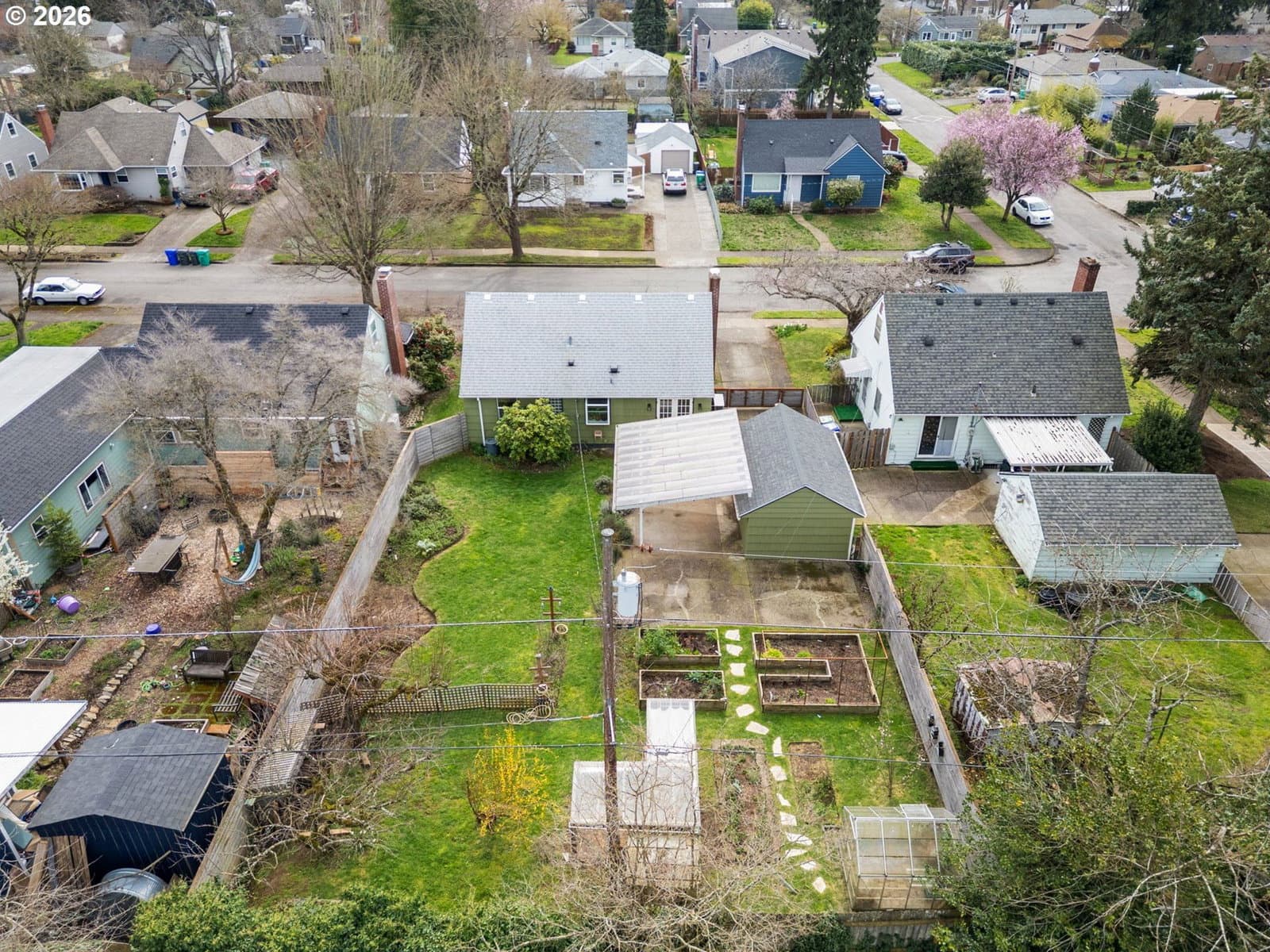 Beautiful, light-filled Montavilla home on a peaceful street with an expansive garden paradise. Stunning updated kitchen with custom cabinets & pull-outs, garden window, & unique cabinet knobs handcrafted out of wood from the family’s olive grove. Original wood floors on main, plus updated cork flooring upstairs. Updated bathrooms. The oversized yard is a bona fide urban farm - a chicken coop, greenhouse, raised beds, wood storage shed, plus a thoughtful irrigation and drip system. Lovely espalier apple trees, plus fig, quince, plum, Arbequina olive, pear, apricot, & cherry trees. Blueberry & raspberry bushes will keep you swimming in berries all summer long. Established asparagus. Vibrant, perennial flowers attract an abundance of birds & pollinators. Fully organic & pesticide-free. Detached garage with sub panel. Updated, double-paned windows. Custom fence gate & range hood welded by the seller. Tons of storage throughout. New heat pump & exchanger in 2025. Close to Mt Tabor & Berrydale Park, Montavilla Farmer’s Market, restaurants, Max station, & more. [Home Energy Score = 5. HES Report at https://rpt.greenbuildingregistry.com/hes/OR10028172]