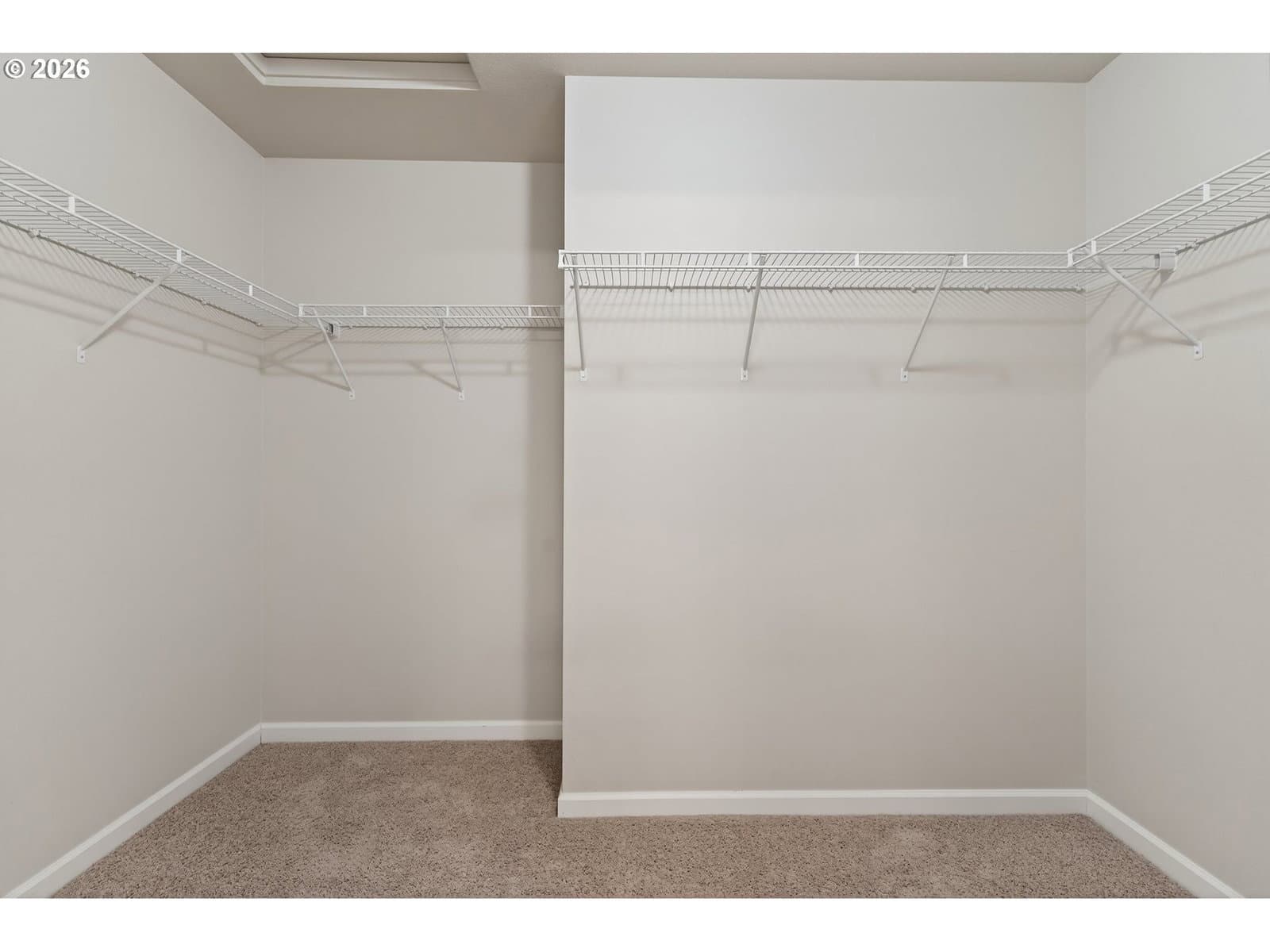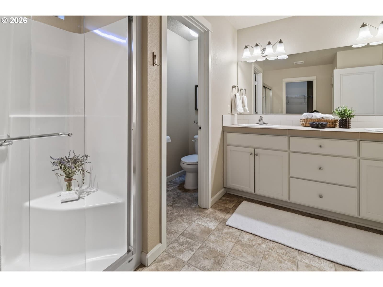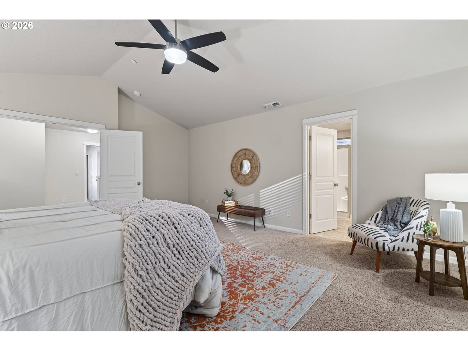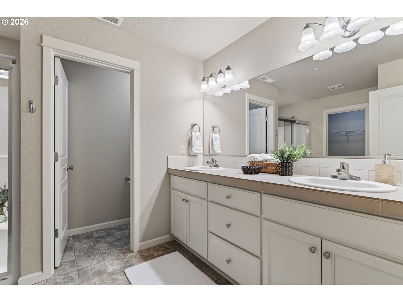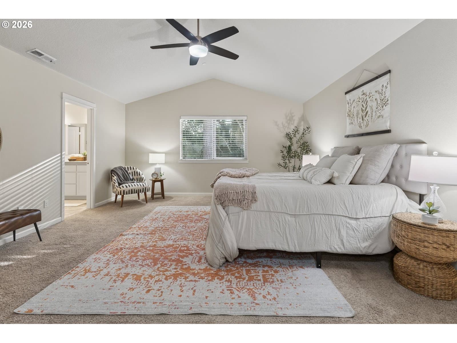Welcome to this beautiful move-in ready 3 bedroom, 2 1/2 bathroom home. This well maintained home features an open great room floorplan that includes 9 ft ceilings, luxury vinyl plank flooring and a gas fireplace. The Kitchen features stainless steel appliances, pantry, refrigerator and a large island with granite countertop and eating bar. A dining area leads to a private backyard with a large concrete patio overlooking trees and open space behind. Upstairs you will find an oversize primary suite that has vaulted ceilings with fan. The Primary bath has double sinks and shower with new sliding doors and a large walk-in closet. There are two additional spacious bedrooms and an upstairs laundry room.The home has a 2 car garage and A/C for year round comfort The backyard is fenced and has a large concrete porch overlooking open space/field. No homes directly behind this home. All appliances stay with home including refrigerator and washer/dryer. This desirable neighborhood is centrally located and near shopping, entertainment and freeways. The neighborhood has a playground at the end of the block. HOA covers front yard landscaping and common areas.