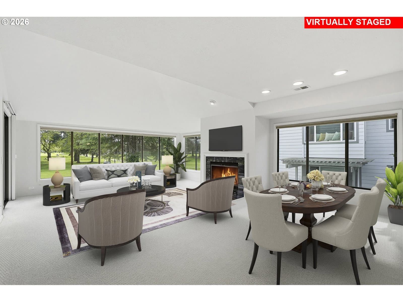 Are you looking for an amazing golf course view and a carefree lifestyle? Look no further, you have found it. Immaculate upper level 2 bed, 2 bath condo. Newer carpet and paint as well as refreshed lighting. The spacious, vaulted is the core of the home great room with a wood burning fireplace and wall of windows to capitalize on the fantastic view. The quaint kitchen maximizes it's space with ample cabinetry and counter space along with stainless steel appliances. The primary suite also has a great view and double closets. The 2nd bedroom has a walk-in closet. There is an in unit laundry closet with washer and dryer. Outside is a roomy covered deck that is a great spot for entrtaining or a quiet spot to enjoy your morning coffe. The condo comes with a 2 car detached garage and community pool. The Charbonneau community offers resort style living with an abundance of activities, 3 nine hole golf courses, tennis/pickle ball center, parks, walking paths and so much more.