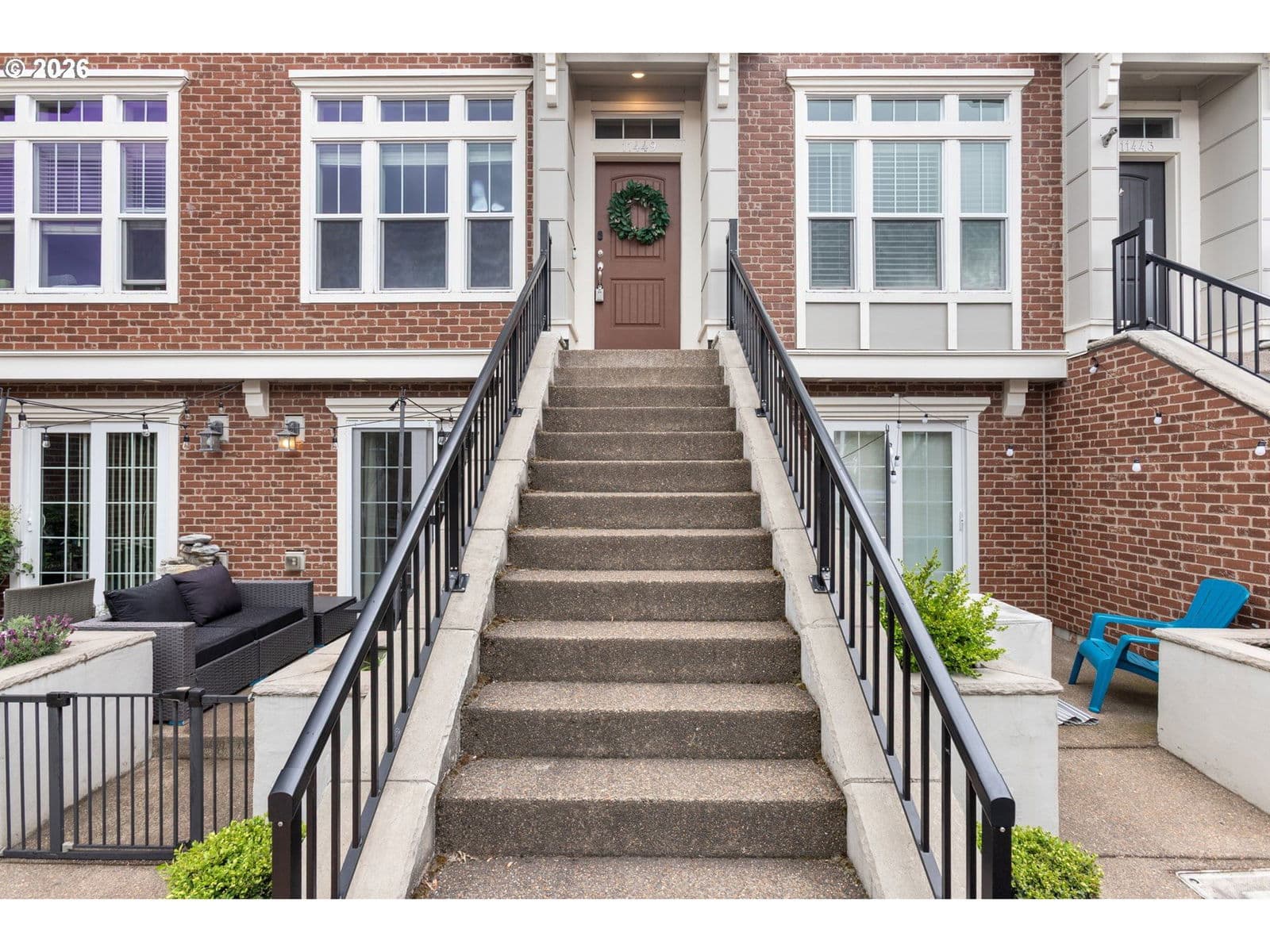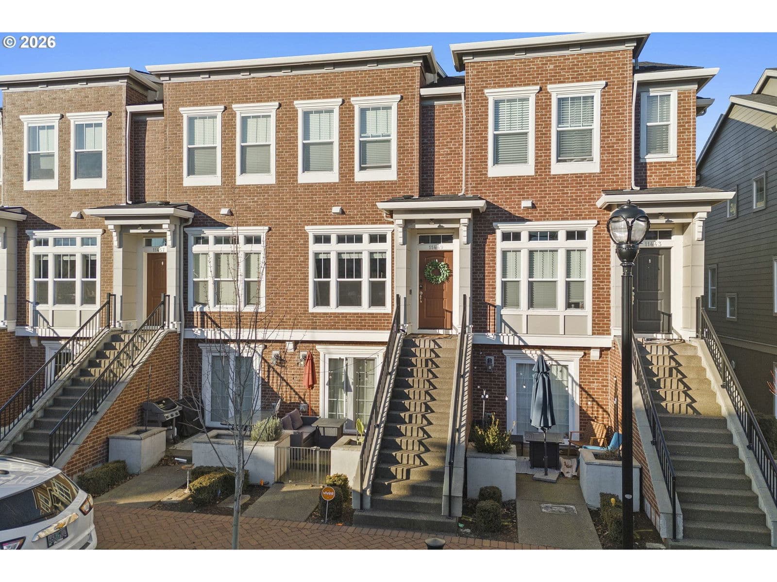 Don’t miss this striking 1,391 square foot brownstone in the heart of Villebois, offering timeless style and standout curb appeal. The classic brick exterior, soaring windows, and stunning Mt. Hood views from Mont Blanc St. make a memorable first impression. Inside, the layout is both flexible and functional with 3 bedrooms and 3 full bathrooms, including a ground-floor suite with its own private exterior entrance—ideal for guests, a home office, or multi-generational living. The open-concept main level features durable LVP flooring, a well-designed kitchen with pantry storage, and natural light.Enjoy a front patio for outdoor living, plus the convenience of an attached garage. HOA includes access to the Sparrow Creek pool, fitness and community center. Enjoy the Villebois marketplace, seasonal Farmer's Market, Brighten Montessori, local schools and parks. Explore the local Graham Oaks Nature Parks wildlife and trails. Low-maintenance living, classic brownstone architecture, and one of Wilsonville’s most sought-after neighborhoods—this home truly stands out. **Lender credit offered by preferred lender.**
