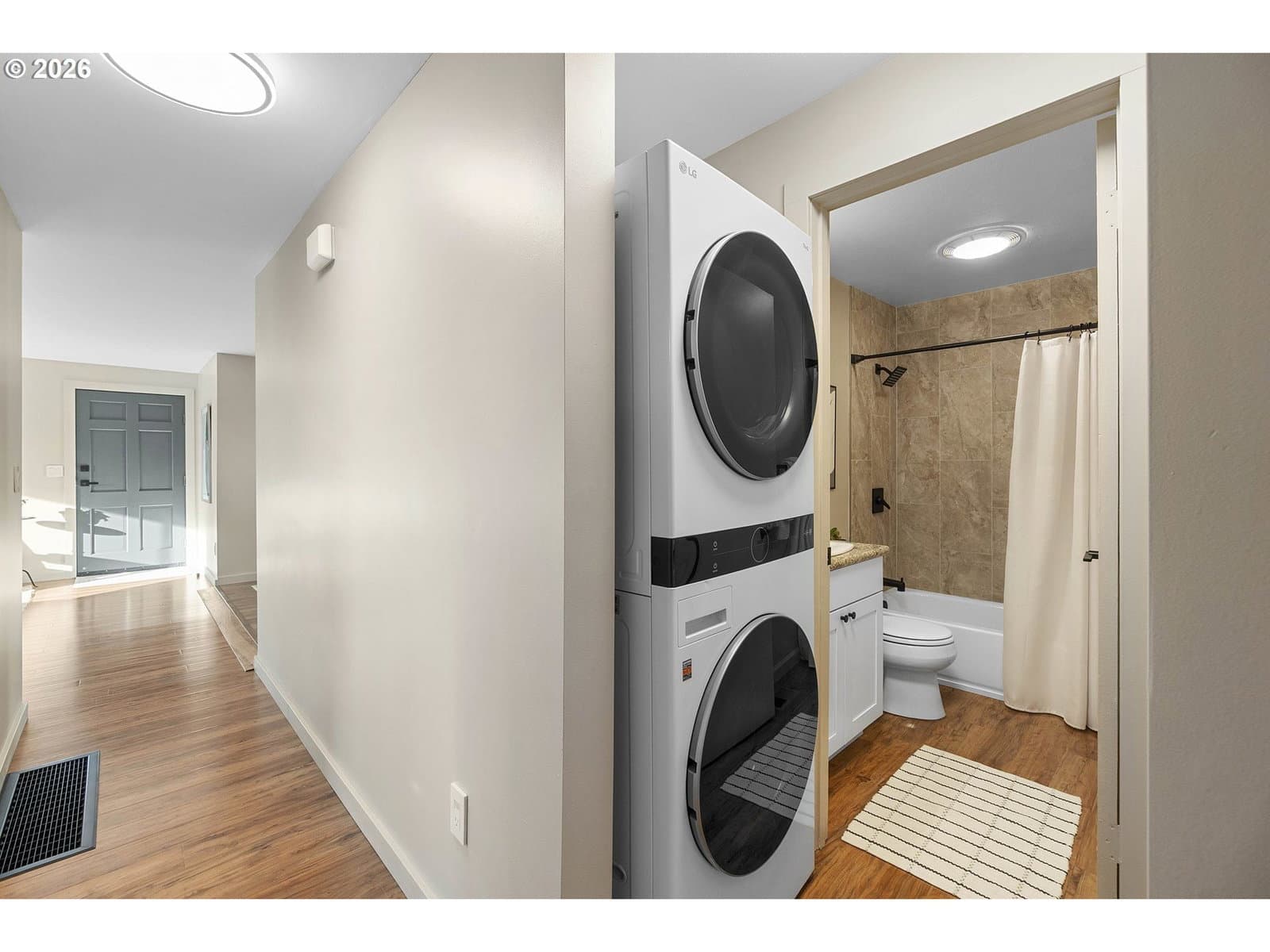 Small but mighty — and serving serious Woodstock vibes. This 3-bedroom, 1-bath charmer proves you don’t need a huge footprint to live large. With 1,220 square feet completely transformed, this home is dialed, stylish, and absolutely ready for its next chapter. Let’s start with the good stuff: a new roof, fresh interior and exterior paint, new engineered hardwood flooring throughout, a beautifully remodeled kitchen with all-new sleek stainless steel Samsung appliances, an updated bathroom, new lighting, washer/dryer and more. Tired of touring houses without air conditioning? We’ve got you covered. This house truly has it all, which means you get to skip the renovation phase and go straight to the fun part: living here. Unlike many ramblers, the layout offers more living space than you’d expect. You’ll find a comfortable living room and a huge family room — both just off the kitchen — keeping everyone connected whether you're hosting friends, binge-watching your latest show, or cooking something fabulous. Outside, you will enjoy the privacy of the fully fenced backyard and you can kick back and relax on the patio, or slip into the hot tub (yes, it works!). If you have a green thumb, this sunny space is perfect for adding perennials or raised beds. Save on water bills with the drought tolerant landscaping. There’s also a shed ready to hold bikes, tools, garden gear, or whatever your Portland hobbies require. And the location? Hard to beat. Woodstock is like Diet Sellwood! With an impressive 99 BikeScore, you’re close to trails with quick access to Woodstock Park and all the beloved eateries and shops along vibrant Woodstock Blvd. Summer will be here before you know it, and you’ll be able to stroll over to the Farmers Market from June through October. [Home Energy Score = 4. HES Report at https://rpt.greenbuildingregistry.com/hes/OR10245652]