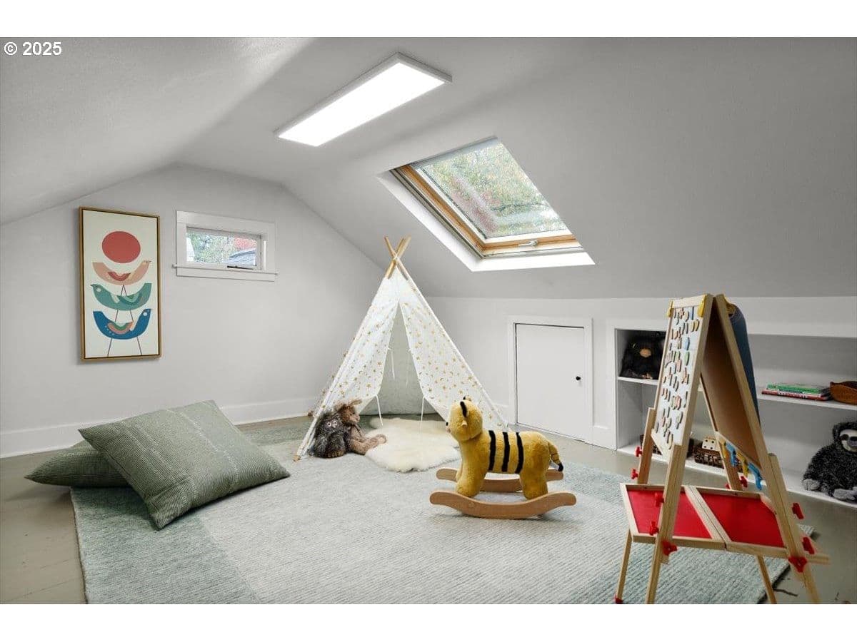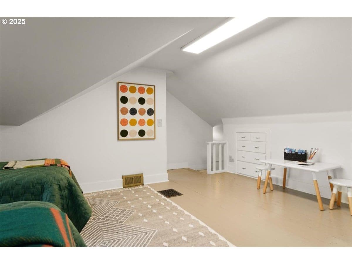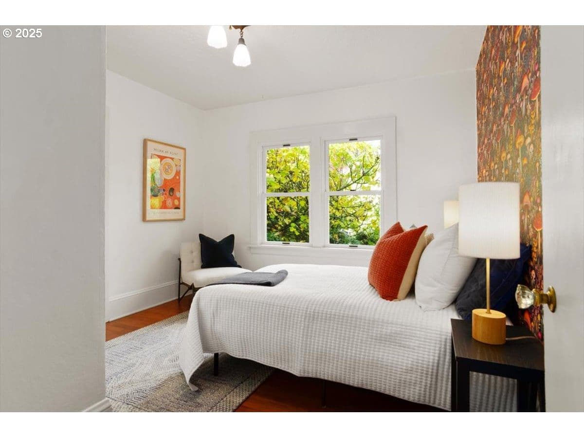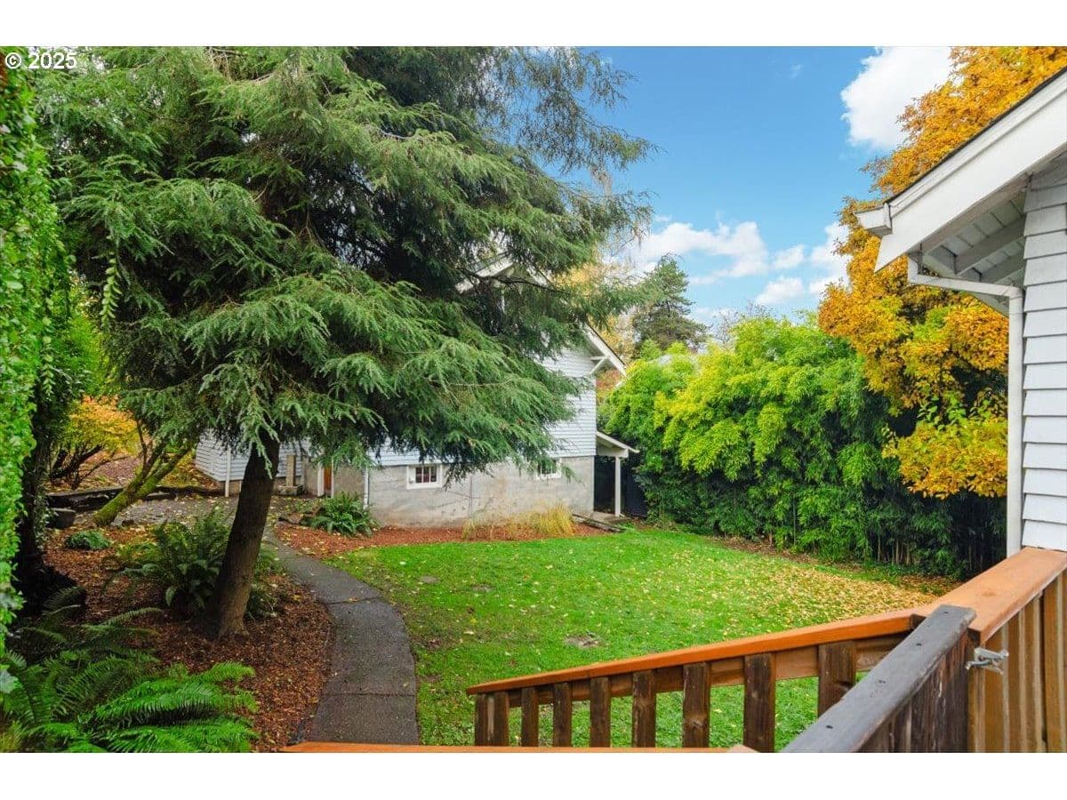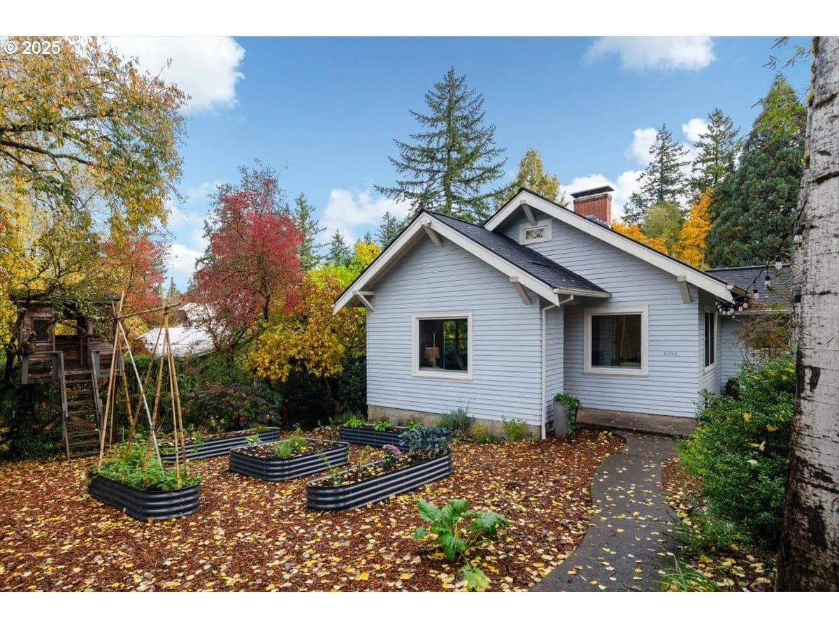 An updated yet preserved bungalow nestled in a secret private garden on a double lot just three blocks from Multnomah Village?! Move-in ready with a fully fenced yard of mature plantings and landscaping?! Detached double car garage with bonus room?! This is the one passersby ask about and that you’ve been waiting for. Fall in love with this light-flooded pairing of preservation and charm around every corner, in a coveted neighborhood that rarely comes available. Curl up in front of the fireplace in the living room overlooking the lush front and side gardens, including the raised beds for the urban farmer/flower lover in you. Host a dinner in the dining room with big windows overlooking the gorgeous garden designed for year-round enjoyment. The eat-in kitchen is true vintage yet superfunctional with thoughtful updates. The two cozy main floor bedrooms are inviting, and the third plus extra bonus areas on the second floor has plenty of flex space for playroom, office, studio, craft area…you decide. Outside every door and window is an entrance to your own private park alive with flowers and birdsong. The upgrades marry efficiency to functionality: the gas furnace with Nest thermostat and heat pump water heater are both high efficiency; the Marvin Infinity windows with transferable warranty are insulative and paintable fiberglass that upholds the aesthetic of the original wooden windows; a Mr. Cool mini split keeps the second floor comfortable year-round, and the newer roof (2020 tear-off) will keep you dry and warm for years to come. Yet so much potential remains as well: the big daylight basement has full height ceilings and two exterior doors; the double garage with additional insulated workspace has a vaulted ceiling, ceiling fan, heat and power; the subpanel is wired for 220 and has the breaker ready for a new level 2 car charger; and the 2000+SF side yard has plenty of room for your dream project. You don’t have to settle, you can have it all. [Home Energy Score = 3. HES Report at https://rpt.greenbuildingregistry.com/hes/OR10242702]