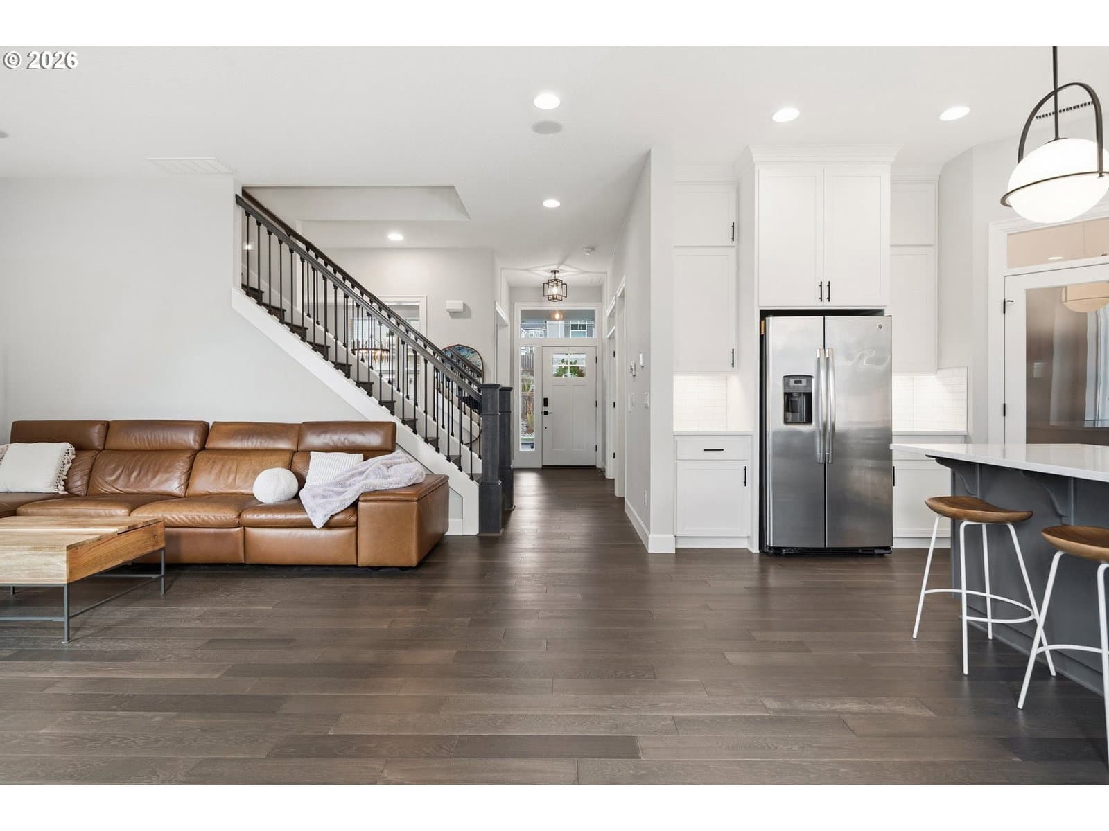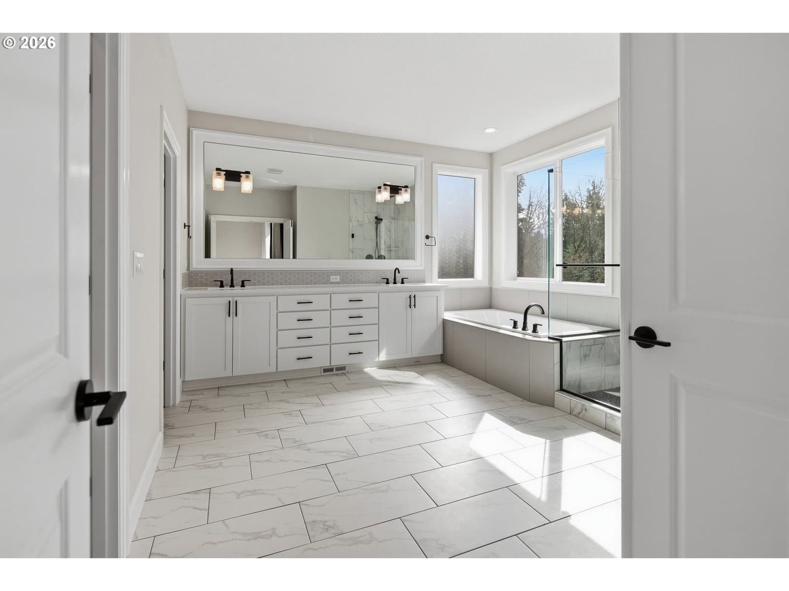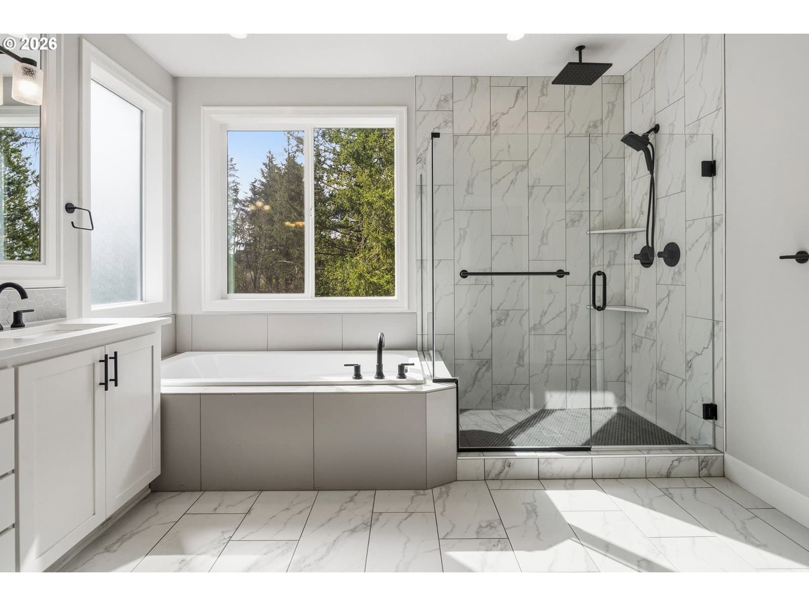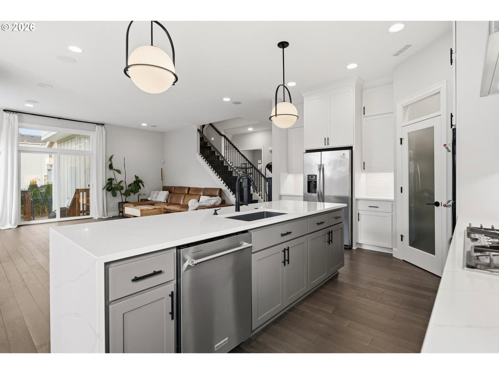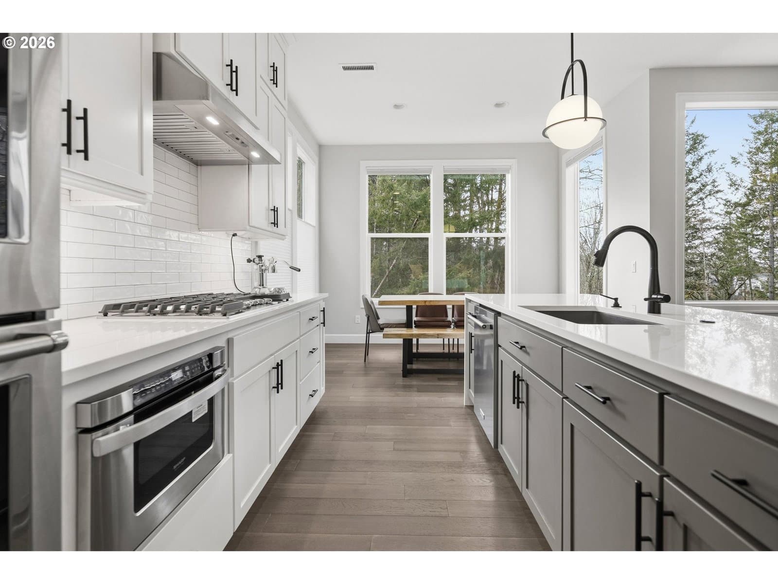 PRIVACY & GREENBELT VIEWS! Beautiful modern farmhouse on a premium corner lot backing to a peaceful greenbelt, offering rare privacy, nature views, and great curb appeal in one of the area’s most desirable neighborhoods and schools. This thoughtfully designed home features 4 bedrooms, 3 full bathrooms, a large bonus room, and 2,877 sq. ft. of living space. Inside, you'll find a bright open-concept layout with wide plank engineered hardwood floors, large windows, and stylish modern lighting throughout. The gourmet kitchen is the heart of the home, featuring a quartz waterfall countertop, custom cabinets, stainless steel appliances, and a large island with seating, perfect for entertaining or everyday living with views and ample privacy. The kitchen opens to the dining and living areas, where a cozy fireplace and built-in surround sound create a warm and inviting space. Upstairs, the spacious primary suite offers a relaxing retreat with a spa-like bathroom that includes a soaking tub, oversized walk-in shower with floor-to-ceiling tile, dual vanities, and a large walk-in closet. The additional bedrooms are generously sized and provide flexible space for guests, a home office, or a workout room. Outside, enjoy the large backyard with peaceful greenbelt views and mature trees, next to an open park like setting offering a rare sense of privacy while still being close to neighborhood amenities, shopping, dining, easy access to downtown, and major employers. MUST SEE.