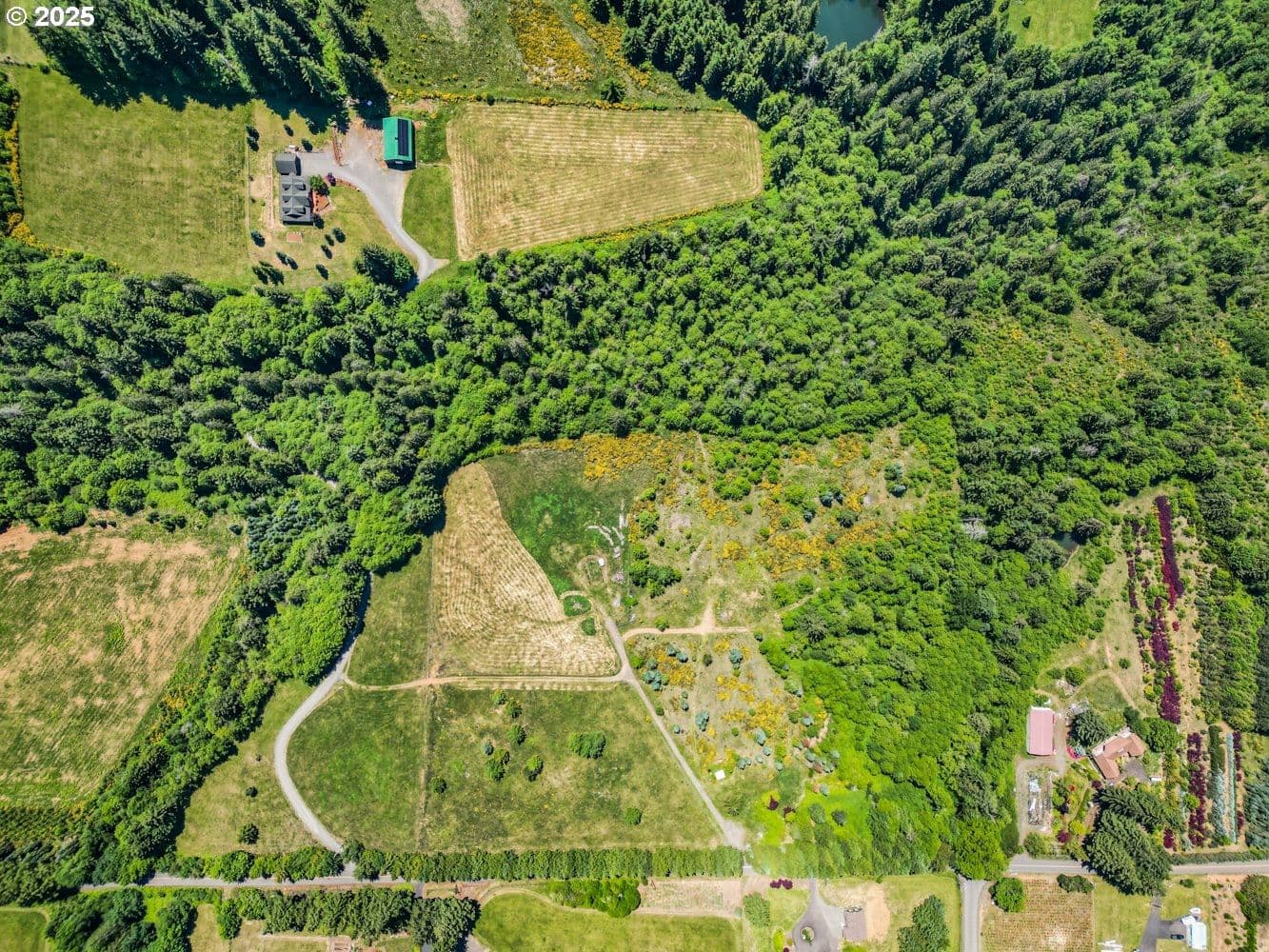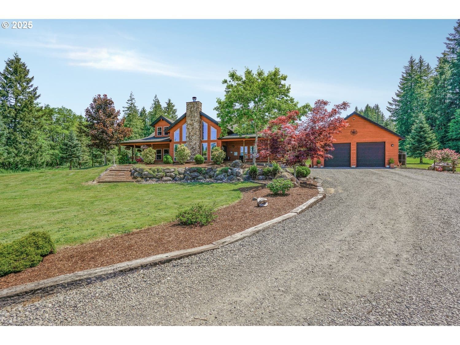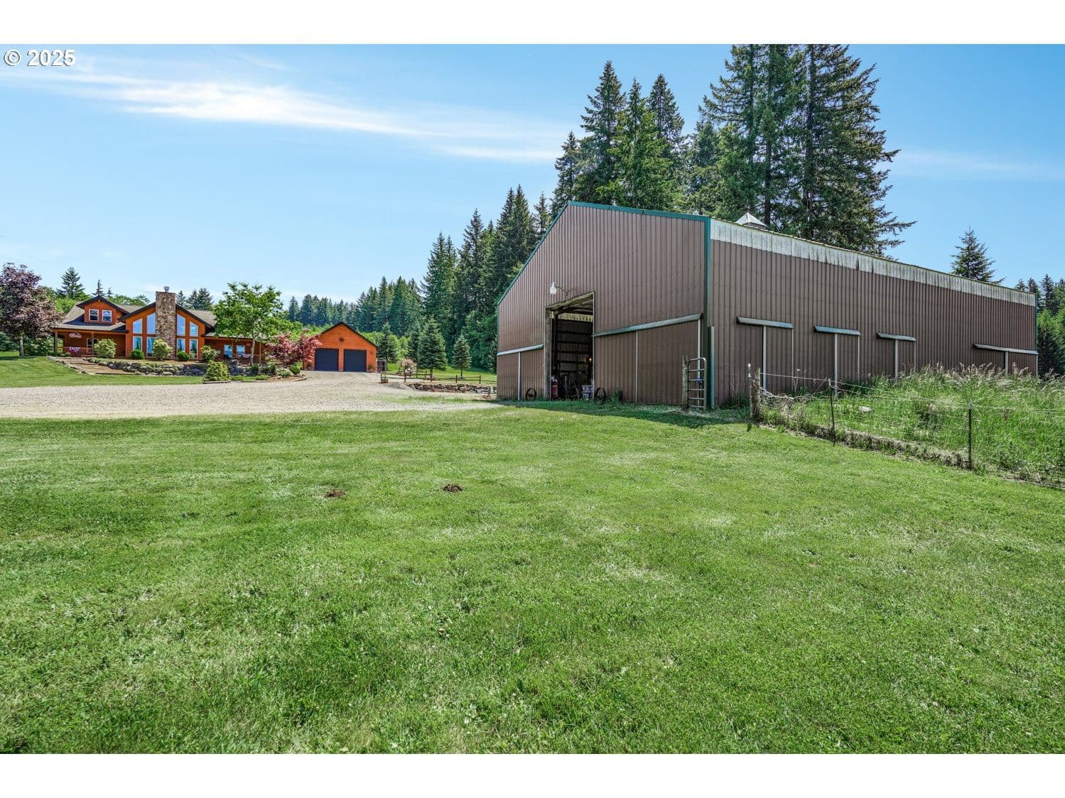 Unmatched privacy and natural beauty in this stunning custom-style estate set on just under 40 secluded acres, surrounded by mature trees and mountain views. Thoughtfully designed and impeccably maintained, this property features over 3,300 square feet of living space, a 48'x72' with 2 stories, 17' to the bottom of the trusses and 27' to the peak of the shop. There are 10' x 14' roll up doors on each end. There is a 54 panel solar system on the west side of the barn roof. A separate detached garage with dual roll-up doors and a generator wired to run the home off grid adds even more convenience and utility. Outside, enjoy the serenity of beautifully landscaped grounds with a wrap-around deck, garden space, an expansive lawn, and a private hot tub, making it the perfect place to unwind under the stars. Step inside to a grand open-concept living area, highlighted by rich hardwood floors, soaring vaulted and beamed ceilings, and a dramatic floor-to-ceiling rock fireplace framed by a wall of windows that flood the space with natural light. The gourmet kitchen has granite countertops, a generous cook island, stainless steel appliances, pantry, and wine cooler, the ideal space for entertaining. French doors off the dining area lead directly to the deck for seamless indoor-outdoor living. The main-level primary suite features a spacious walk-in closet, spa-inspired bath with soaking tub, and French doors opening to the deck and nearby hot tub. A second bedroom on the main offers flexibility for guests or a home office. Upstairs, the family room overlooks the living space below and flows into an expansive game room with a wet bar, making it the perfect space for hosting gatherings. A third bedroom with a walk-in closet and full bath complete the upper level. There are 2 creeks that run through the property. The one that runs east and west is Bear Creek and it has fish in it! This private estate offers luxury, versatility, and a lifestyle of peace and beauty.