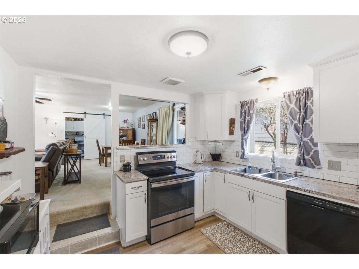 Darling, well-maintained 3 bed home, plus a bonus den/office room. Would make a perfect affordable starter, downsize, or investment. Lots of paved parking for you & your toys! New kitchen cabinets & granite countertop. All new vinyl windows & patio slider to covered deck. Gas forced air with central AC & updated gas water heater. Garage is oversized with workshop area. Spacious laundry/mud room with tile floor connects the home to garage. 3rd bedroom does not have a closet, but the wardrobe is included.