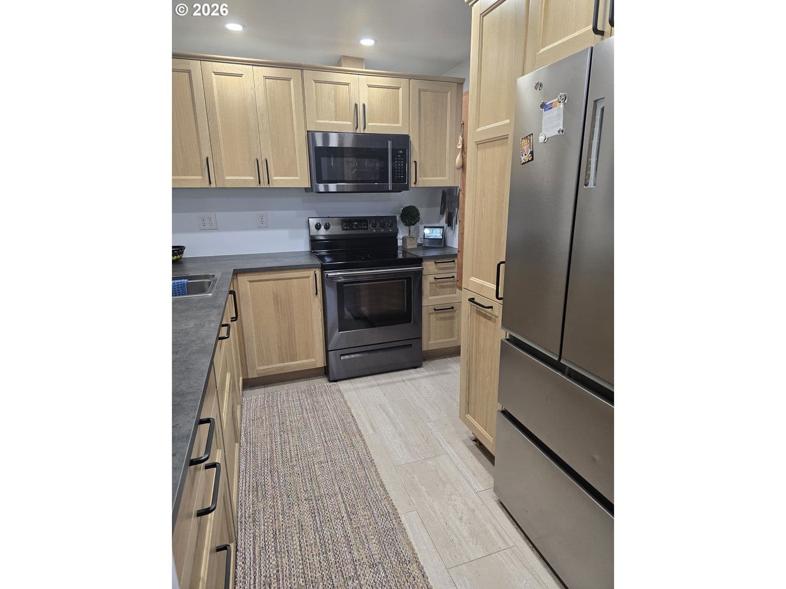 Welcome home to this beautifully maintained, turnkey 2-bedroom, 1-bath residence located in the highly desirable Woodburn Senior Estates 55+ community. Thoughtfully updated and move-in ready, this home offers a spacious and functional floor plan designed for comfortable living.The heart of the home is the brand-new kitchen, updated in 2024 with all-new appliances and modern lighting. A separate family or recreation room provides flexible space for relaxing, entertaining, or hobbies. You’ll also appreciate the extraordinarily large laundry room, offering ample storage and convenience. Additional recent upgrades include all water lines replaced with top-of-the-line PEX piping in 2024, along with fresh interior paint throughout the home.Situated on one of the largest lots in the subdivision, the fully fenced yard is surrounded by well-maintained landscaping, creating a private and peaceful outdoor setting. The home is ideally located just a few blocks from the clubhouse, making it easy to enjoy all the community amenities.The HOA offers exceptional value and includes golf for two, a pool, jacuzzi, fitness center, and a wide variety of social activities. Residents enjoy an active, low-maintenance, and carefree lifestyle in this welcoming community.This is a rare opportunity to own a beautifully updated home in one of the area’s most sought-after 55+ neighborhoods.