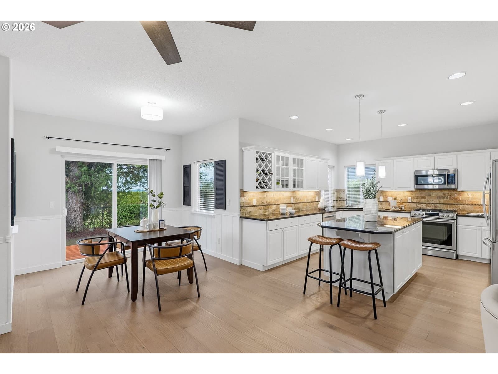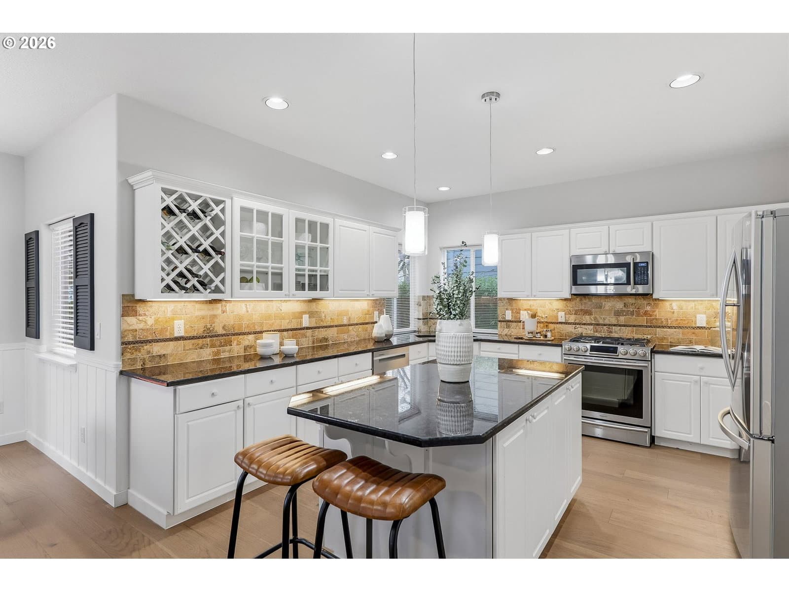 OPEN HOUSE FEB 14, SAT 12-3PM Beautiful Bethany Terrace home is warm, bright, and move-in ready. Updates include engineered hardwood floors on the main level, fresh interior paint, stainless steel appliances, granite countertops, carpet and pad, a Carrier furnace and air conditioner, water heater, roof, and exterior paint. Formal living and dining rooms flow into a well-appointed kitchen featuring a stainless steel gas range with touch screen, built-in microwave, dishwasher, French-door refrigerator, granite counters with under-mounted stainless steel sink, white cabinetry, wine rack, glass doors, full backsplash, under-cabinet lighting, pantry, breakfast nook, and island with pendant lighting and eating bar. The light-filled, two-story family room offers a gas fireplace, built-in entertainment center, and dual staircases for added convenience. The primary suite & bath includes a garden tub, step-in shower, dual vanities with under-mounted sinks, granite counters, and a large walk-in closet. Additional bedrooms include ceiling fans, and the oversized bonus/media room or additional bedroom features a built-in desk. Outside, enjoy a private fenced backyard with pavers and deck, tool shed, and direct access to the greenbelt and walking trail. Conveniently located near Bethany Centre, shopping, gym facilities, and more! Must See