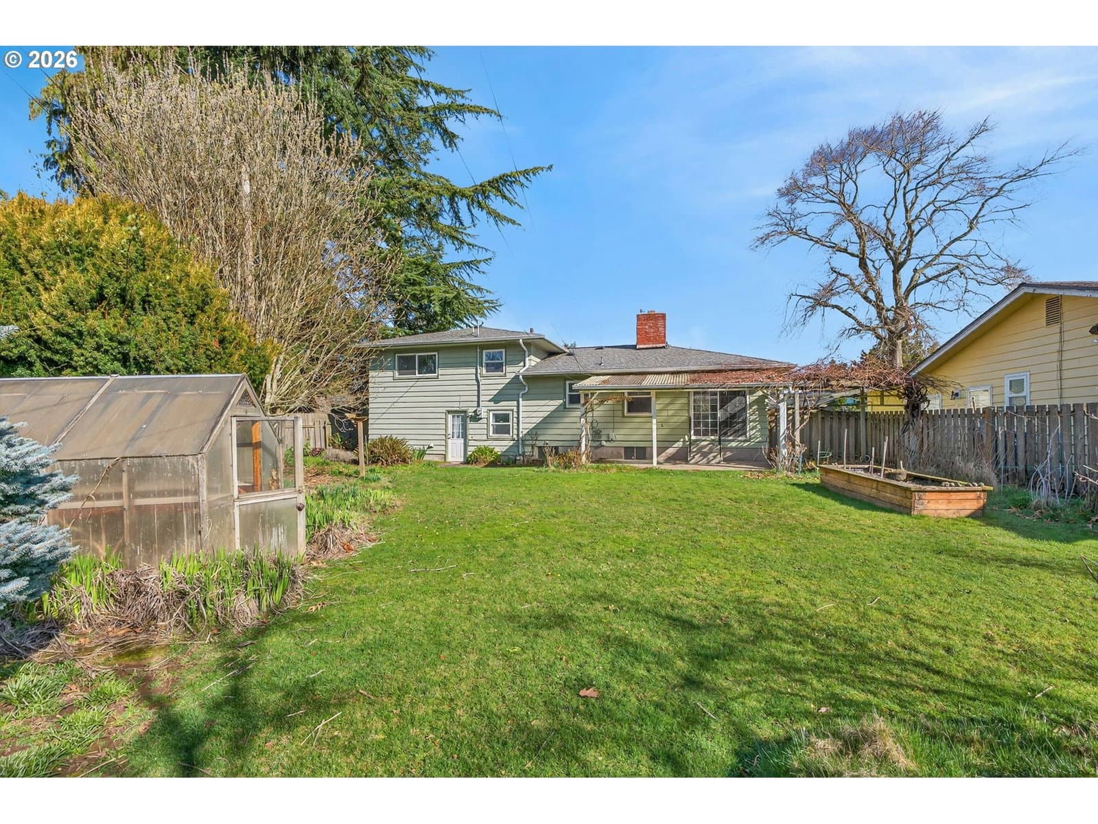 Classic 1959 charm with major system updates already done. This 3-bedroom, 1.5-bath home offers a smart, functional layout with bedrooms and the full bath just a half flight of stairs up, providing separation without sacrificing flow. Step through the front door into a bright living room featuring original wood floors, a cozy wood stove, and large picture windows overlooking a quiet, tree-lined street. Natural light pours in, creating a warm and inviting space to gather. Off the garage you’ll find a convenient half bath, and just a half flight down is a spacious finished basement bonus room, perfect for a second living area, playroom, media space, or home office—plus a generous utility room with abundant storage. Outside, enjoy a level, fully fenced backyard with room to garden, play, or entertain, complete with a small greenhouse, berry plants and vegetable garden. The heavy lifting has been done: triple pane vinyl windows, newer roof, furnace, and hot water heater. Plumbing has been redone throughout and the sewer line replaced. Brand new interior paint makes this home truly move-in ready, while still offering the opportunity to add your own cosmetic touches and build equity over time. [Home Energy Score = 3. HES Report at https://rpt.greenbuildingregistry.com/hes/OR10245715]