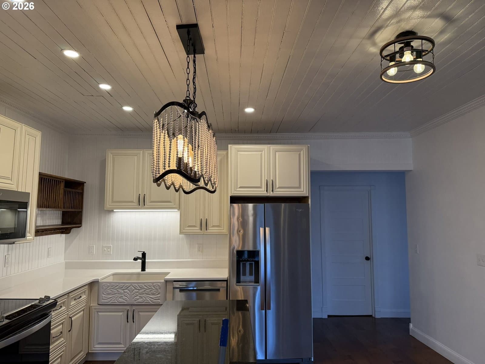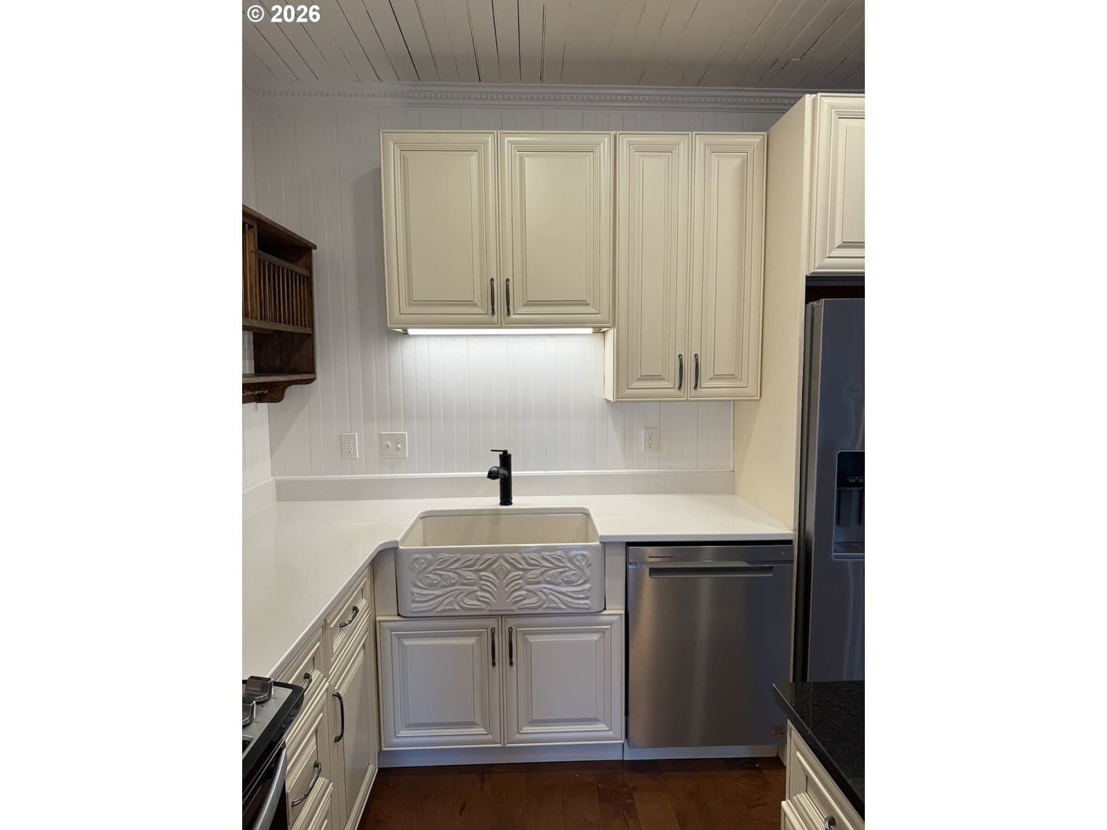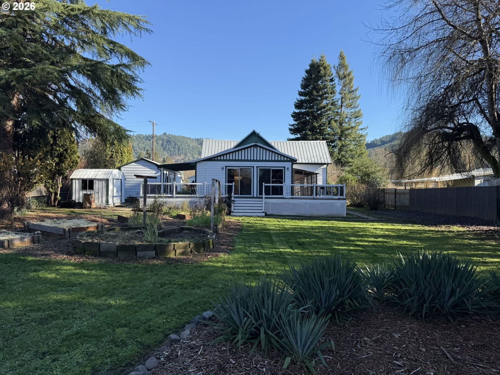 Fully restored historic home in the heart of Drain. Small town vibe, conveniently situated between Eugene/Cottage Grove to the North and greater Roseburg to the South. This is the perfect home for commuters, full time residents & investors alike. You have to see the previous photos to fully appreciate the transformation of this home & property. Now a 3 bedroom, 2.5 bath home with all of the modern updates, while retaining the vintage charm, right down to the original shiplap ceilings. Inside features new electrical, plumbing, engineered maple hardwood flooring, paint, crown molding, windows & doors throughout + all new quartz counters, cabinets, fixtures & stainless appliances. Four ductless heat pumps efficiently service this 1400+ SF home. Outside has a paved driveway to a brand-new single car/extra-deep garage, 500 SF of composite decking, fully landscaped English garden in the front, a crushed granite path all around and a large, fenced backyard that includes raised garden beds. A true treasure for this area that you must see.