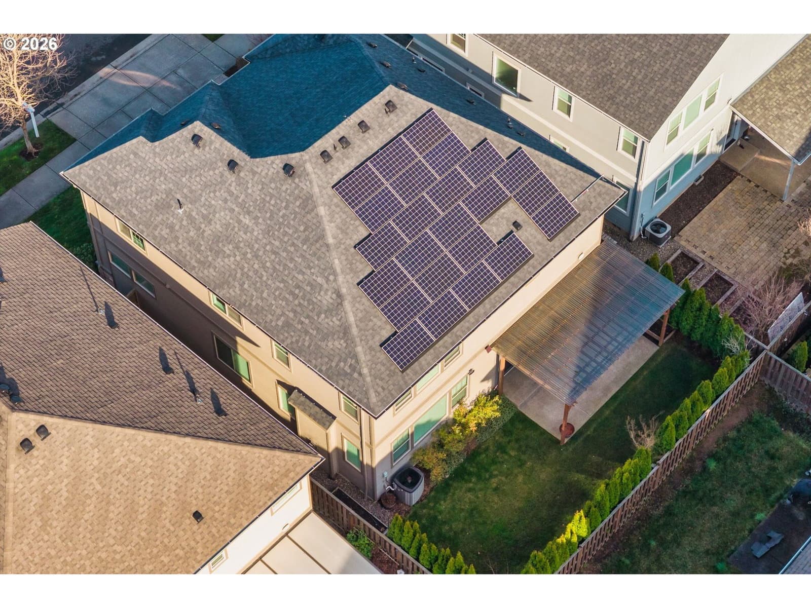 Bethany Area | Energy-Efficient | 4 Bedrooms + Main-Level Den.Beautifully maintained north-east facing and thoughtfully upgraded home in the highly desirable Bethany neighborhood, offering comfort, efficiency, and modern convenience.This spacious home features 4 bedrooms plus a versatile den on the main floor, perfect for a home office, guest room, or flex space. The main level showcases engineered hardwood flooring, complemented by upgraded carpet throughout the rest of the home.Enjoy year-round comfort with a premium Lennox heat pump system providing efficient two-stage heating (electric + gas backup) and single-stage cooling. The home is equipped with 24 fully paid Tesla solar panels (7.2 kW inverter) generating approximately 8.7 MWh annually, significantly reducing utility costs.Additional upgrades include:EV-ready garage with 240V outlet7-stage reverse osmosis water filtration system under the kitchen sinkWooden gazebo in the backyard, perfect for outdoor relaxation and entertainingSoaking tub in the spacious primary suiteFront-facing green space offering privacy and serene viewsLocated within the Bethany Falls Creek community, residents enjoy access to a community center, swimming pool, and gym, plus walking distance to parks and trails.This home combines energy efficiency, thoughtful upgrades, and an unbeatable community lifestyle — a rare opportunity in one of Portland’s most sought-after neighborhoods.