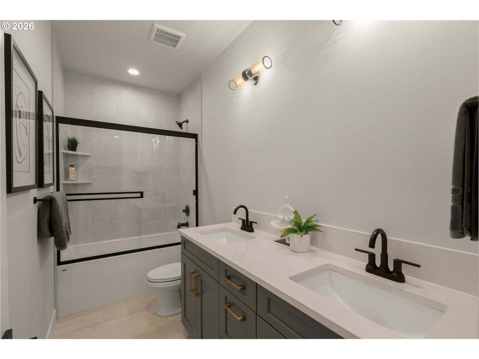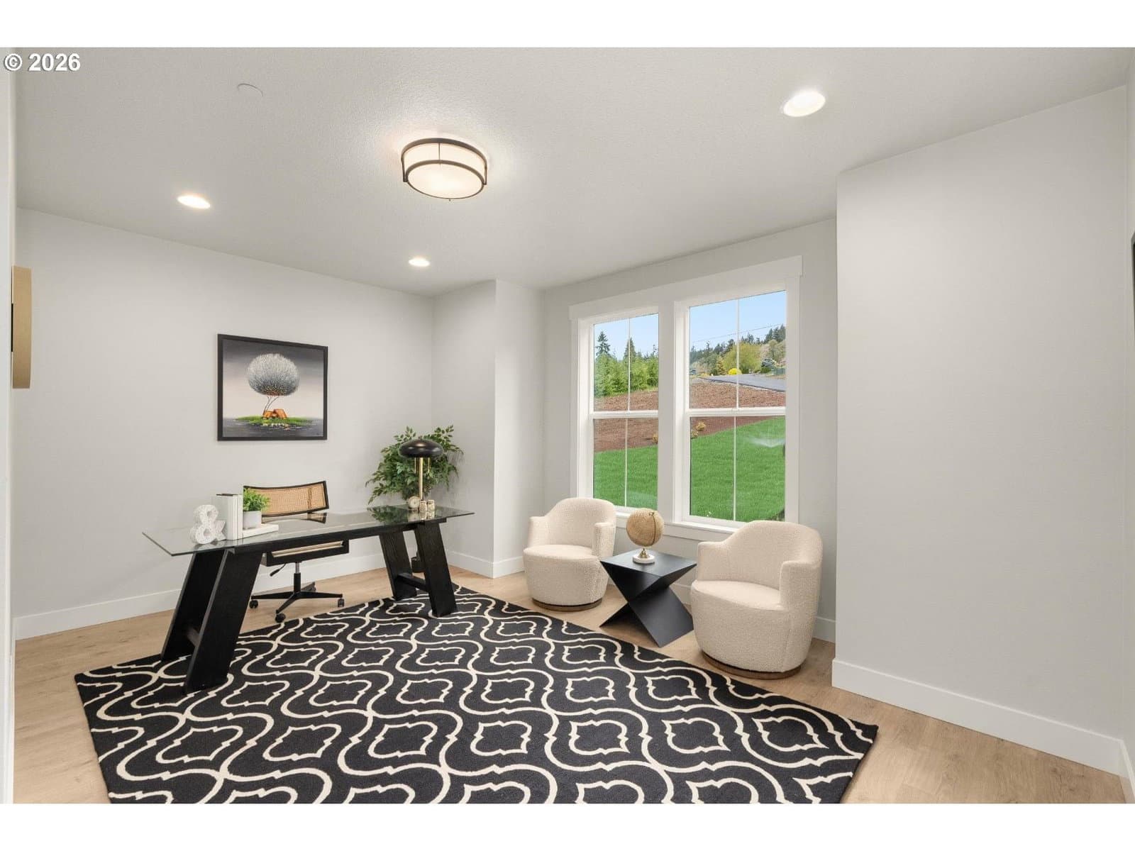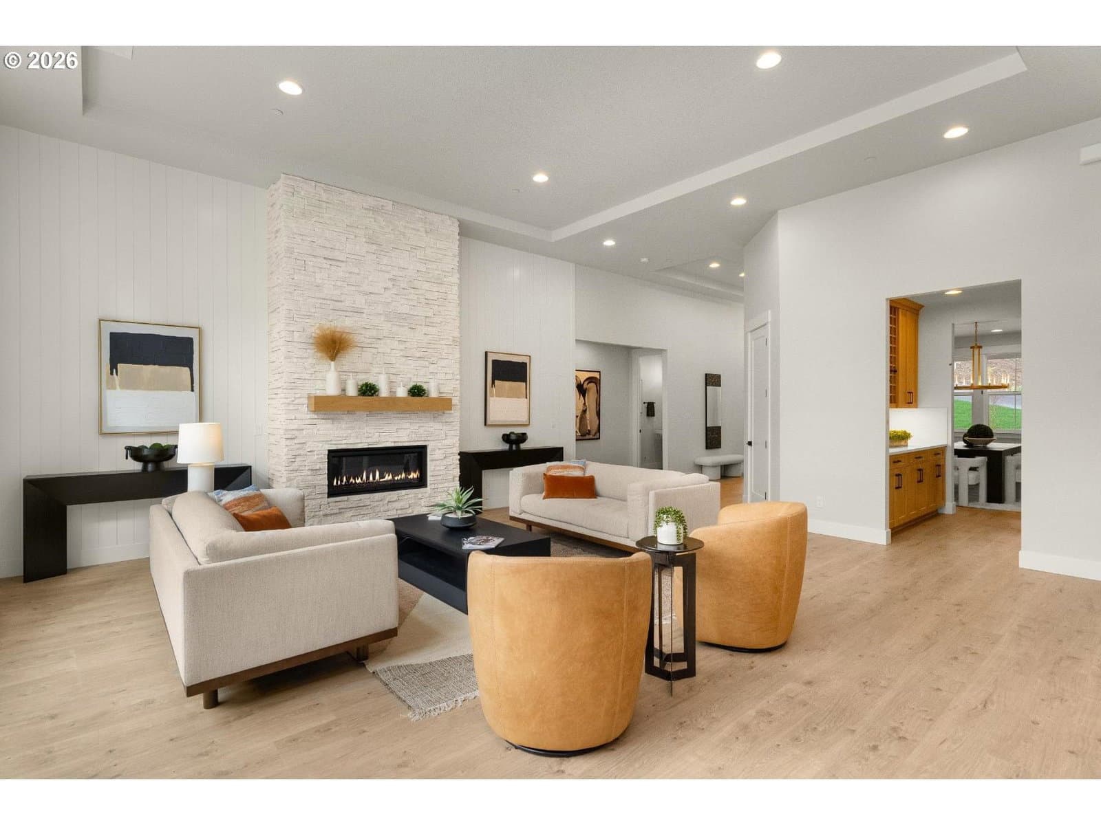 Just completed on nearly 2 private acres in Newberg’s wine country, this brand-new Shasta XXL offers 4 bedrooms with primary on the main, 3.5 bathrooms, private den and formal dining space. Set back from the street, this home features a grand 8' farmhouse entry, 12' ceilings, a coffered great room, dining room, and den with glass French doors. The chef’s kitchen includes quartz slab counters, a large island, Monogram appliances, under-cabinet lighting, and a butler’s pantry with wine rack. The great room showcases a floor-to-ceiling masonry fireplace, while the nook opens to a spacious Trex deck with BBQ gas line and outdoor fireplace. The main-level primary suite includes a curbless tile shower, upgraded vanity, and walk-in closet. Two additional bedrooms and laundry are on the main. Upstairs offers a loft, media room, fourth bedroom, and full bath. Private acreage setting convenient to wineries, parks, shopping, dining, and commuter routes.