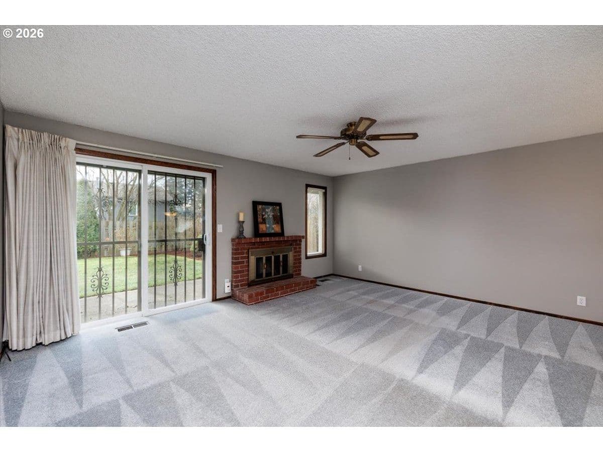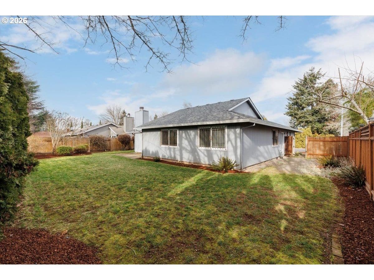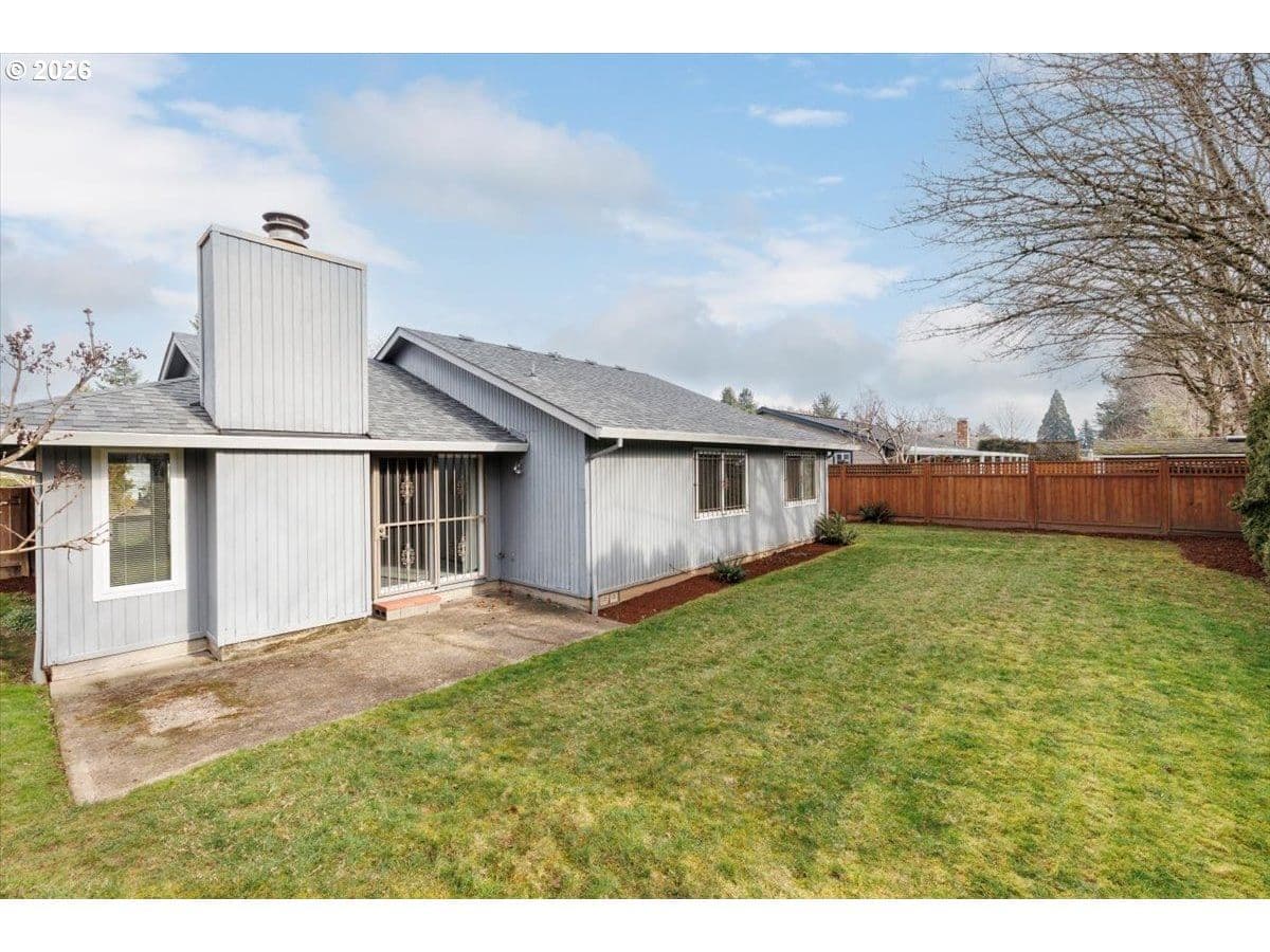 Set on a peaceful, tree-lined street, this well-maintained single-level home offers comfortable living, thoughtful separation of spaces, and a private yard in an established neighborhood. Perfect for first time home buyers or looking to downsize. The entry opens to a light-filled living area with a cozy fireplace and sliding glass doors that lead directly to the backyard — perfect for everyday living or casual entertaining. The kitchen and dining spaces connect seamlessly, offering good sightlines and practical flow without sacrificing separation. Three bedrooms are tucked away, including a primary suite with its own bathroom and walk-in closet, providing privacy and ease of living. Outside, the fenced backyard is level, usable, and easy to maintain — ideal for pets, play, or quiet evenings at home. Mature landscaping, sidewalks, and nearby parks give the neighborhood a settled, welcoming feel. This home offers both convenience and long-term livability.