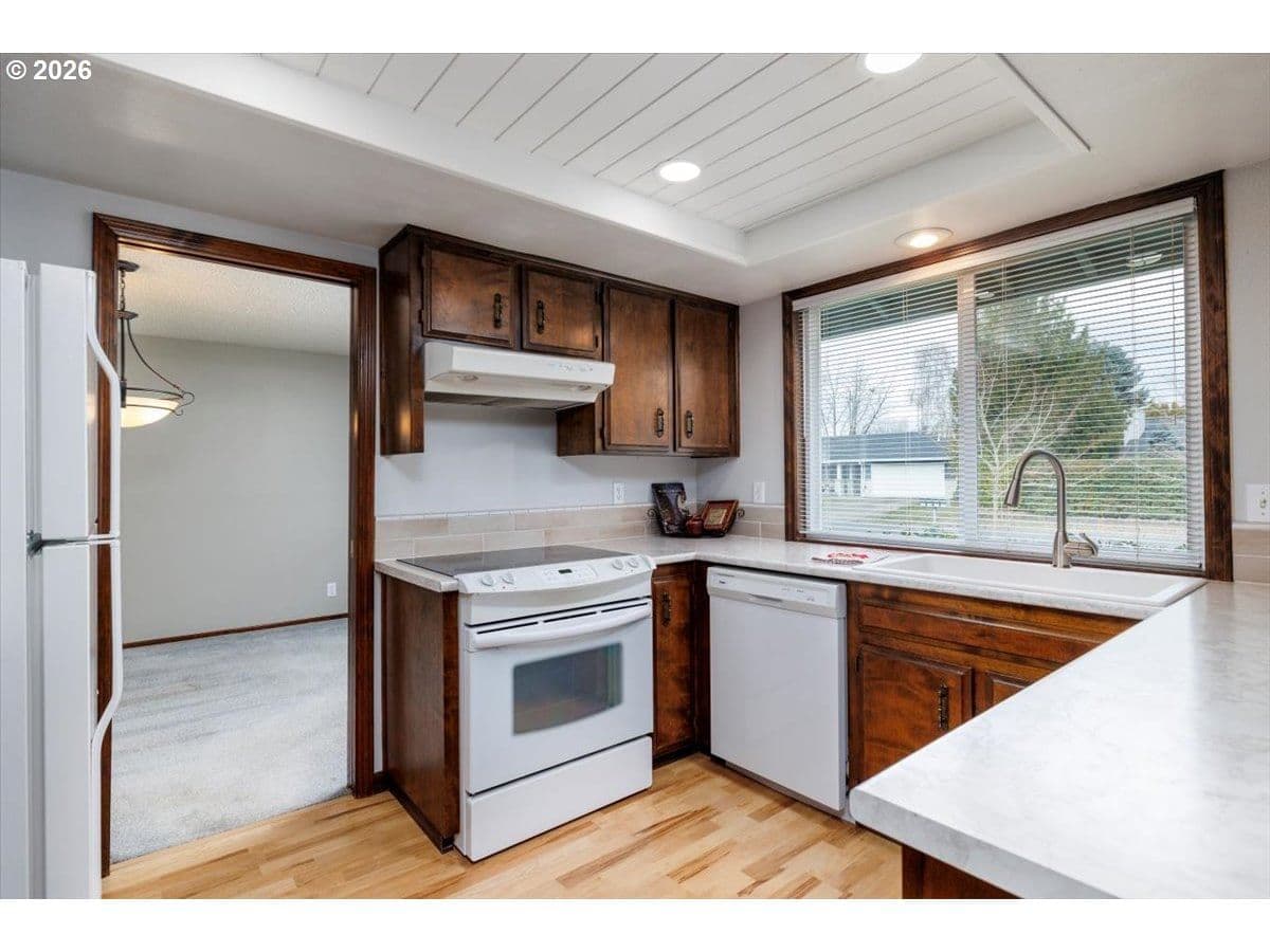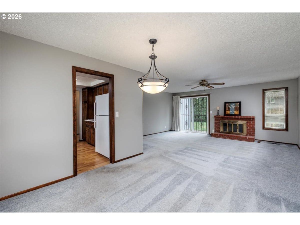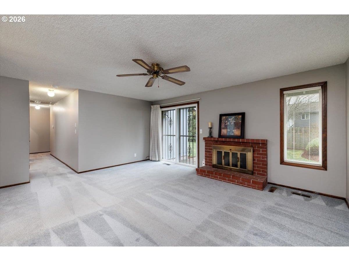 Set on a peaceful, tree-lined street, this well-maintained single-level home offers comfortable living, thoughtful separation of spaces, and a private yard in an established neighborhood. Perfect for first time home buyers or looking to downsize. The entry opens to a light-filled living area with a cozy fireplace and sliding glass doors that lead directly to the backyard — perfect for everyday living or casual entertaining. The kitchen and dining spaces connect seamlessly, offering good sightlines and practical flow without sacrificing separation. Three bedrooms are tucked away, including a primary suite with its own bathroom and walk-in closet, providing privacy and ease of living. Outside, the fenced backyard is level, usable, and easy to maintain — ideal for pets, play, or quiet evenings at home. Mature landscaping, sidewalks, and nearby parks give the neighborhood a settled, welcoming feel. This home offers both convenience and long-term livability.
