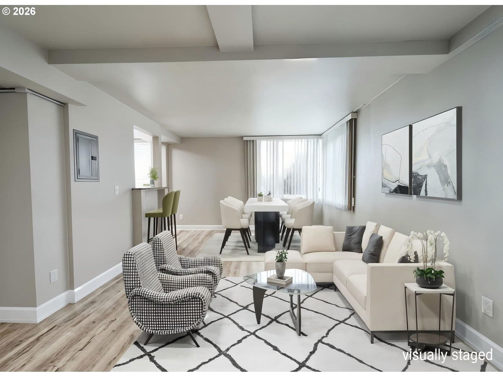 Newly updated condo near PSU: New flooring, New interior painting, New light fixtures, Updated bathroom! One block away from PSU! Convenient to OHSU, museums, restaurants and public transportation. Fantastic city view. Kitchen with maple cabinets and slab granite counters. Large in-unit laundry room offers extra space for storage. Strong HOA covers gas, heating, water/sewer, garbage, insurance and commons. Extra Storage unit on main level! Building recent upgrades: a newer roof and mini-split heating & cooling system! Ready to move-in for your city life!