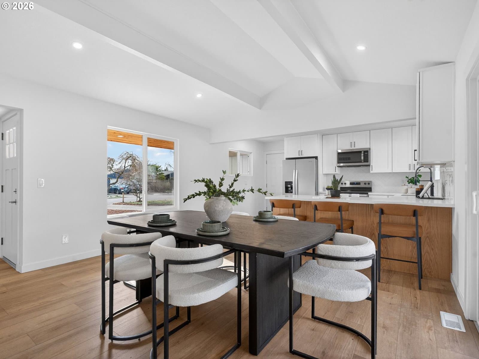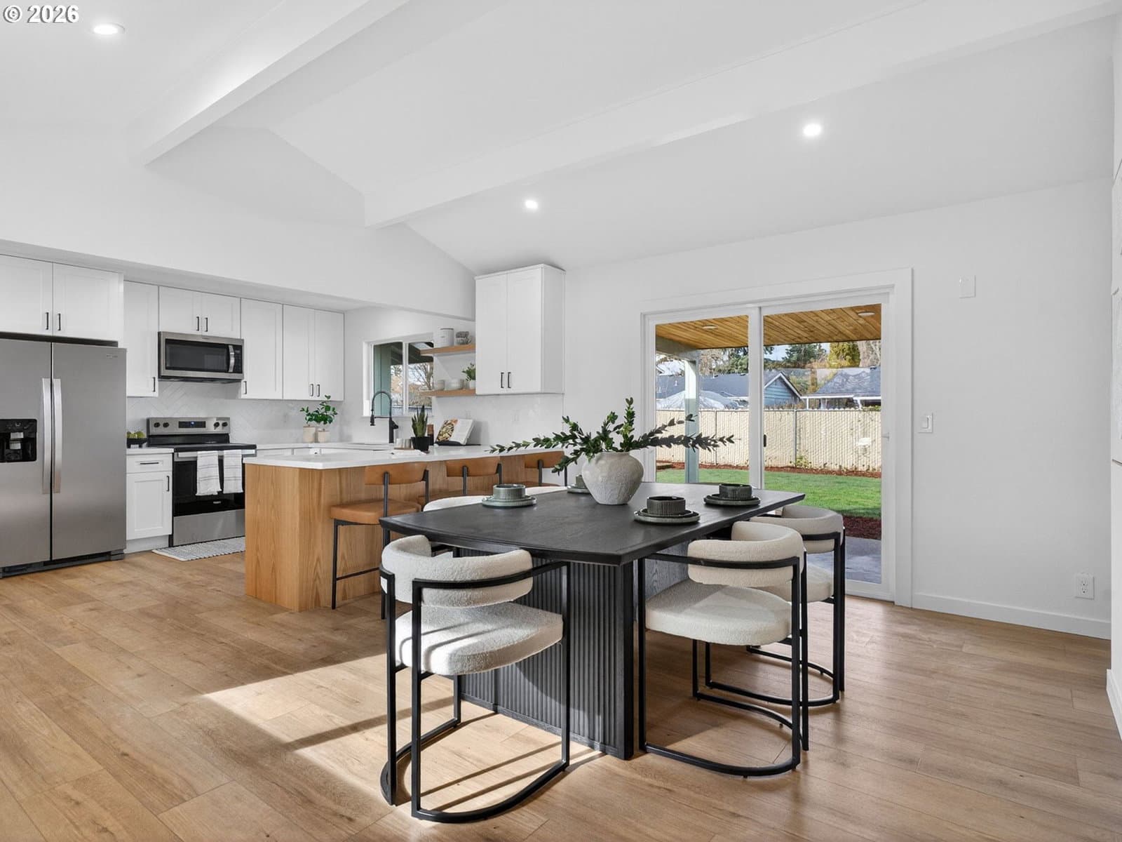 Turn-Key Beauty in the Heart of Beaverton! Impeccable, fully updated home tucked into a quiet neighborhood in Cedar Hills. Thoughtfully refreshed from top to bottom, this property blends modern finishes with everyday comfort. The light-filled interior showcases fresh finishes throughout, a functional layout and stylish touches that feel both current and timeless. Formal living room with wood-burning fireplace and beamed ceilings. The updated kitchen is the heart of the home, offering quartz countertops, tile backsplash, modern cabinetry and new SS appliances including dishwasher, range, microwave & fridge, complemented by a breakfast bar and a dining area with a slider. The private suite features a closet and an ensuite bath with walk-in-shower. Updated bathrooms offer a spa-like feel with clean lines and quality fixtures, while refreshed flooring and paint create a cohesive, move-in-ready experience. Highlights: 3 beds/2 baths, new interior & exterior paint, new flooring throughout and new roof. The landscaped, fenced backyard has a covered patio, patio and room for garden, perfect for entertainment. Attached 1-car garage with storage space and washer/dryer hookups. Prime location, very bikeable. Easy access to parks, shopping, dining, downtown Cedar Hills & commuter routes, making daily life effortless. This rare gem blends style, comfort and location—an ideal place to call home.