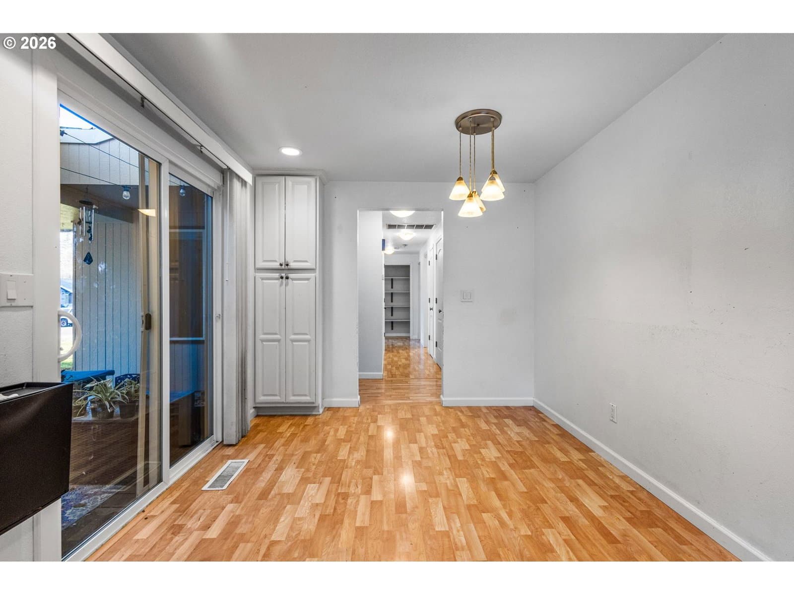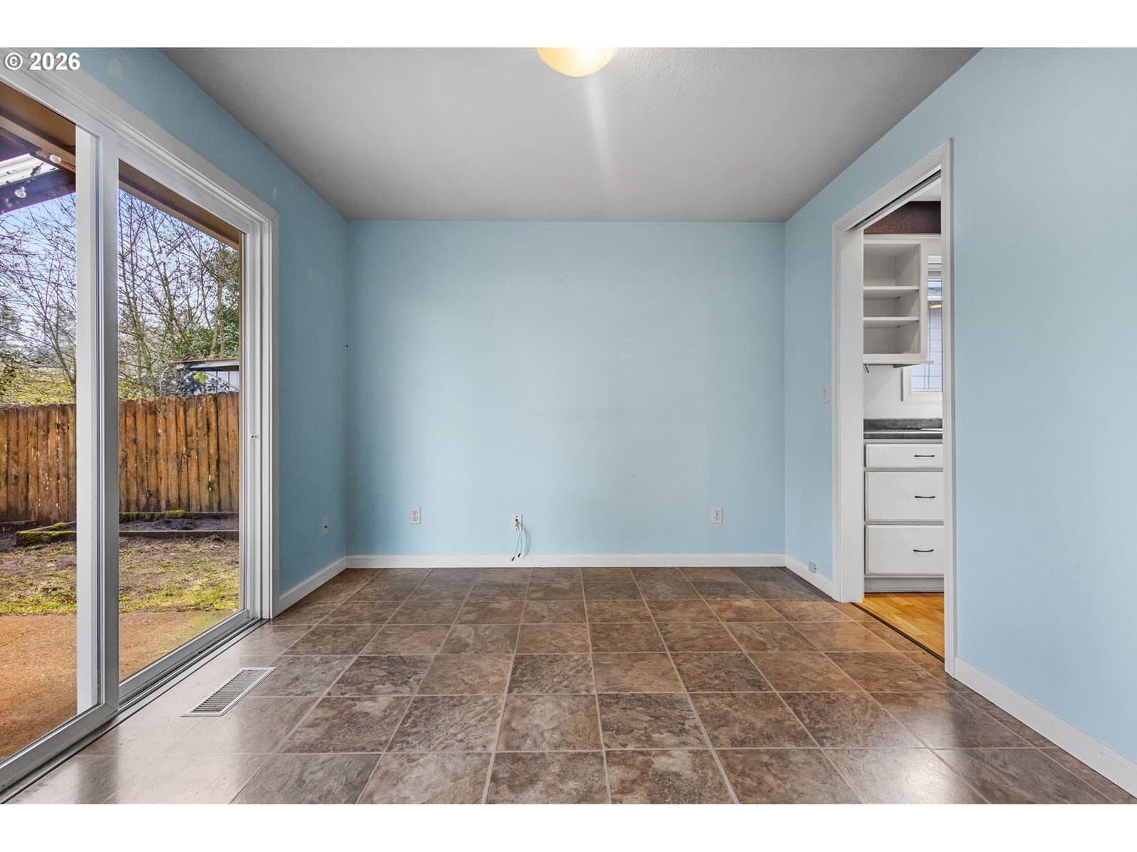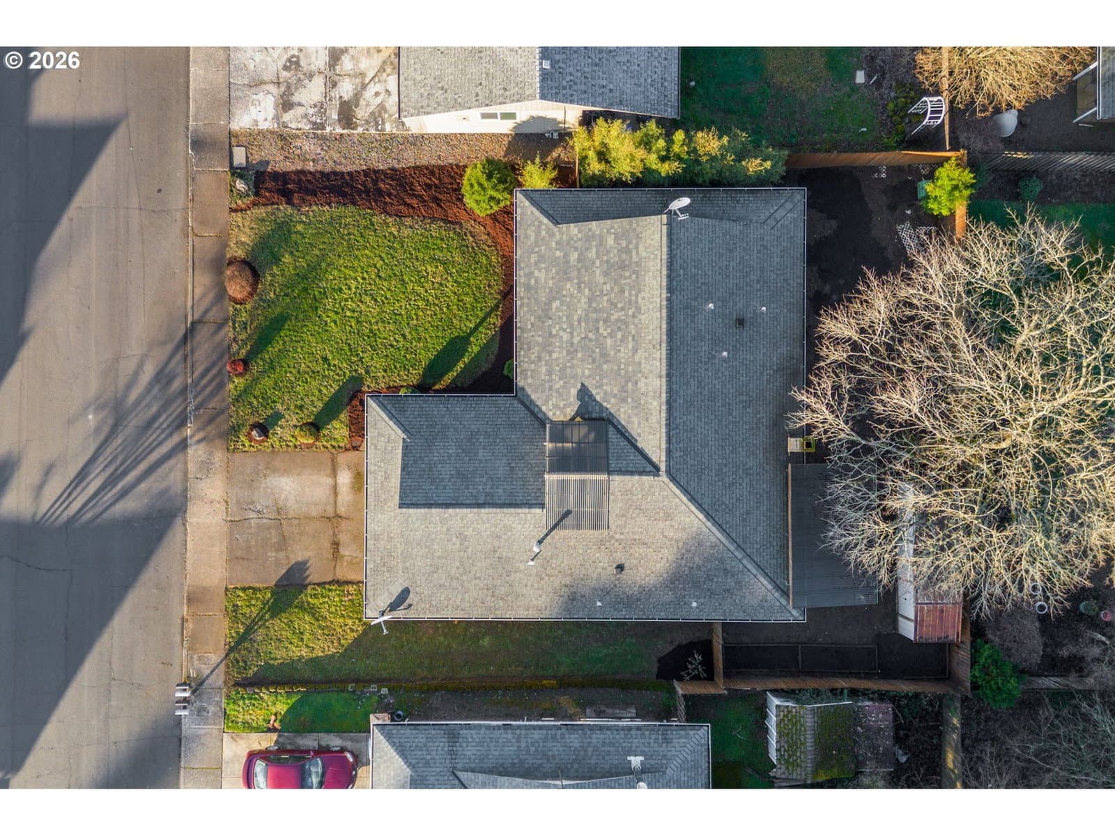 Single-level 1,454 sqft home located in a quiet South Salem cul-de-sac. *New roof to be installed prior to conclusion of sale*. Large, covered walkway leads to entrance with a covered atrium on front deck tucked into the side with its own kitchen entrance. Features include formal and casual dining areas, a covered backyard patio off kitchen, and a spacious living room with fireplace and beamed ceilings. Primary suite offers a walk-in closet. Just down the street from Crossler Middle School and Secor Park.This home really shines at night with great interplay between mid-century modern style windows and exterior lighting. Fully fenced and gated backyard ready for grass seed. Newer drainage system that that connects with gutter system and French drains. Lots of linen closets and a laundry/mudroom with utility sink. The home is perfectly set up to enjoy both back and front yard areas and the atrium compliments the natural flow of the layout. Vinyl windows and sliding doors.