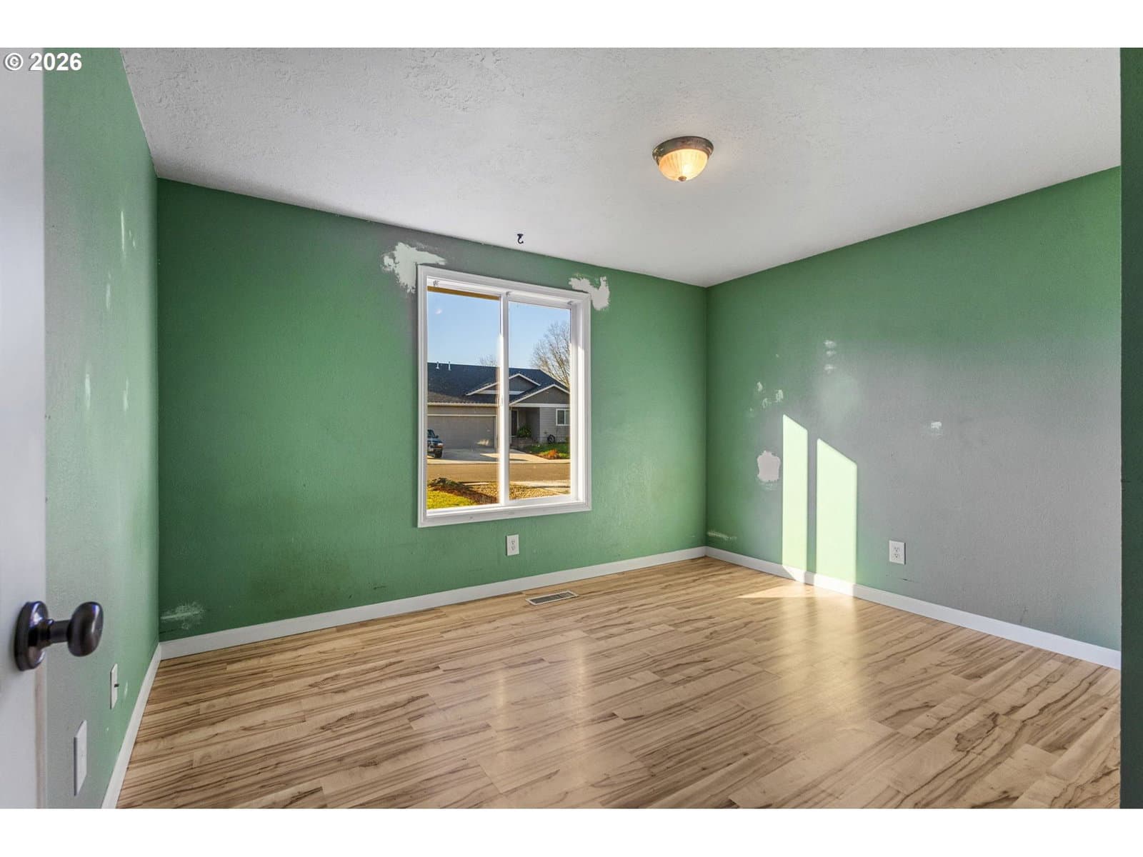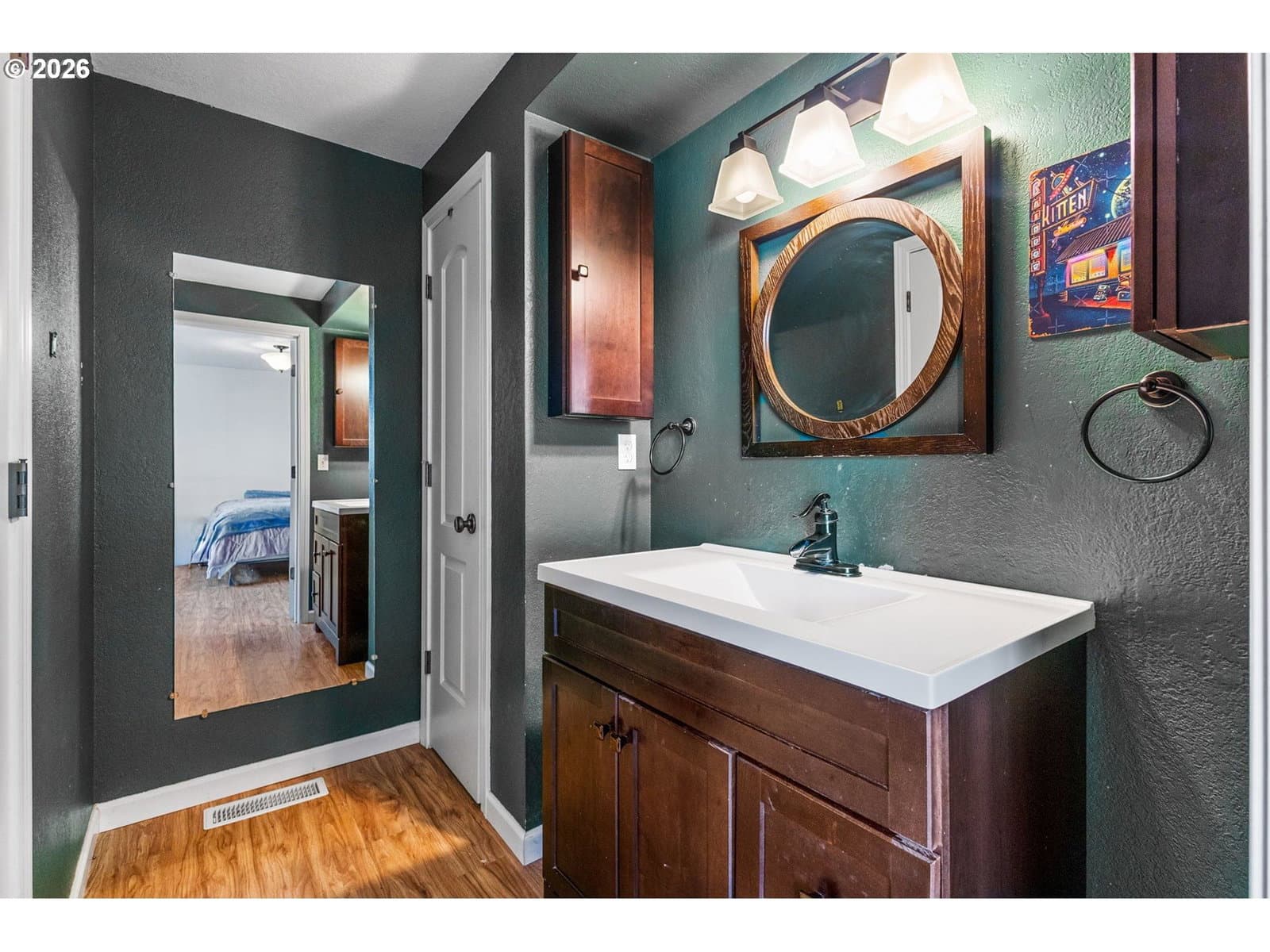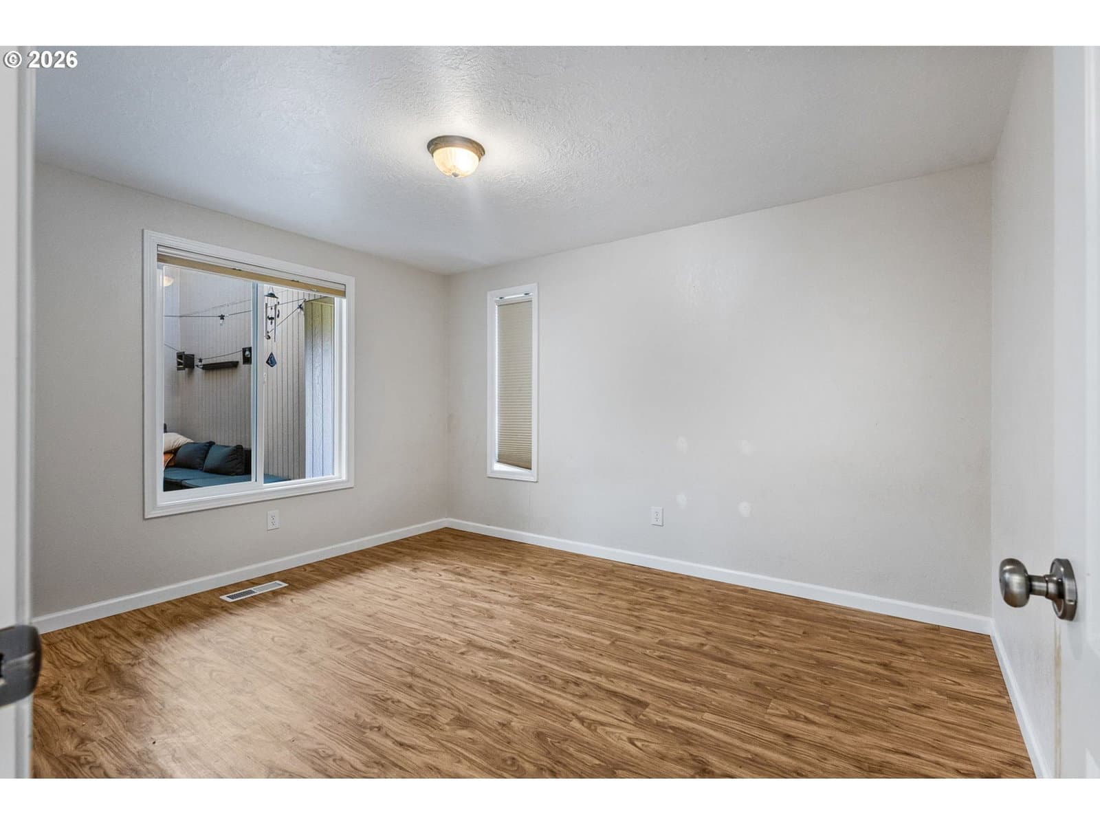 Single-level 1,454 sqft home located in a quiet South Salem cul-de-sac. *New roof to be installed prior to conclusion of sale*. Large, covered walkway leads to entrance with a covered atrium on front deck tucked into the side with its own kitchen entrance. Features include formal and casual dining areas, a covered backyard patio off kitchen, and a spacious living room with fireplace and beamed ceilings. Primary suite offers a walk-in closet. Just down the street from Crossler Middle School and Secor Park.This home really shines at night with great interplay between mid-century modern style windows and exterior lighting. Fully fenced and gated backyard ready for grass seed. Newer drainage system that that connects with gutter system and French drains. Lots of linen closets and a laundry/mudroom with utility sink. The home is perfectly set up to enjoy both back and front yard areas and the atrium compliments the natural flow of the layout. Vinyl windows and sliding doors.