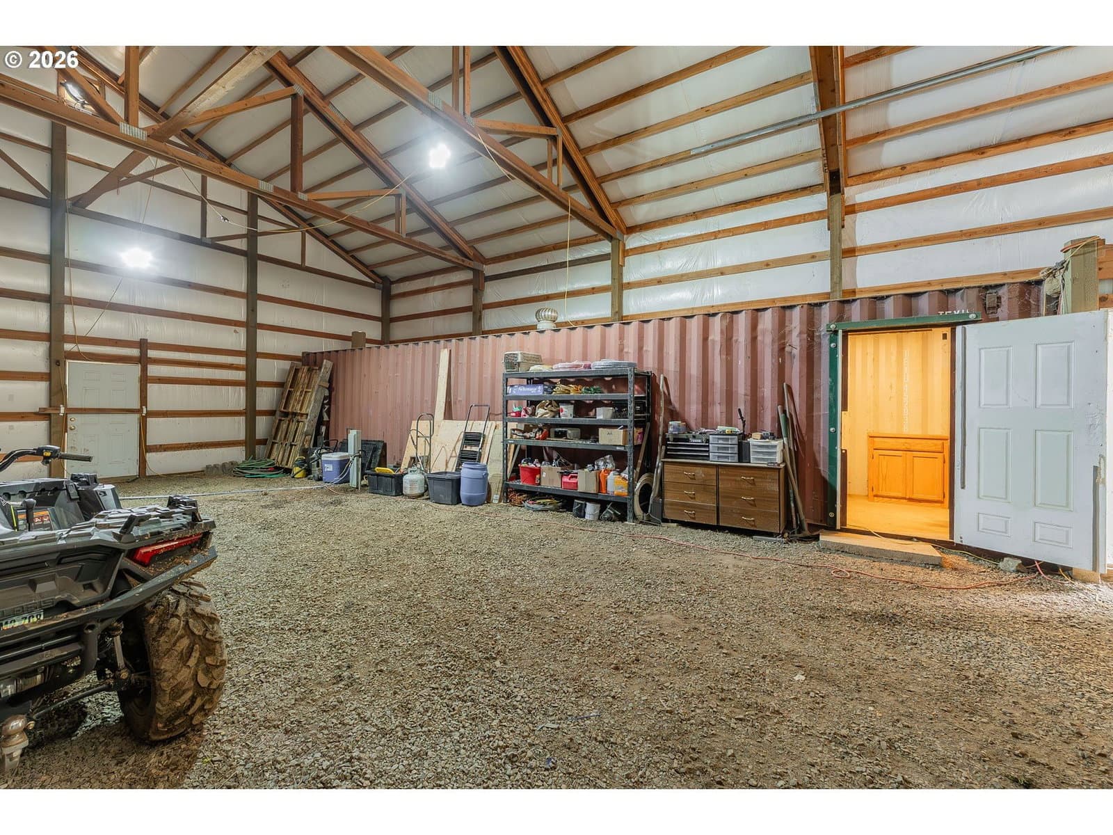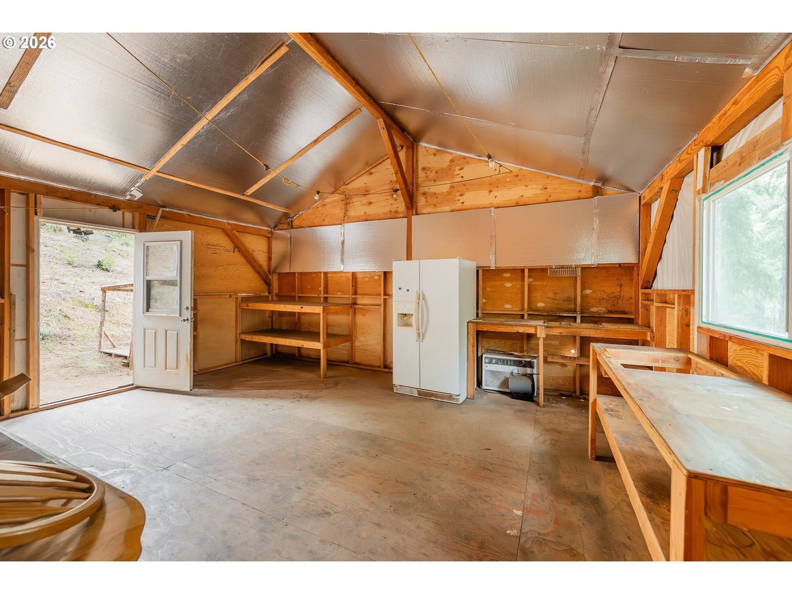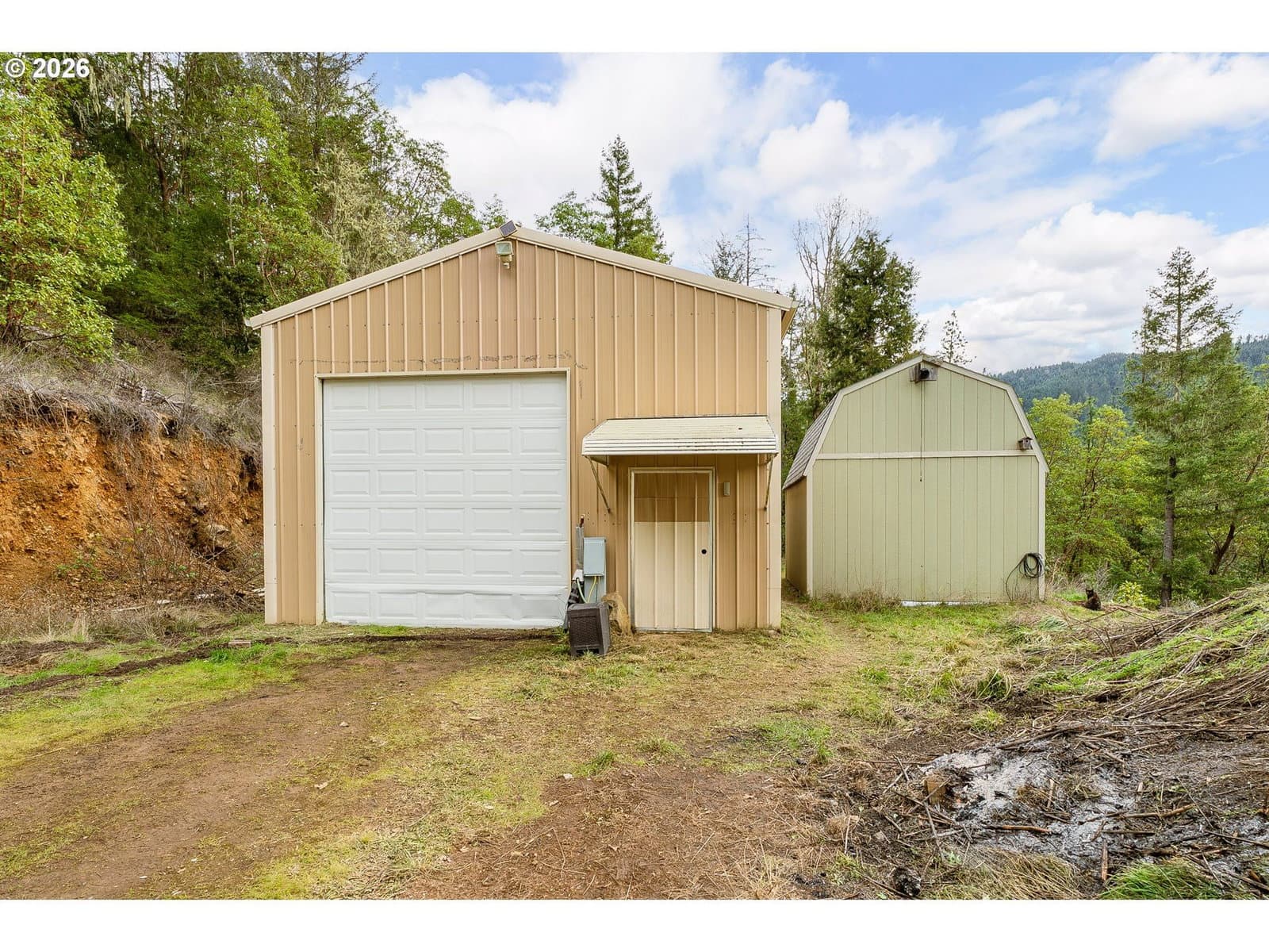 Set on a secluded, tree-covered acreage, this unique property offers privacy, versatility, and the rare advantage of being truly ready to build. Mature trees surround the homesite, creating a peaceful natural setting, while essential infrastructure — power, a well, and septic system — is already in place. The property includes two large shops, each equipped with power and water, providing exceptional workspace for projects, hobbies, or storage. A convenient kitchenette, sheds and unfinished wood-frame buildings add even more flexibility for customization and expansion. With ample room for RV, boat, or equipment storage, the layout is ideal for outdoor enthusiasts or anyone needing substantial utility space. Despite its private feel, the location offers easy access to recreation. Enjoy a short walk to the park, and reach the lake in just minutes, making fishing, boating, and year-round outdoor activities part of your everyday lifestyle. A rare opportunity to build, create, and enjoy — all on a beautifully secluded piece of land with infrastructure already in place. Schedule a private tour today! One shed has an attached kitchenette. Studio(s) may be converted to residential use by permit.