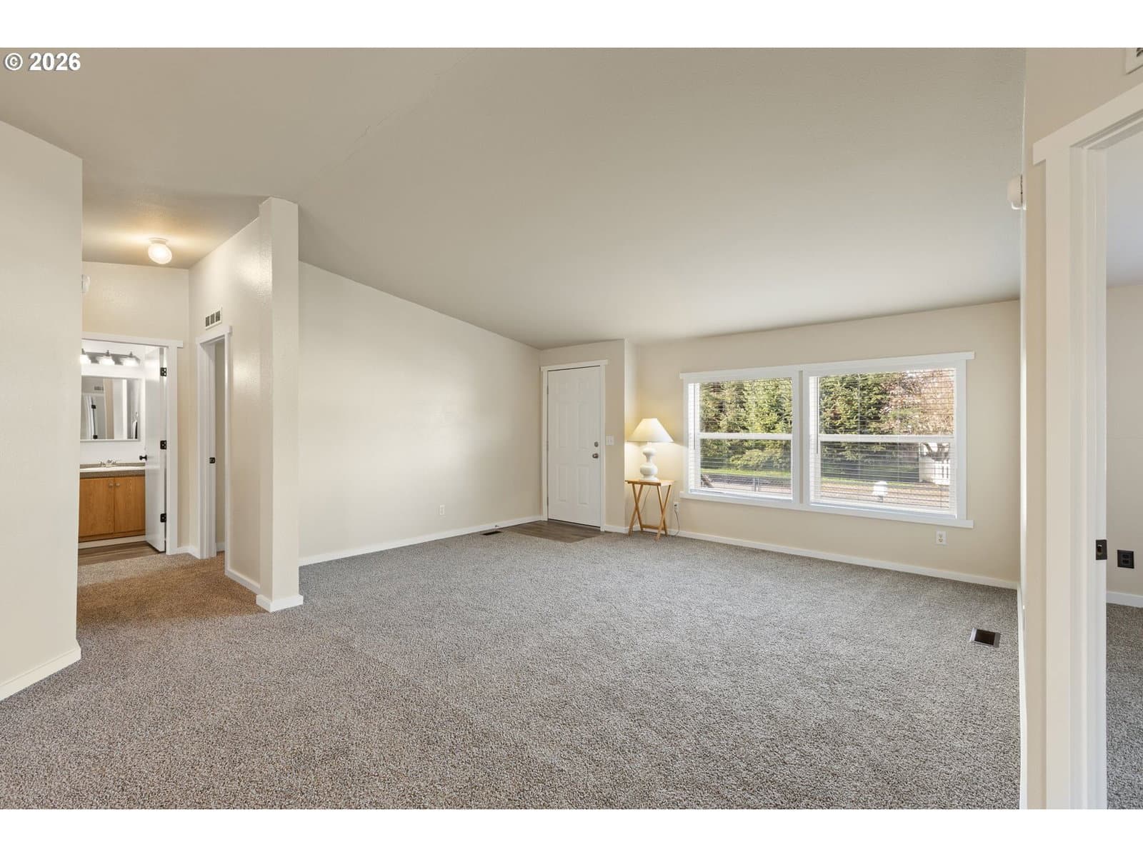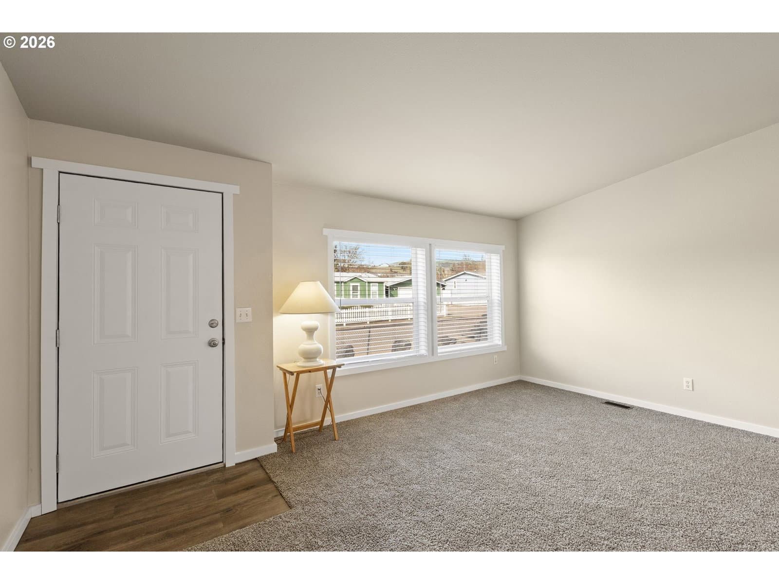 Beautifully updated double wide manufactured home on .47 acres with Roberts Creek frontage! This 3 bedroom, 2 bathroom, 1,296 sqft home offers comfort, privacy, and numerous recent upgrades including a brand-new roof, new interior paint, fresh exterior paint on the front, and brand new carpet throughout the main living areas and bedrooms. Seller is offering a one-year home warranty with an acceptable offer, providing added peace of mind.Thoughtfully designed landscaping enhances the home’s curb appeal and sets the tone for what’s inside. Step through the front door into a spacious living room that flows seamlessly into the dining area and a stunning kitchen featuring granite countertops, rich wood cabinetry, laminate flooring, and ample space for cooking and prep. The primary suite offers a nicely sized closet and a private en-suite bathroom complete with double sinks, laminate flooring, a relaxing garden soaking tub, and a step-in shower. The additional bedrooms are generously sized with ample closet space and fresh finishes. Just off the kitchen, you’ll find a convenient laundry area with washer and dryer included, storage racks, and an exterior door leading to the back deck. Step outside to your own private backyard retreat with mature landscaping, creek frontage, a hot tub, and a charming wooden swing—perfect for relaxing or entertaining. Front and backyard in-ground sprinklers make lawn care easy and efficient. The property also includes a large carport, abundant RV parking, and a powered shed ideal for storage, hobbies, or a workshop. Move-in ready and full of charm, this peaceful property offers privacy, space, and serenity. Don’t miss your opportunity to make it yours.