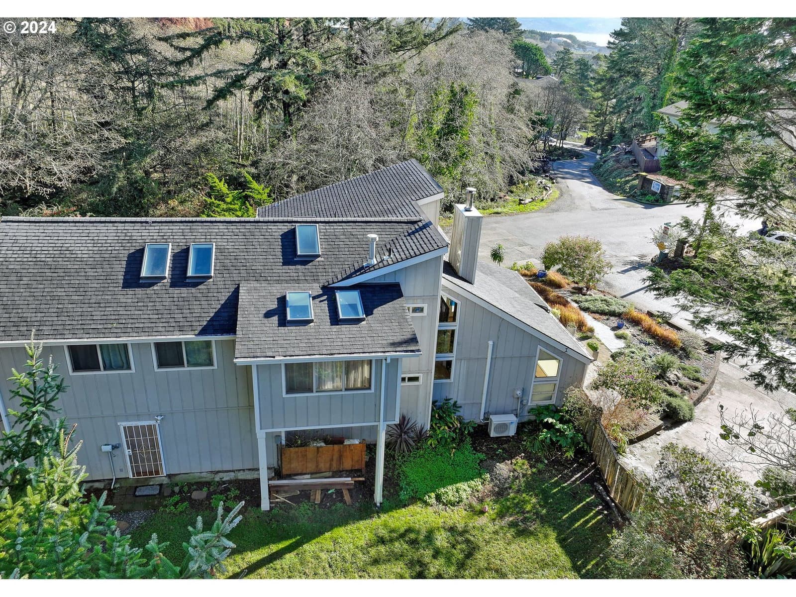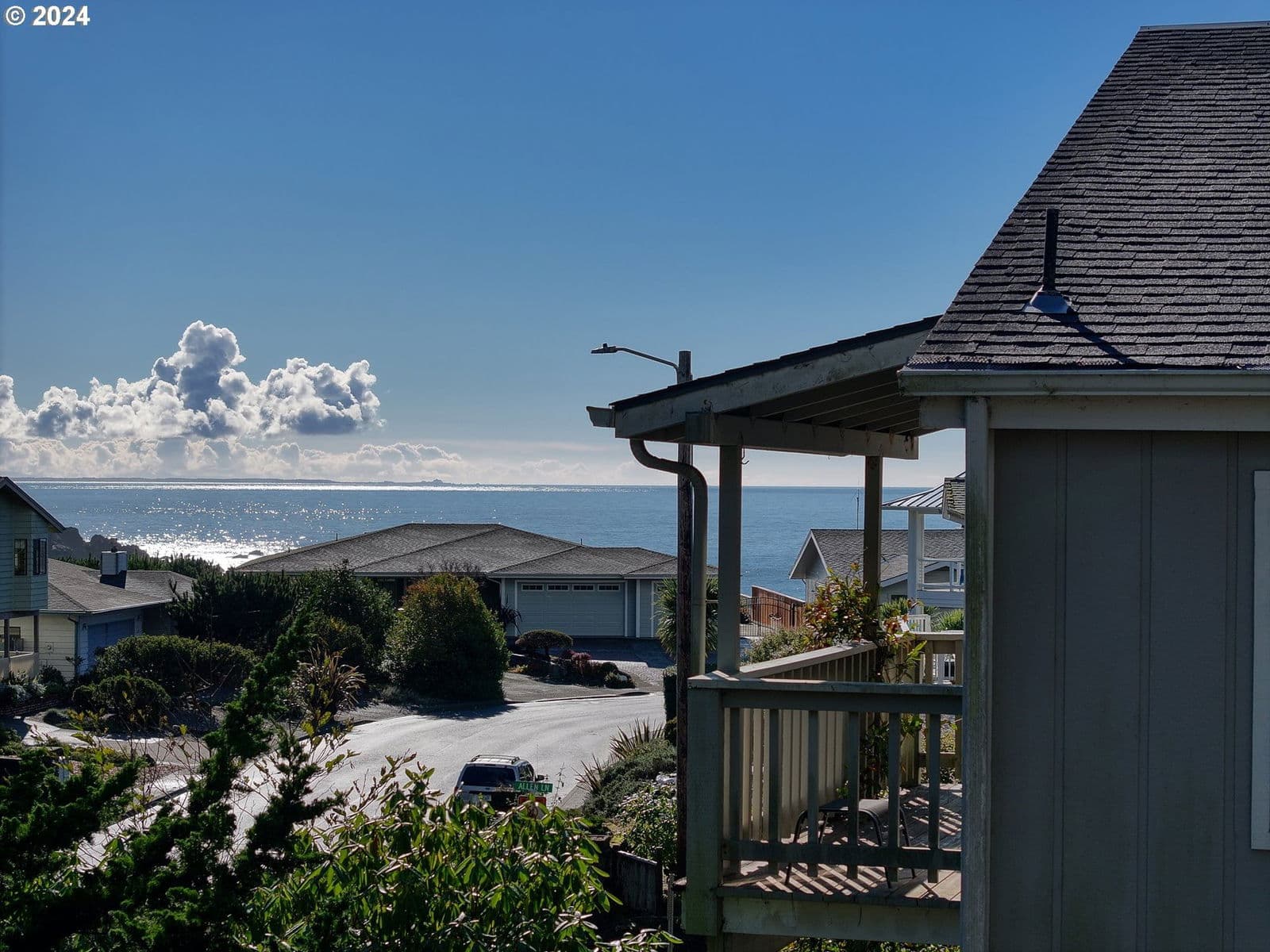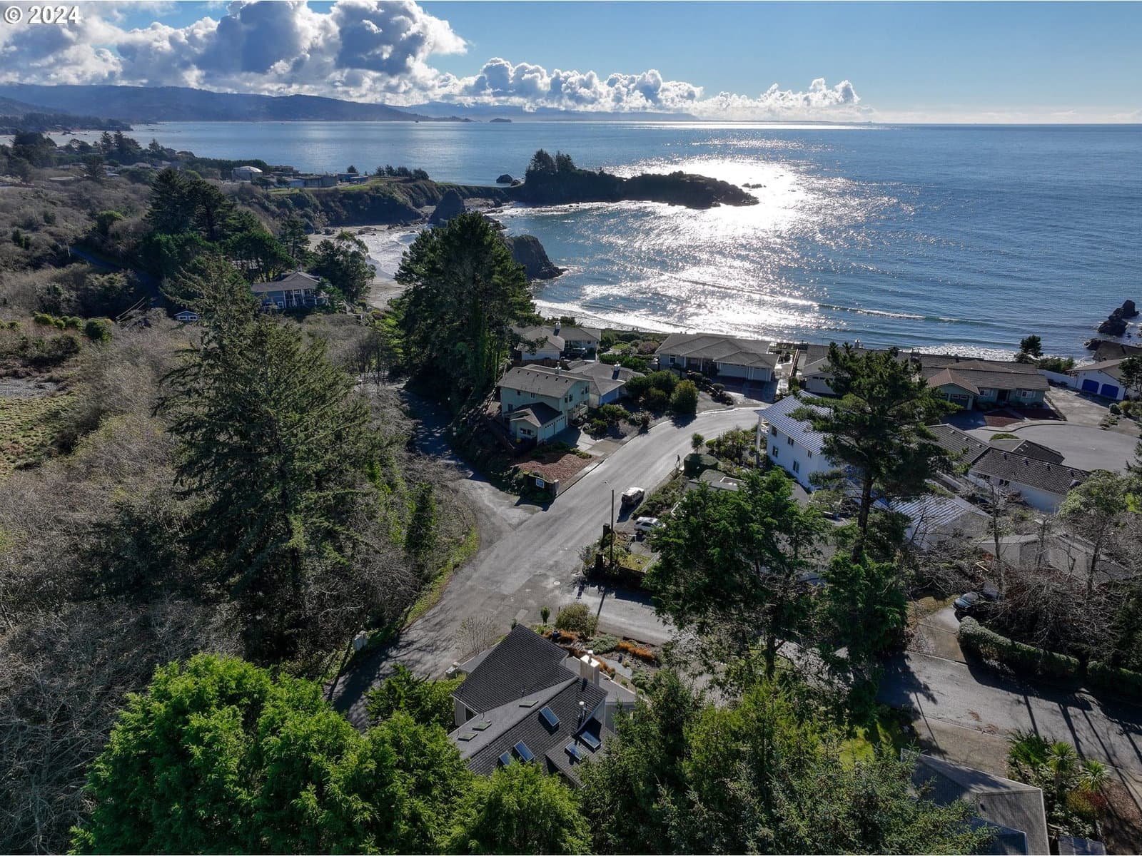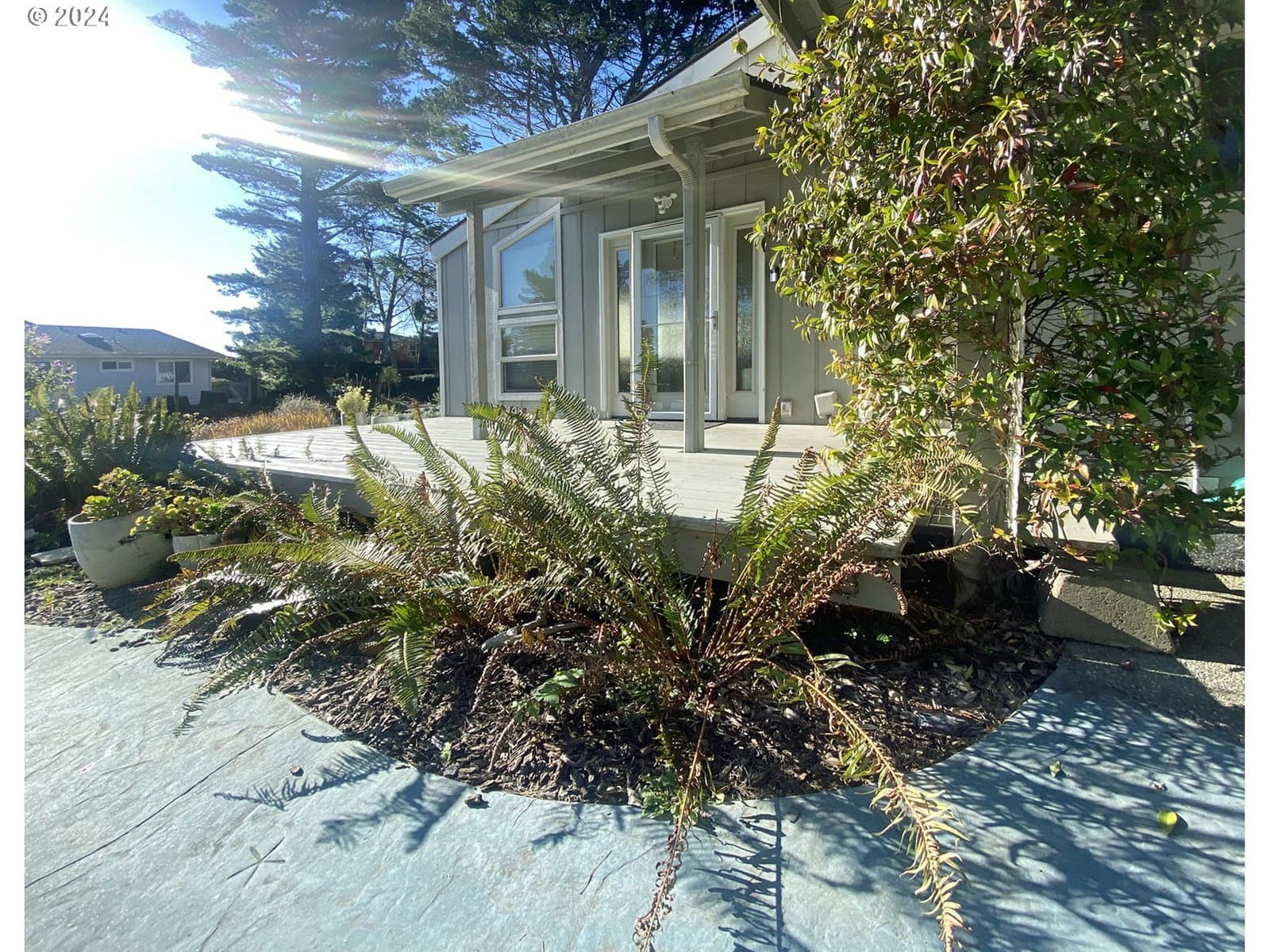 Stroll down the enchanting tree lined lane and explore the ever changing tidepools and beaches of magnificent Mill Beach from this stunning, contemporary, ocean view home with deeded beach access. The sky high ceilings of the main level are created to capture the sunshine, with walls of windows to the sea. On the ground level is the Kitchen, the living room with vaulted ceilings, massive ocean view windows, a cozy wood stove, a bedroom and a full bath. The kitchen features granite countertops, a new oven, stainless appliances and masses of gorgeous maple cabinets. Upstairs are two beautiful, oversized bedroom suites with skylights and ceiling fans. The huge owners suite is en-suite and includes an office, huge walk in closet and the bathroom has a big step-in shower. The second extra large upstairs suite has a beautiful ocean view deck and mini bar with a guest bath across the hallway. The spacious upstairs also has a Laundry room and a cozy family room with a gas stove. This magnificent artist's home is meticulously maintained and is exceptional for recreation, located at the top of Mill beach road with deeded beach access. In addition to a 2 car attached garage, there is a large additional parking driveway with a wide gate into the yard which could be used for private RV or boat storage. NO HOA. NO CC&R's. Shown by appointment only.
