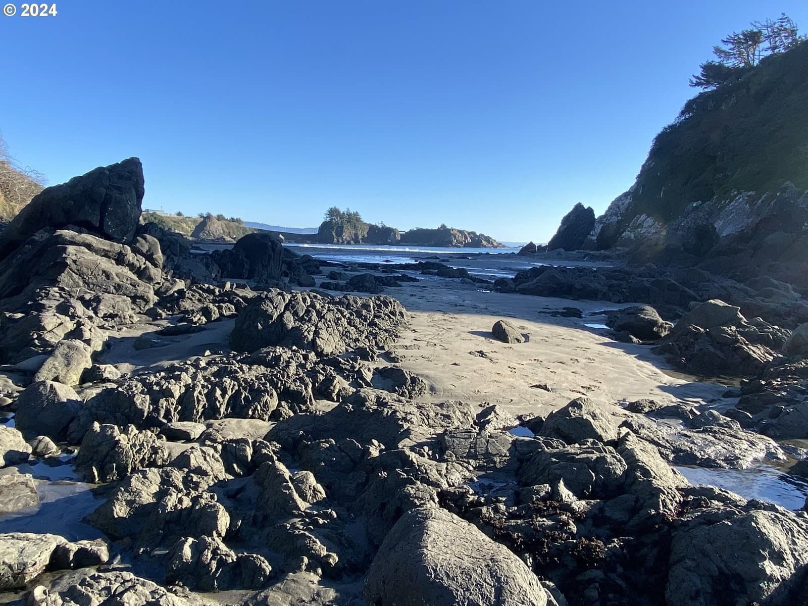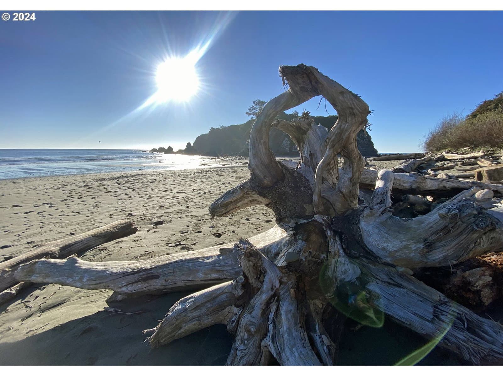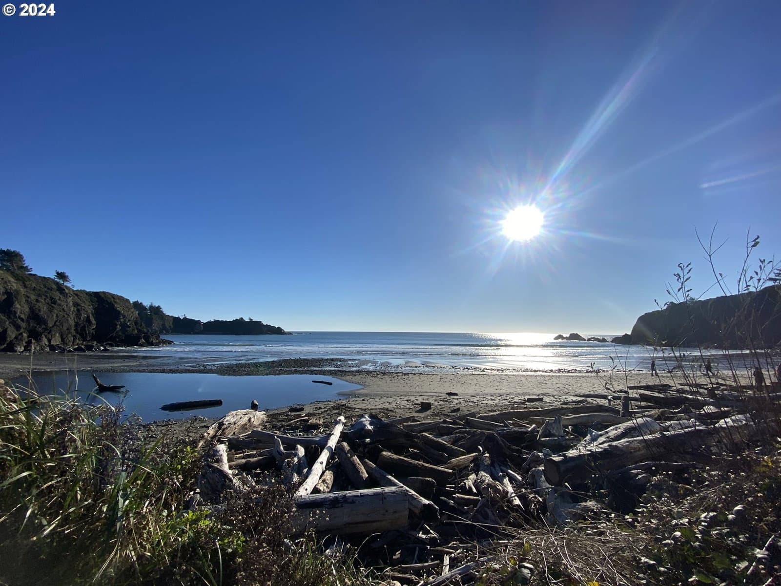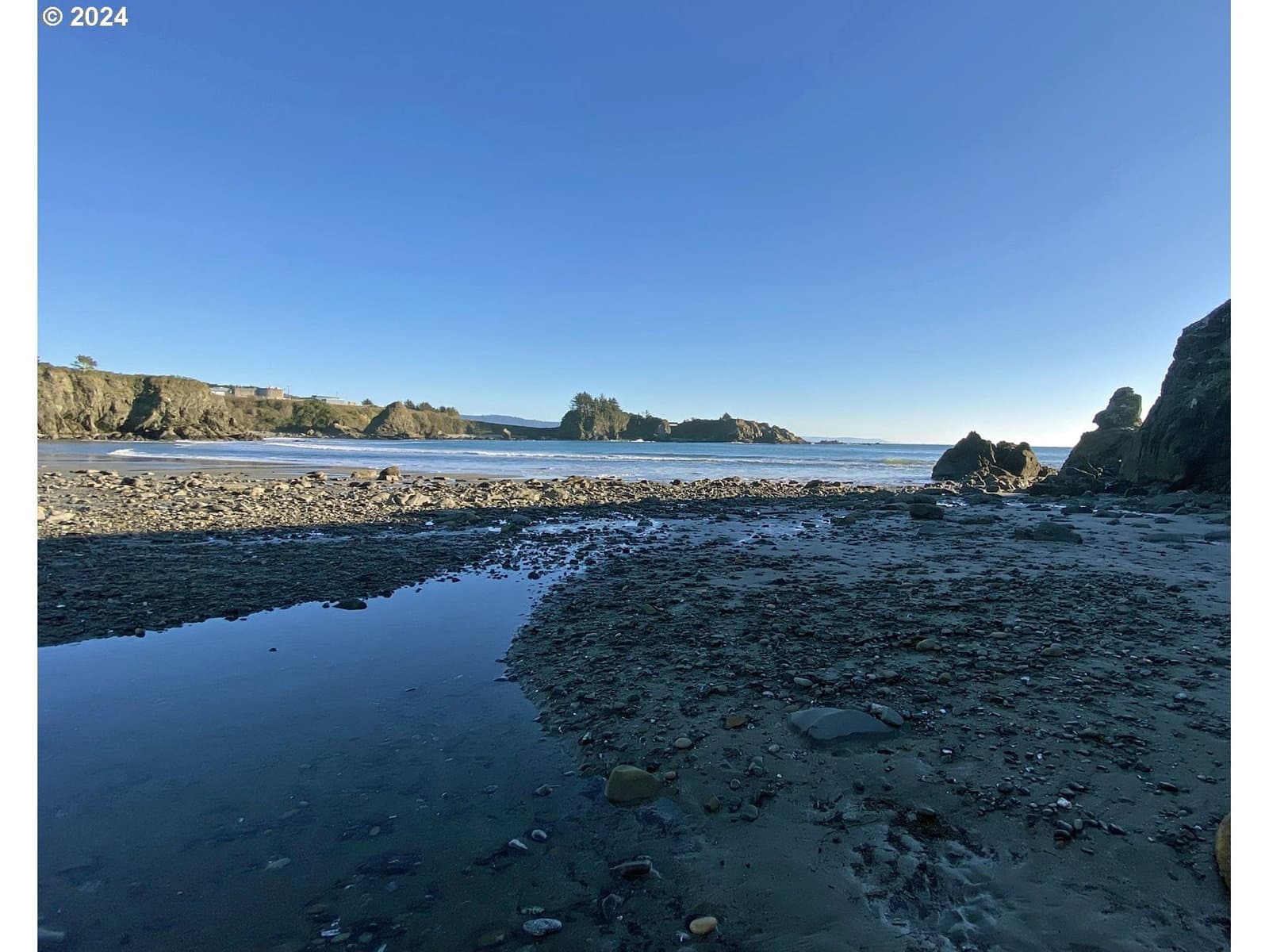 Stroll down the enchanting tree lined lane and explore the ever changing tidepools and beaches of magnificent Mill Beach from this stunning, contemporary, ocean view home with deeded beach access. The sky high ceilings of the main level are created to capture the sunshine, with walls of windows to the sea. On the ground level is the Kitchen, the living room with vaulted ceilings, massive ocean view windows, a cozy wood stove, a bedroom and a full bath. The kitchen features granite countertops, a new oven, stainless appliances and masses of gorgeous maple cabinets. Upstairs are two beautiful, oversized bedroom suites with skylights and ceiling fans. The huge owners suite is en-suite and includes an office, huge walk in closet and the bathroom has a big step-in shower. The second extra large upstairs suite has a beautiful ocean view deck and mini bar with a guest bath across the hallway. The spacious upstairs also has a Laundry room and a cozy family room with a gas stove. This magnificent artist's home is meticulously maintained and is exceptional for recreation, located at the top of Mill beach road with deeded beach access. In addition to a 2 car attached garage, there is a large additional parking driveway with a wide gate into the yard which could be used for private RV or boat storage. NO HOA. NO CC&R's. Shown by appointment only.