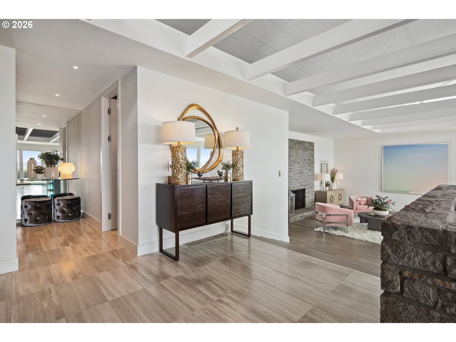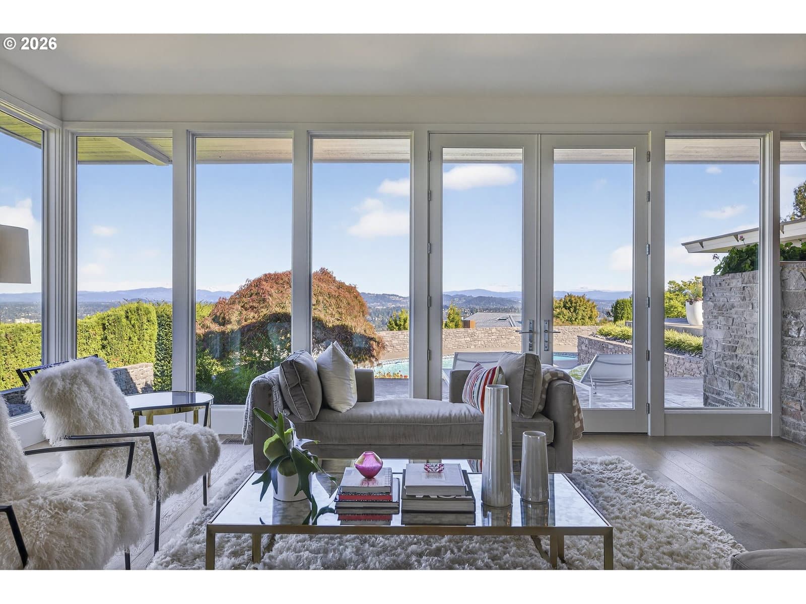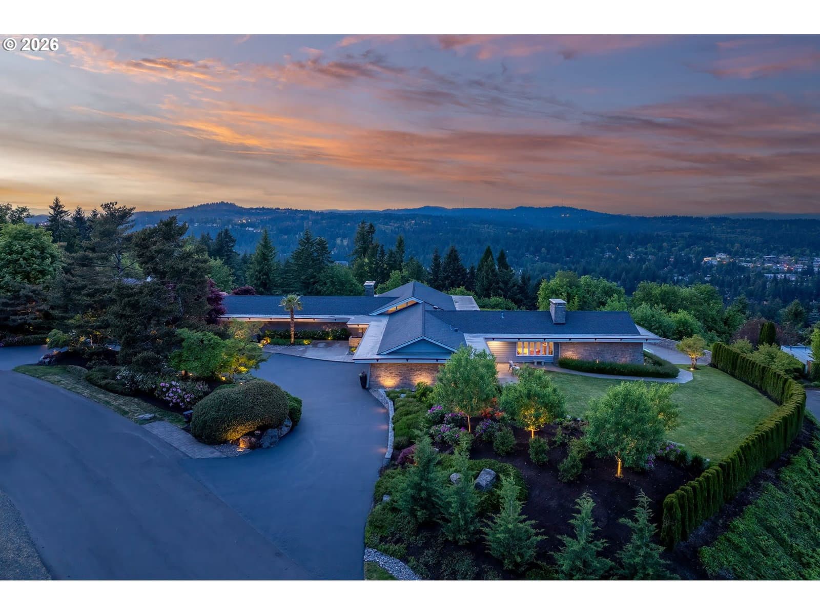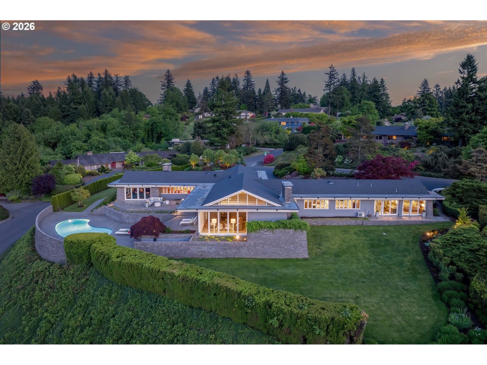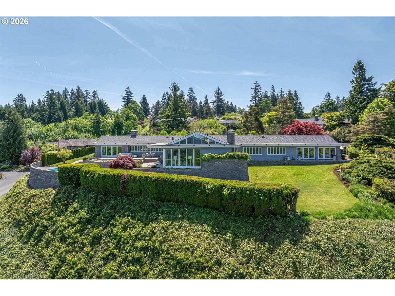 A one-of-one Architectural Offering with Panoramic Mountain & Willamette River Views. Perched high in Lake Oswego’s coveted Skylands neighborhood this extraordinary mid-century modern estate represents a rare opportunity to own a true legacy property in the Pacific Northwest. Set on a private & manicured .92-acre parcel, the residence captures breathtaking panoramic vistas that stretch across the region’s most iconic landscapes. From its expansive living spaces, sweeping views unfold across the Willamette River & surrounding valleys to the majestic peaks of Mt. Hood, Mt. St. Helens, and Mt. Adams, a constantly shifting canvas of river, sky, and mountains. Originally constructed in 1966, the home has been thoughtfully reimagined through a meticulous multi-million-dollar renovation that honors its Mid-Century Modern and Northwest Regional architectural heritage while seamlessly integrating the comforts and sophistication of contemporary luxury living. Spanning 4,755 square feet of primarily single-level living, the residence offers three bedrooms and four-and-a-half baths, with interiors designed to frame the extraordinary natural surroundings at every turn. Walls of glass invite natural light throughout the home while creating an effortless connection between indoor living and the dramatic landscape beyond. The exterior is wrapped in St. Helens stone grounding the home in its Pacific Northwest setting while making a bold architectural statement. Gently angled walls appear to reach toward the horizon, complemented by distinctive copper roof flashing with a diamond motif, a subtle yet remarkable detail that speaks to the home’s craftsmanship and thoughtful design. More than a residence, this is a property defined by place, provenance, and permanence, a home that celebrates its architectural legacy while offering an extraordinary setting for the next chapter of ownership.In a neighborhood known for its prestige and privacy, opportunities like this rarely come to market.