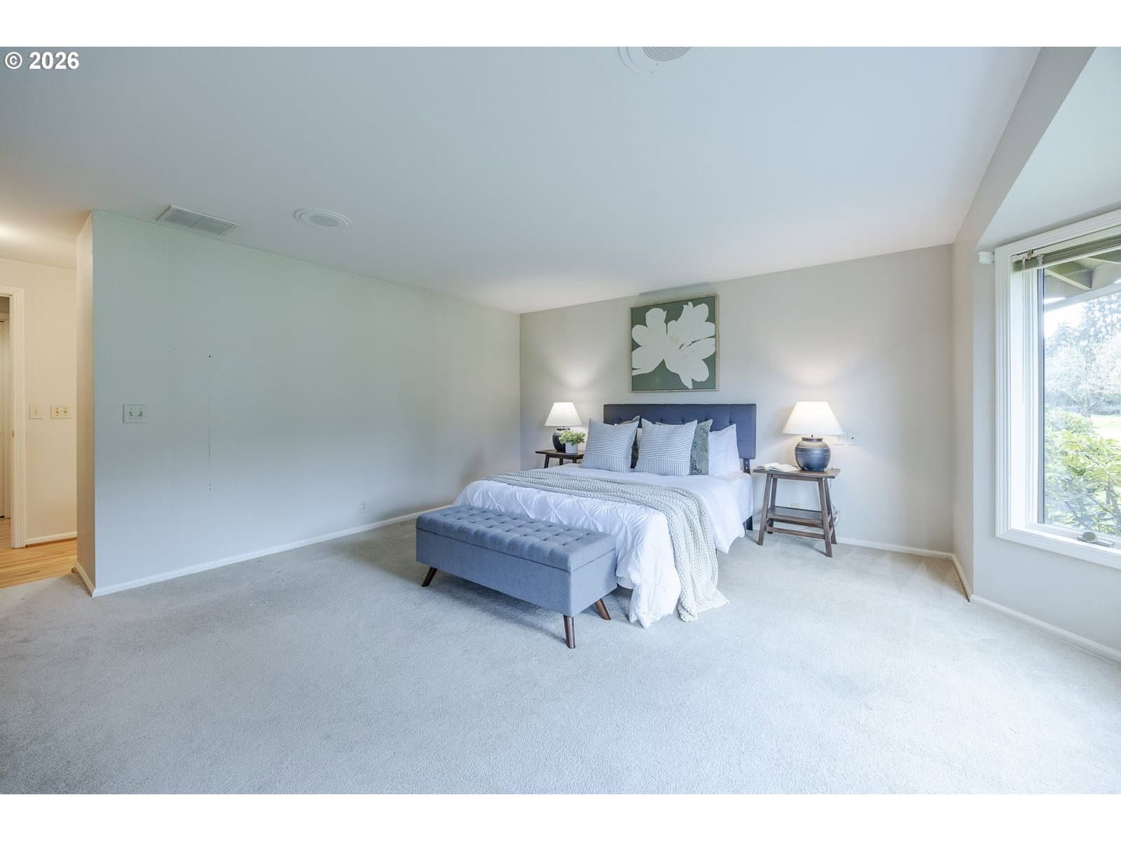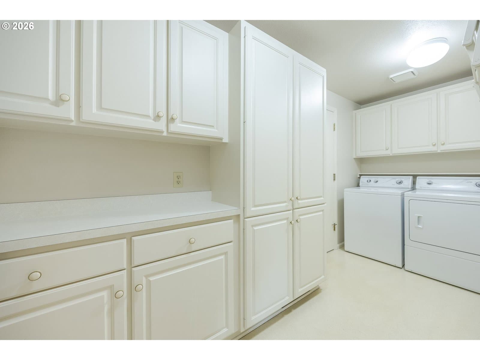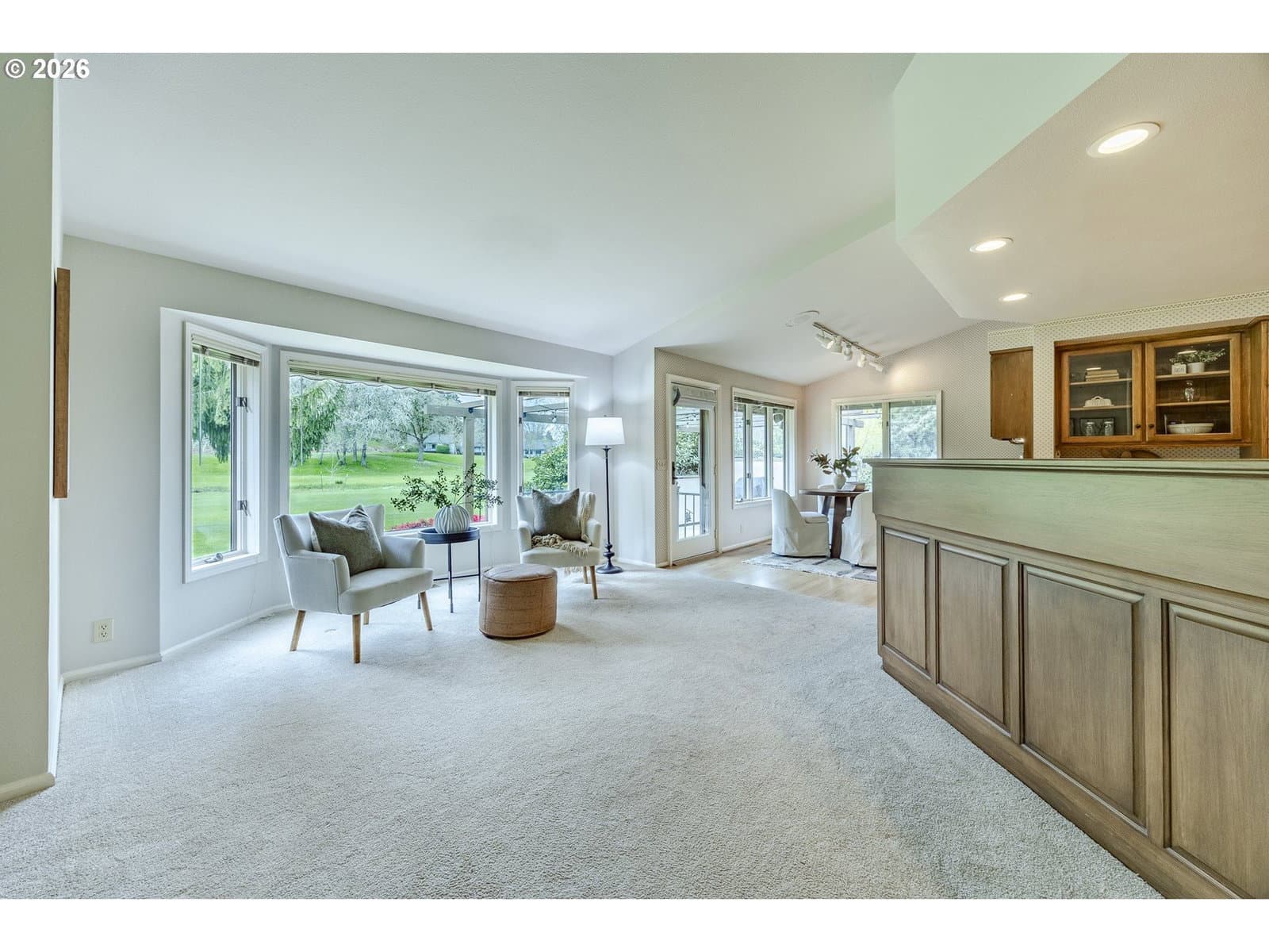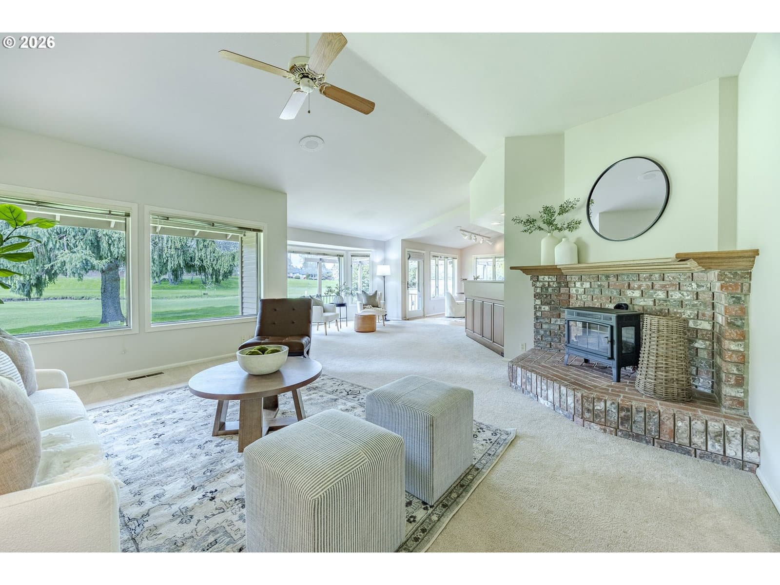 Welcome to this beautifully maintained Spyglass home in the heart of Eugene, perfectly situated on the Oakway Golf Course. This light-filled home features an open layout with large windows that capture stunning golf course views and abundant natural light throughout. The spacious primary suite offers direct patio access and an oversized ensuite bath with dual sinks, walk-in closet, walk-in shower, and generous storage. The kitchen flows seamlessly into the dining area and out to the patio—ideal for entertaining or enjoying peaceful outdoor living. Two additional bedrooms and a full bathroom provide flexibility for guests, office space, or hobbies. Additional highlights include a dedicated laundry room with access to the oversized, extra-deep two-car garage, complete with attic access and built-in storage. Enjoy the lovely landscaped, low-maintenance yard, all just minutes from Oakway Center, parks, and local dining. Comfort, convenience, and scenic living all in one exceptional home!