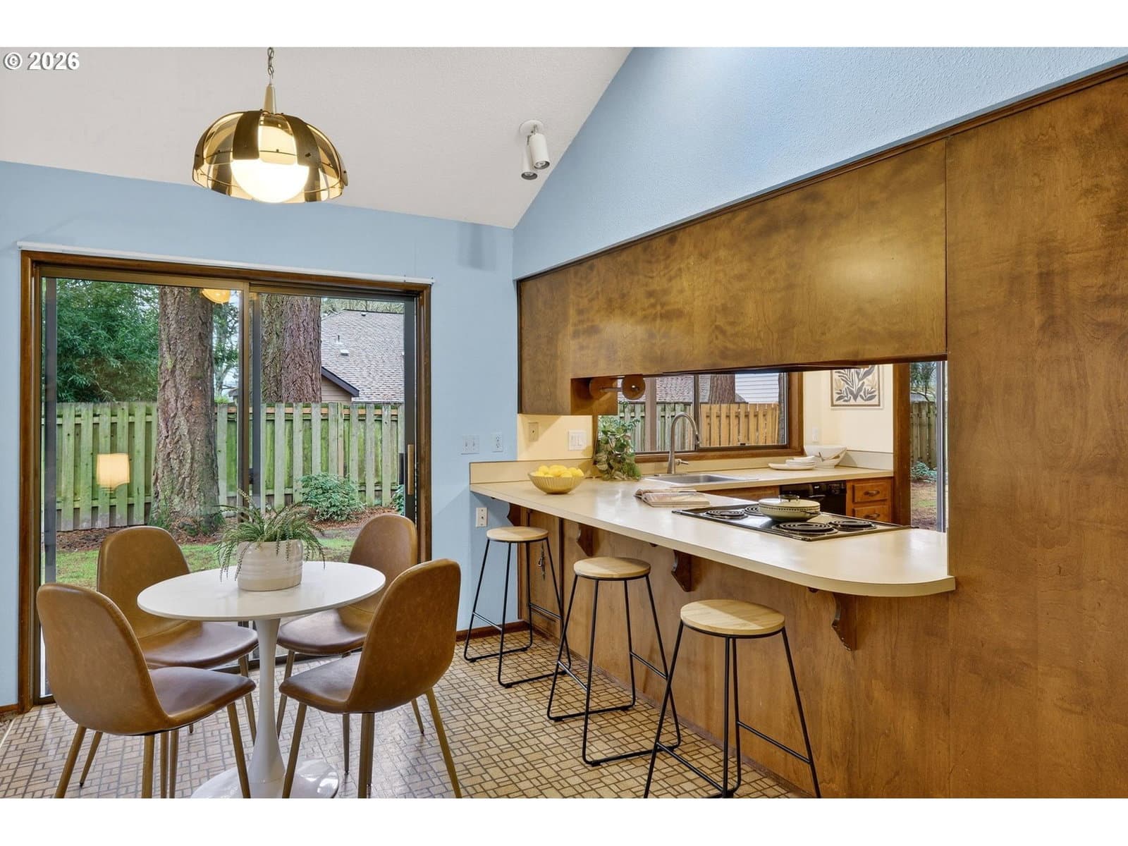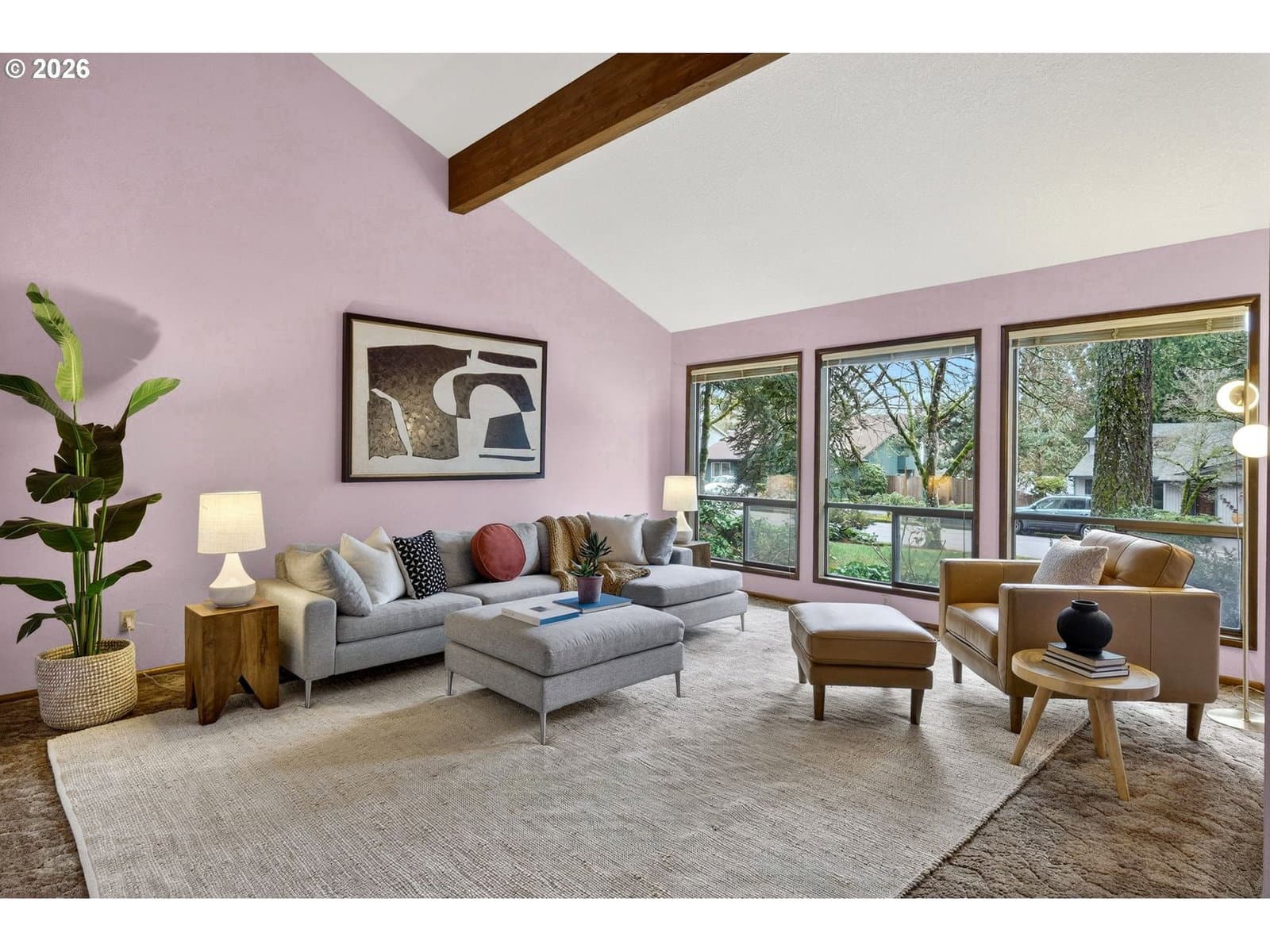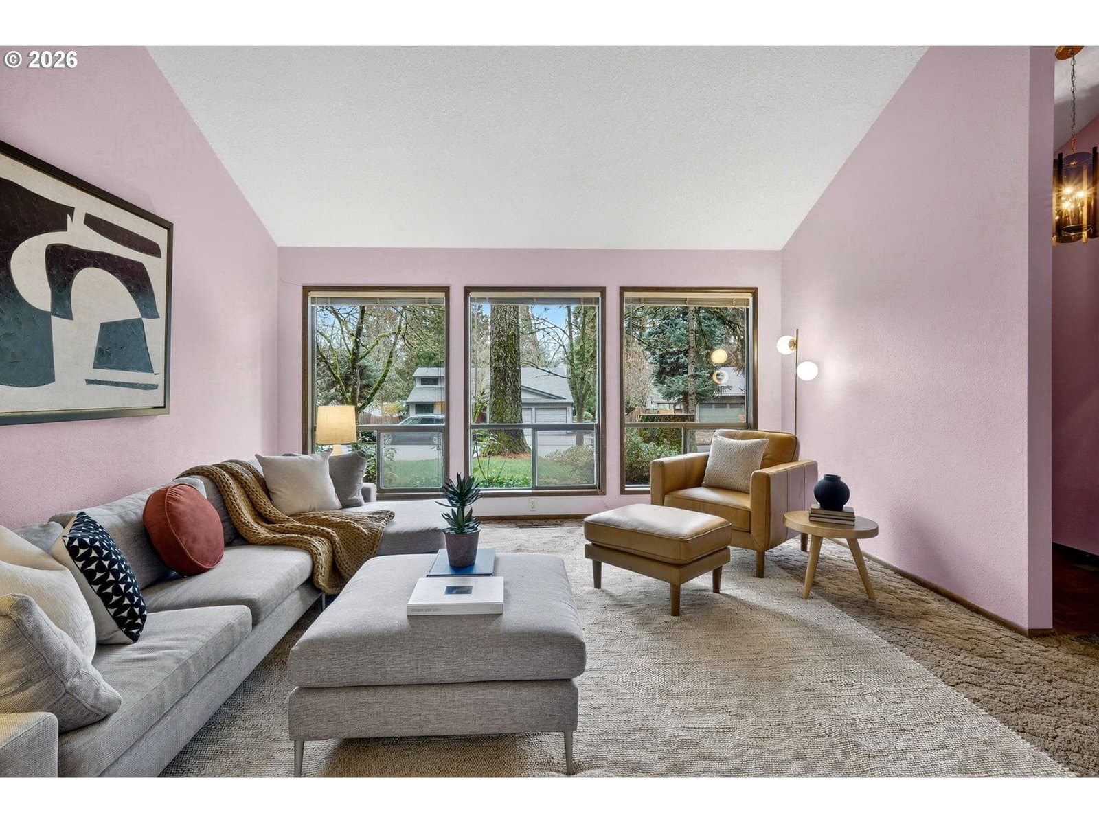*OPEN SAT & SUN 2/7 & 2/8 FROM 11 AM - 1 PM* What an incredible opportunity all with a NEW ROOF! South Beaverton contemporary tucked into a well-established neighborhood near parks, trails, Conestoga Recreation Center, and Hiteon Park & Elementary. A welcoming entry opens to a lofted living room room with vaulted ceilings, exposed beams, and a wall of windows that fills the home with natural light. The dining room connects to the kitchen and slides open to the patio, for effortless indoor/outdoor flow to the fenced yard. The charming kitchen offers a pantry, eat-in bar, and convenient access to the two-car garage. A cozy vaulted family room is also adjacent to the kitchen. Main-floor living includes 3 carpeted bedrooms, a hall bathroom with a tub/shower combo, and a laundry room with exterior access. Upstairs, the spacious primary suite boasts dual closets and an ensuite with shower, double sinks, a vanity station, while an open loft office opens to a private deck. The backyard features a covered patio, sunny upper deck, fenced yard, and mature landscaping for privacy and charm. Less than a mile away, the THPRD Conestoga Recreation Center offers a dance and fitness room (Zumba, yoga, tai chi), weight room, four multi-purpose classrooms, two gymnasiums with wooden floors, an outdoor playground, two swimming pools, and a seasonal splash pad. Community events include “Dive-in Movies,” Sunday Fundays, and more.