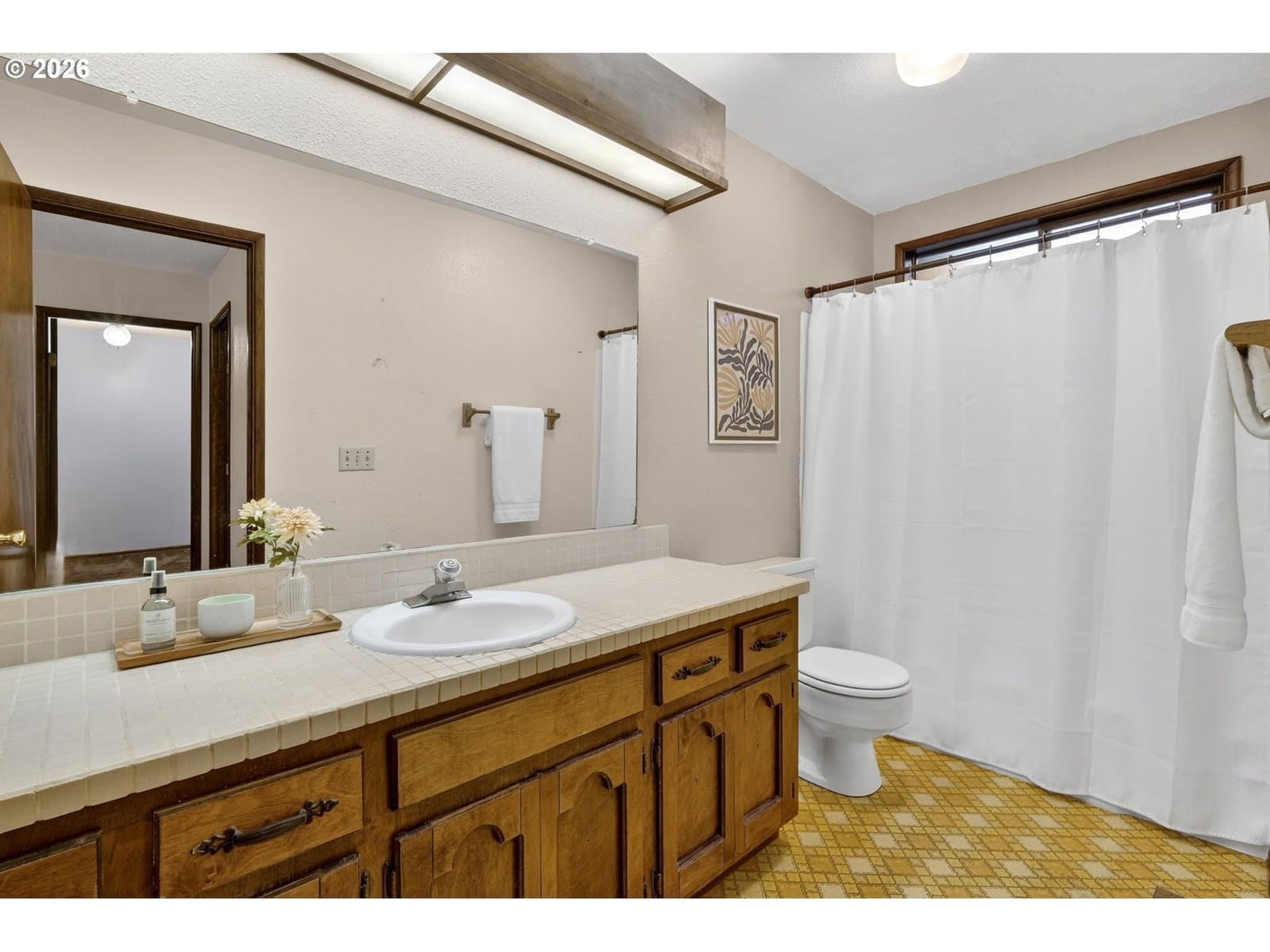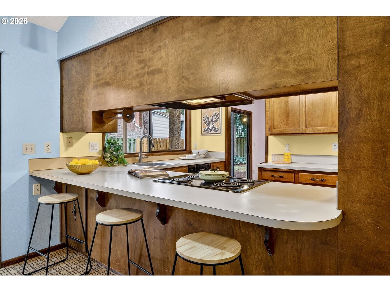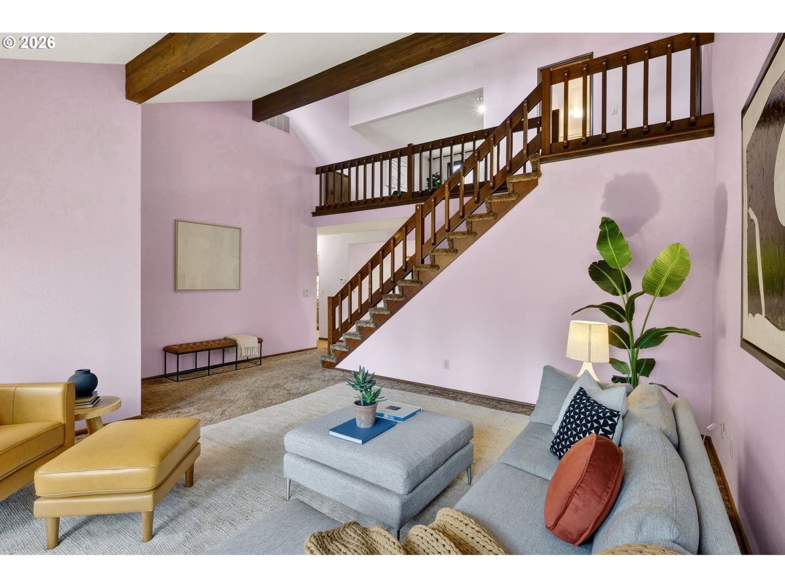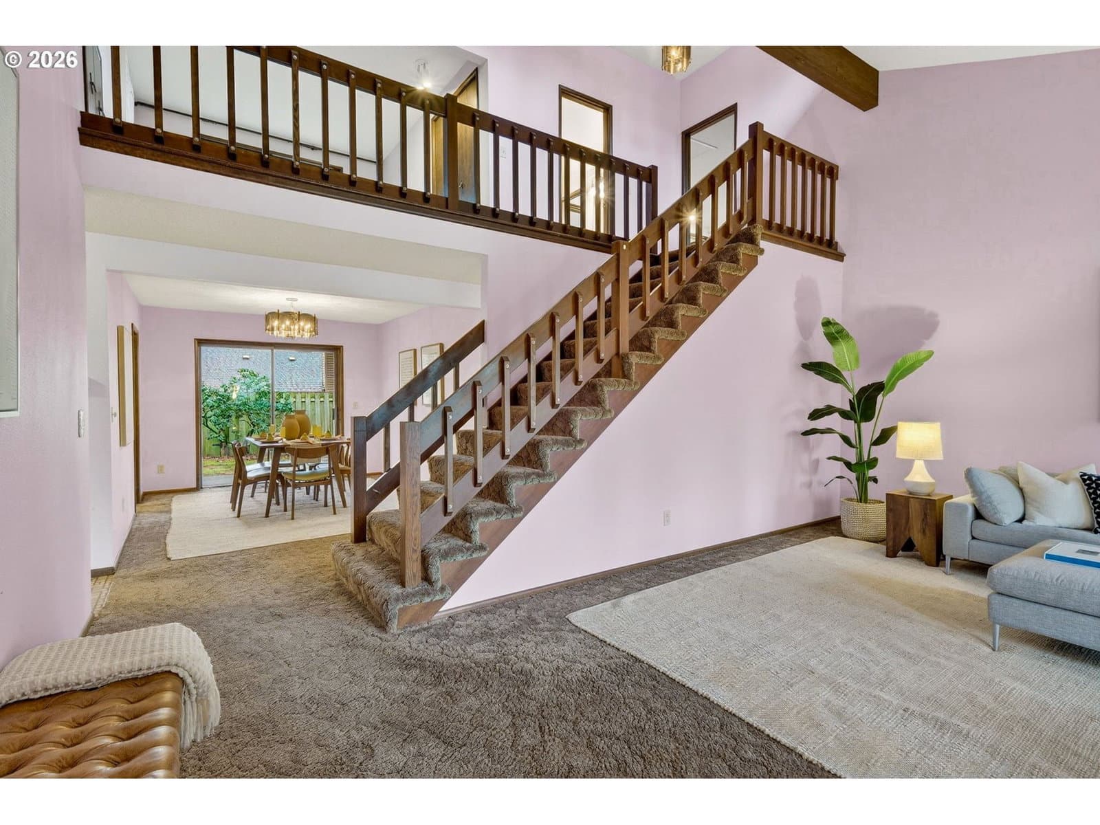 *OPEN SAT & SUN 2/7 & 2/8 FROM 11 AM - 1 PM* What an incredible opportunity all with a NEW ROOF! South Beaverton contemporary tucked into a well-established neighborhood near parks, trails, Conestoga Recreation Center, and Hiteon Park & Elementary. A welcoming entry opens to a lofted living room room with vaulted ceilings, exposed beams, and a wall of windows that fills the home with natural light. The dining room connects to the kitchen and slides open to the patio, for effortless indoor/outdoor flow to the fenced yard. The charming kitchen offers a pantry, eat-in bar, and convenient access to the two-car garage. A cozy vaulted family room is also adjacent to the kitchen. Main-floor living includes 3 carpeted bedrooms, a hall bathroom with a tub/shower combo, and a laundry room with exterior access. Upstairs, the spacious primary suite boasts dual closets and an ensuite with shower, double sinks, a vanity station, while an open loft office opens to a private deck. The backyard features a covered patio, sunny upper deck, fenced yard, and mature landscaping for privacy and charm. Less than a mile away, the THPRD Conestoga Recreation Center offers a dance and fitness room (Zumba, yoga, tai chi), weight room, four multi-purpose classrooms, two gymnasiums with wooden floors, an outdoor playground, two swimming pools, and a seasonal splash pad. Community events include “Dive-in Movies,” Sunday Fundays, and more.
