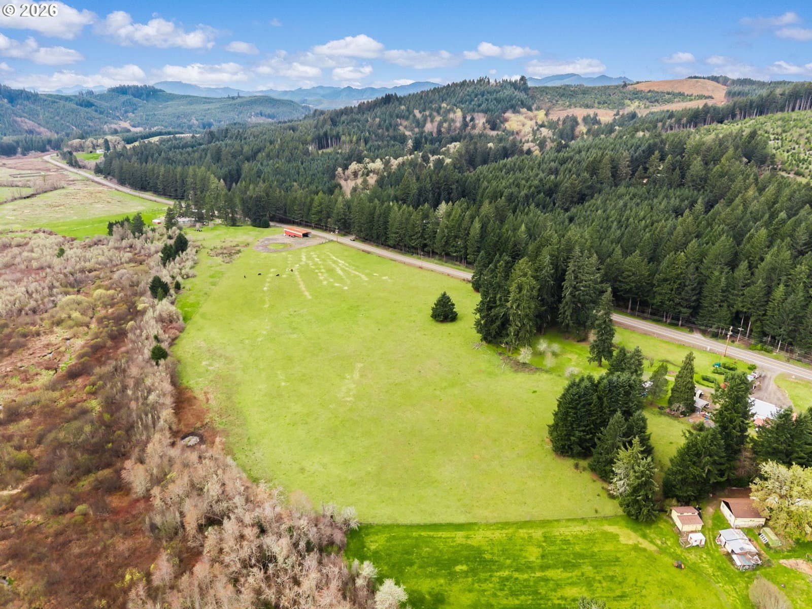 16.13 acres of usable pasture land in Cheshire with EFU (Exclusive Farm Use) zoning. The property features flat to gently sloped terrain, offering excellent functionality for agricultural use, livestock, or development of a primary residence consistent with EFU guidelines. Fenced on three sides, the land is well-suited for a variety of farming or rural living applications.The setting is picturesque, offering a private and peaceful environment with scenic mountain views and open space, ideal for those seeking a true country lifestyle while maintaining proximity to town. Toward the back of the property, a pond sits tucked into the trees, adding to the natural beauty and character of the land. Improvements include an approximately 100x40 metal barn with concrete floor, enclosed on three sides. This structure provides flexibility for hay and equipment storage, livestock shelter, or potential conversion to a shop or additional utility space. Conveniently located approximately 15 minutes to West Eugene and 10 minutes to Junction City, allowing for easy access to shopping, dining, and major routes while enjoying the benefits of rural acreage. Buyer to perform due diligence regarding EFU zoning requirements, buildability, permitted uses, and utility availability.