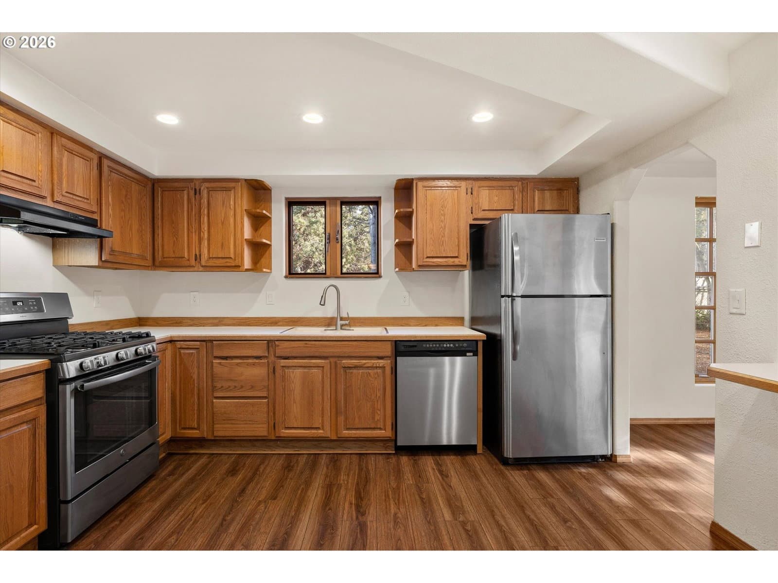 Welcome to your new single-level sanctuary in the heart of the coveted Tanglewood neighborhood of Bend! Nestled on a quiet cul-de-sac, this well-maintained home offers a perfect blend of comfort, convenience and outdoor freedom. Approx. 1,260 sq ft of interior living space, giving you an efficient yet comfortable footprint. Three bedrooms and 2 full baths conveniently located on one level for ease and accessibility. This home sits on a generous approximate 7,000 sq ft lot, giving you a rare combination of single-level ease and outdoor space. Spacious 2-car attached garage, plus driveway and additional RV parking space perfect for water/snow toys, additional vehicles or gear storage. The fully fenced backyard features include raised garden beds, a tool/hobby shed, level lot ideal for gardeners, hobbyists and pets. If you’ve been searching for a one-level home in Bend that offers location, flexibility and outdoor space, look no further. This is your opportunity to plant roots in a community that’s growing, while still enjoying a home in a quiet established neighborhood that feels like a retreat. 2018: New roof, water heater, stove, refrigerator, new floors throughout, new toilets, and bathroom vanities. 2021-2022: Furnace, New light fixtures, ceiling fans, can lights, new cedar deck, and Trex front walkway. 2025: paint living and dining room, kitchen and hall, and partial exterior.