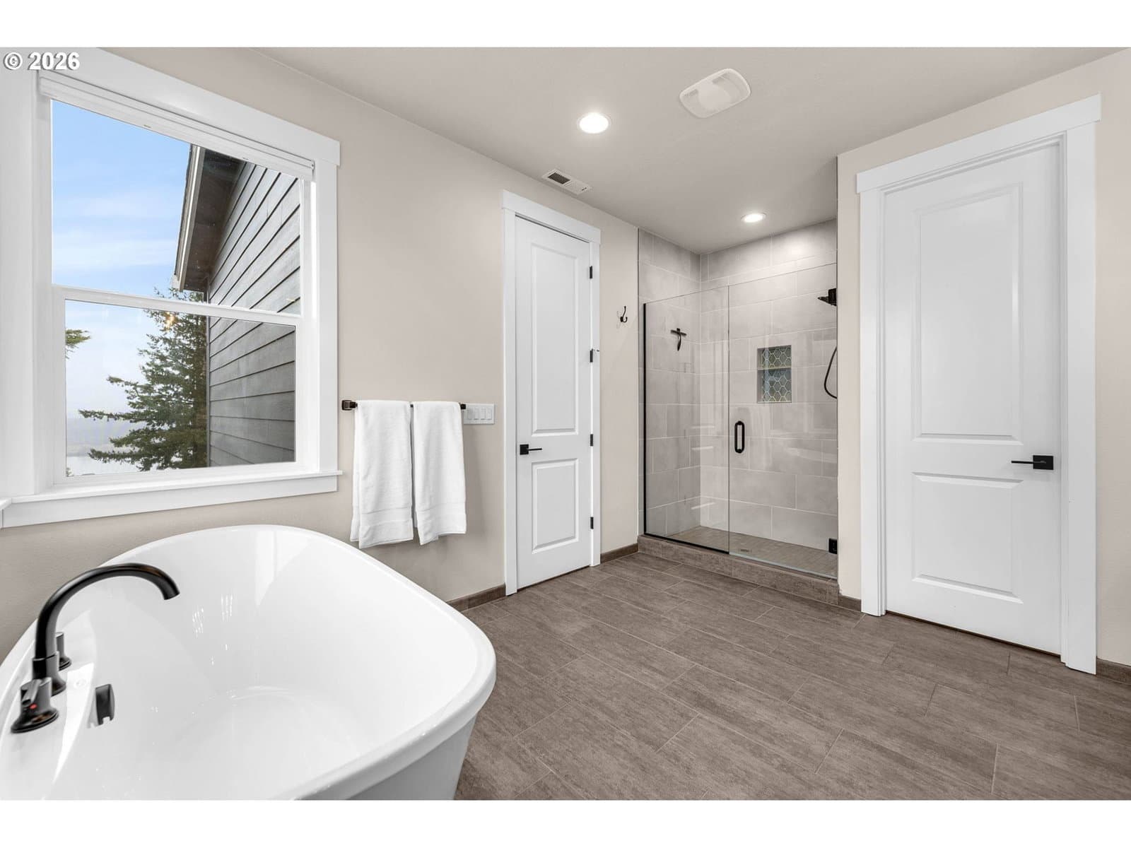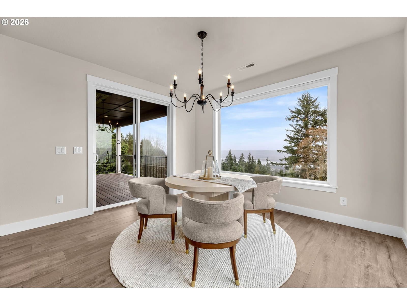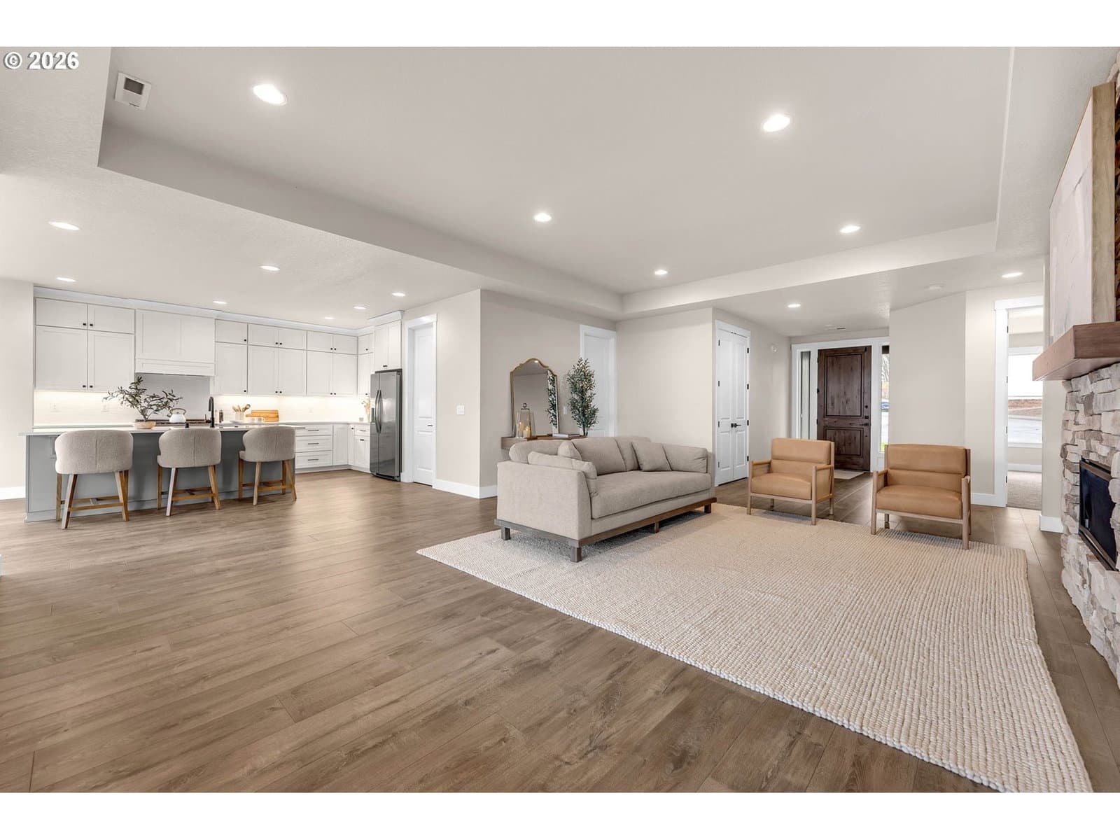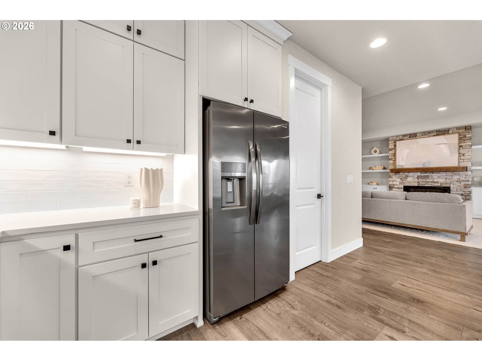 Perched within River Watch Estates, this exceptional single-level residence captures sweeping Columbia River views from the entire western side of the home. Expansive windows frame a constantly changing landscape where ships move quietly along the river, morning light reflects across the water, and evenings end with spectacular sunsets stretching across the horizon. The view is expansive, calming, and ever-changing — a daily reminder of why this vantage point is so special.The home was thoughtfully designed so the primary living spaces fully embrace the setting. The kitchen, dining, and living areas flow seamlessly together, creating an open and comfortable environment ideal for both everyday living and entertaining. A spacious kitchen with quartz surfaces, a gas range, and a walk-in pantry offers both style and functionality, while the living room’s cultured stone fireplace with built-in cabinetry and open shelving provides a warm and inviting focal point.Wide-plank flooring and a soft neutral palette carry throughout the home, allowing the natural light and the river views to take center stage. Electronic blinds provide privacy and shade when needed while still allowing the home to remain bright and connected to the landscape outside.The primary suite offers a relaxing retreat with a soaking tub, glass shower enclosure, and an oversized walk-in closet designed for comfort and convenience.Set on a generous corner lot, the property offers the presence of outdoor space while remaining beautifully low maintenance. The yard has been intentionally designed to minimize upkeep, allowing more time to enjoy the surroundings rather than spend weekends maintaining them. The covered composite deck with overhead heaters extends the living space outdoors, creating the perfect place to unwind while taking in the river, watching passing ships, or enjoying the dramatic western sunsets.Directly across the way, Horizon Park. Vacation where you live right here in Kalama.