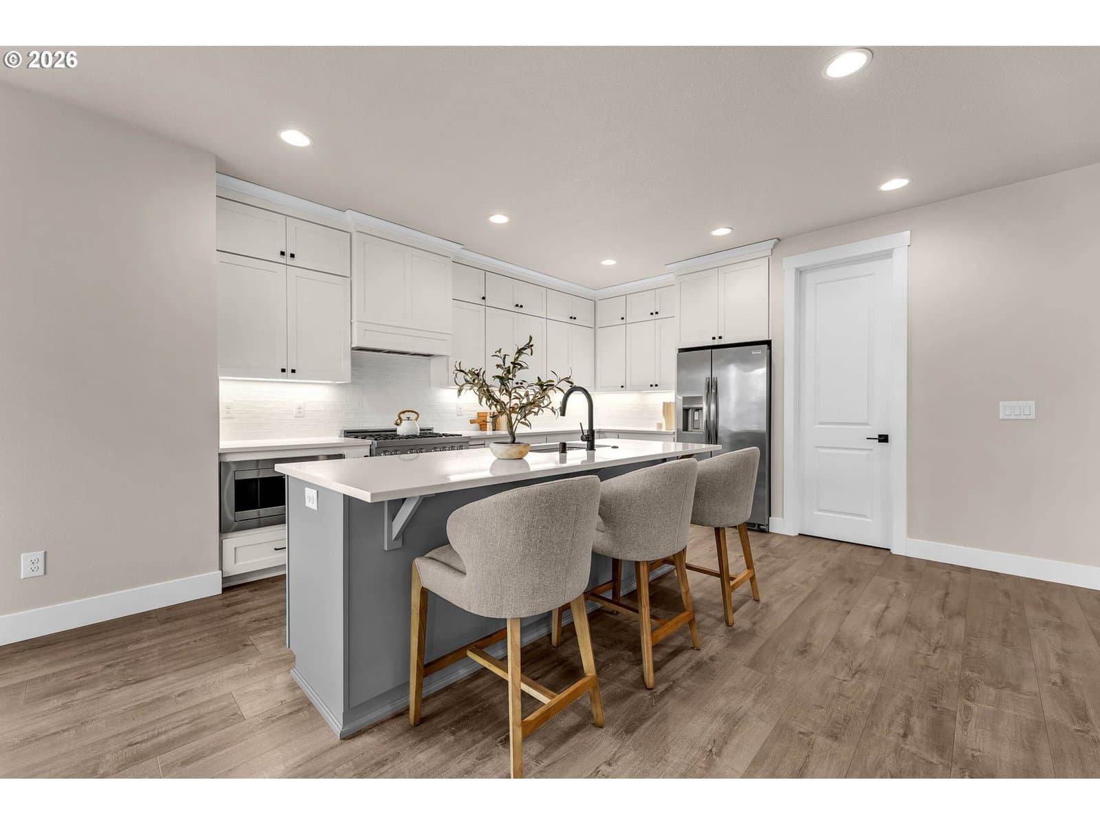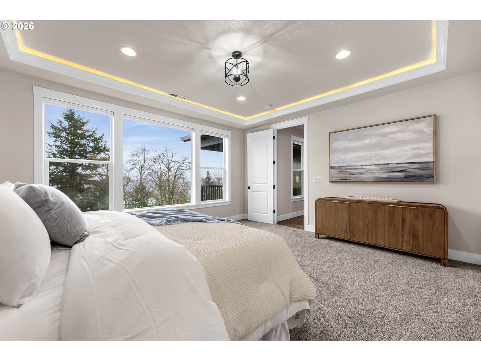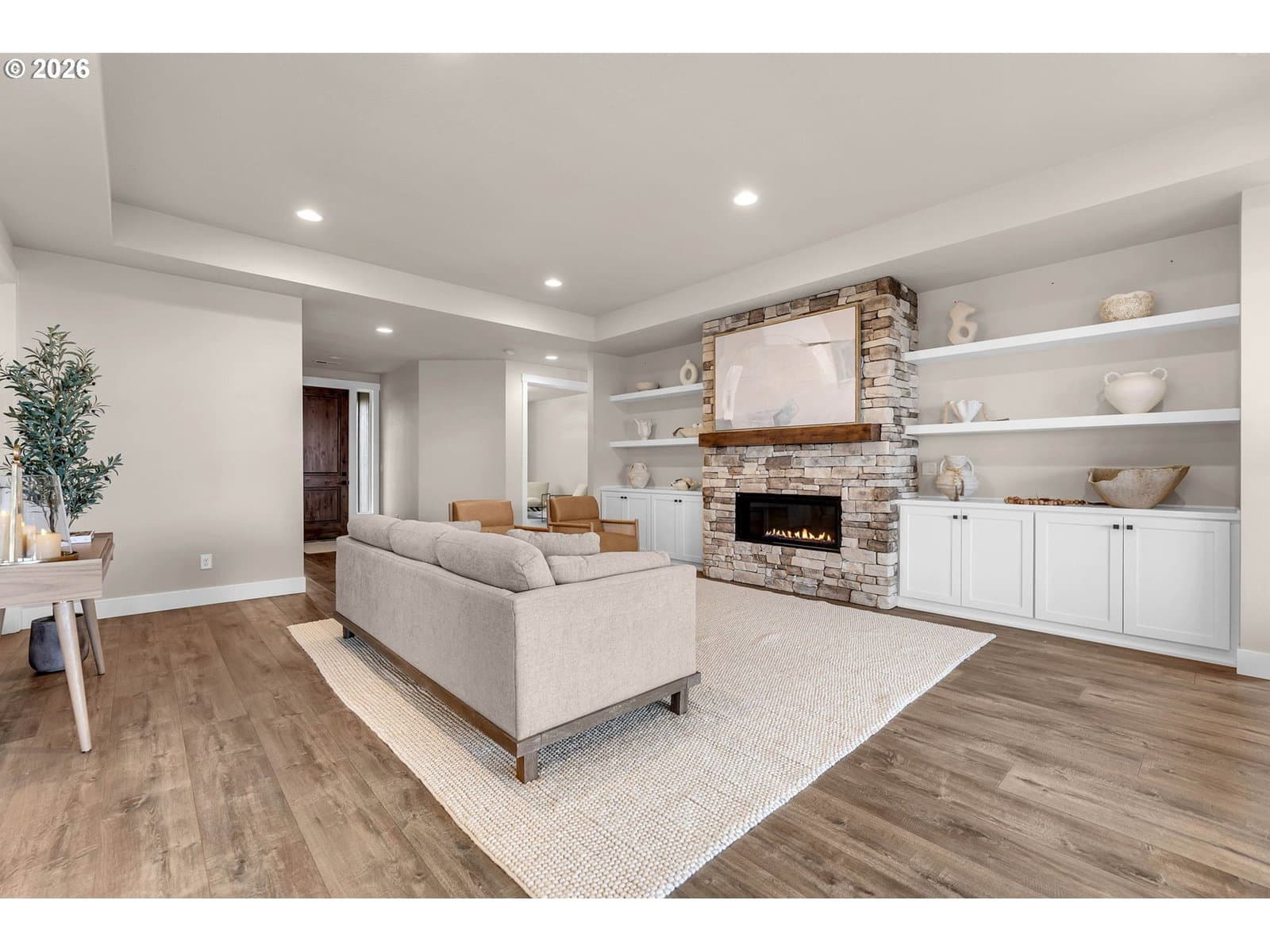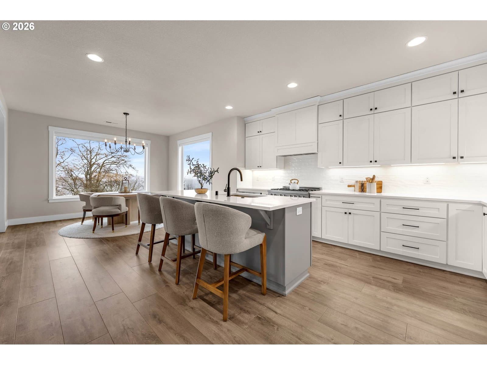 Perched within River Watch Estates, this exceptional single-level residence captures sweeping Columbia River views from the entire western side of the home. Expansive windows frame a constantly changing landscape where ships move quietly along the river, morning light reflects across the water, and evenings end with spectacular sunsets stretching across the horizon. The view is expansive, calming, and ever-changing — a daily reminder of why this vantage point is so special.The home was thoughtfully designed so the primary living spaces fully embrace the setting. The kitchen, dining, and living areas flow seamlessly together, creating an open and comfortable environment ideal for both everyday living and entertaining. A spacious kitchen with quartz surfaces, a gas range, and a walk-in pantry offers both style and functionality, while the living room’s cultured stone fireplace with built-in cabinetry and open shelving provides a warm and inviting focal point.Wide-plank flooring and a soft neutral palette carry throughout the home, allowing the natural light and the river views to take center stage. Electronic blinds provide privacy and shade when needed while still allowing the home to remain bright and connected to the landscape outside.The primary suite offers a relaxing retreat with a soaking tub, glass shower enclosure, and an oversized walk-in closet designed for comfort and convenience.Set on a generous corner lot, the property offers the presence of outdoor space while remaining beautifully low maintenance. The yard has been intentionally designed to minimize upkeep, allowing more time to enjoy the surroundings rather than spend weekends maintaining them. The covered composite deck with overhead heaters extends the living space outdoors, creating the perfect place to unwind while taking in the river, watching passing ships, or enjoying the dramatic western sunsets.Directly across the way, Horizon Park. Vacation where you live right here in Kalama.