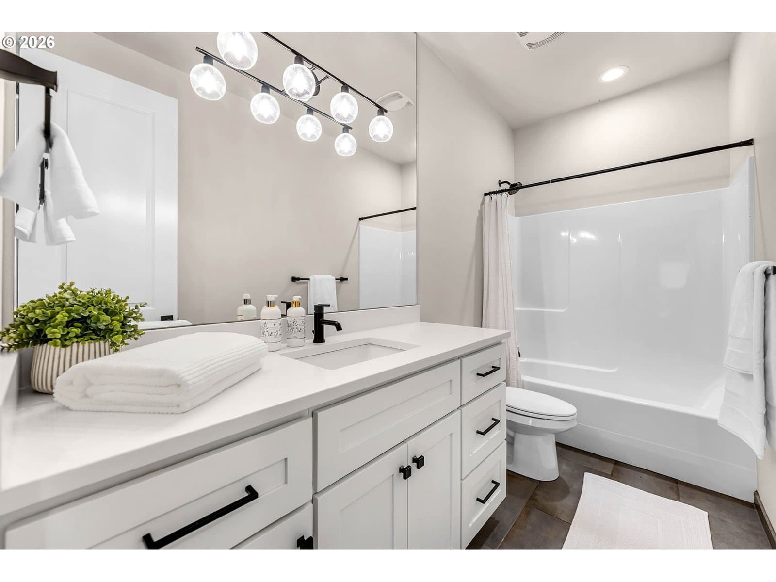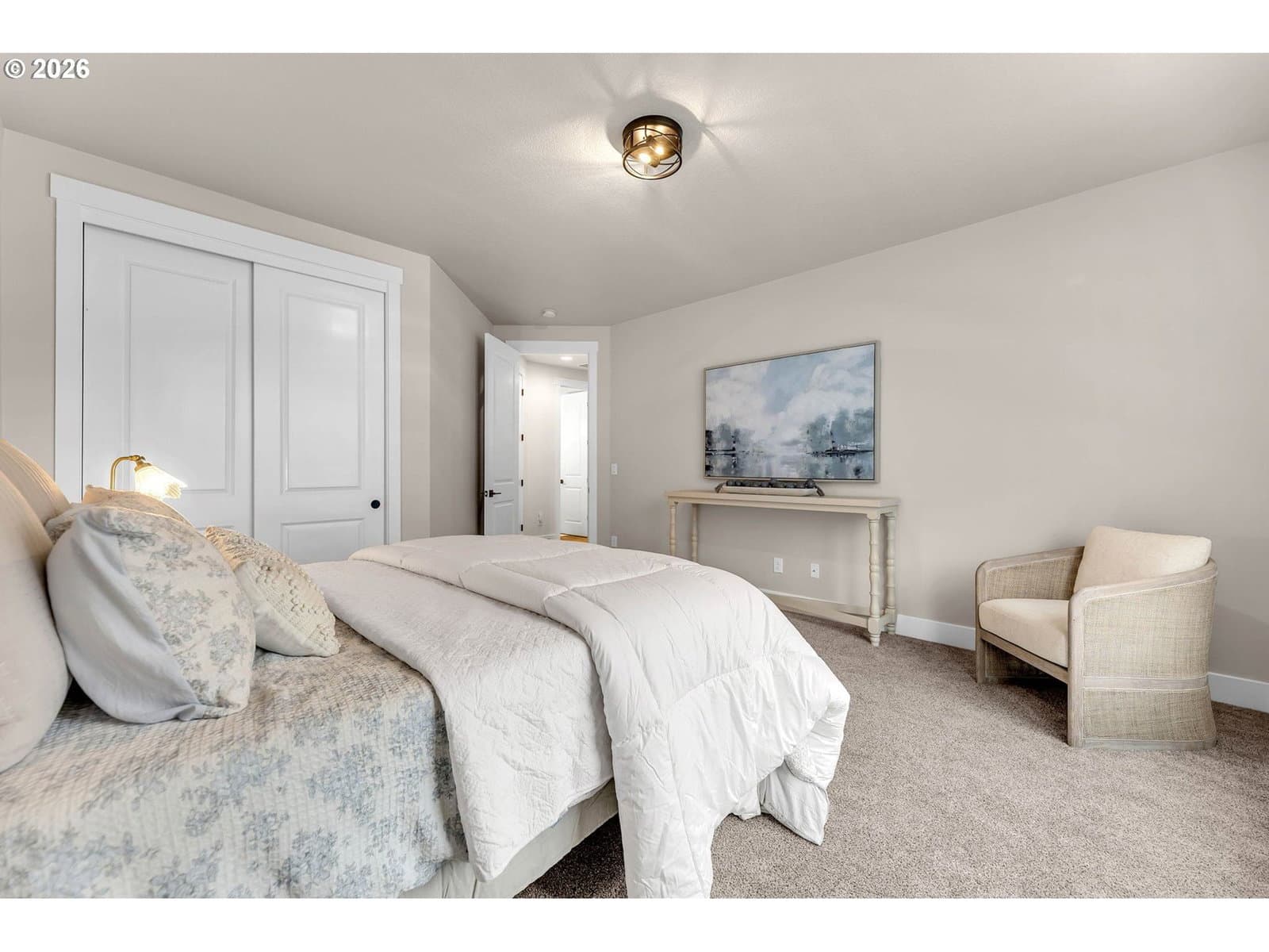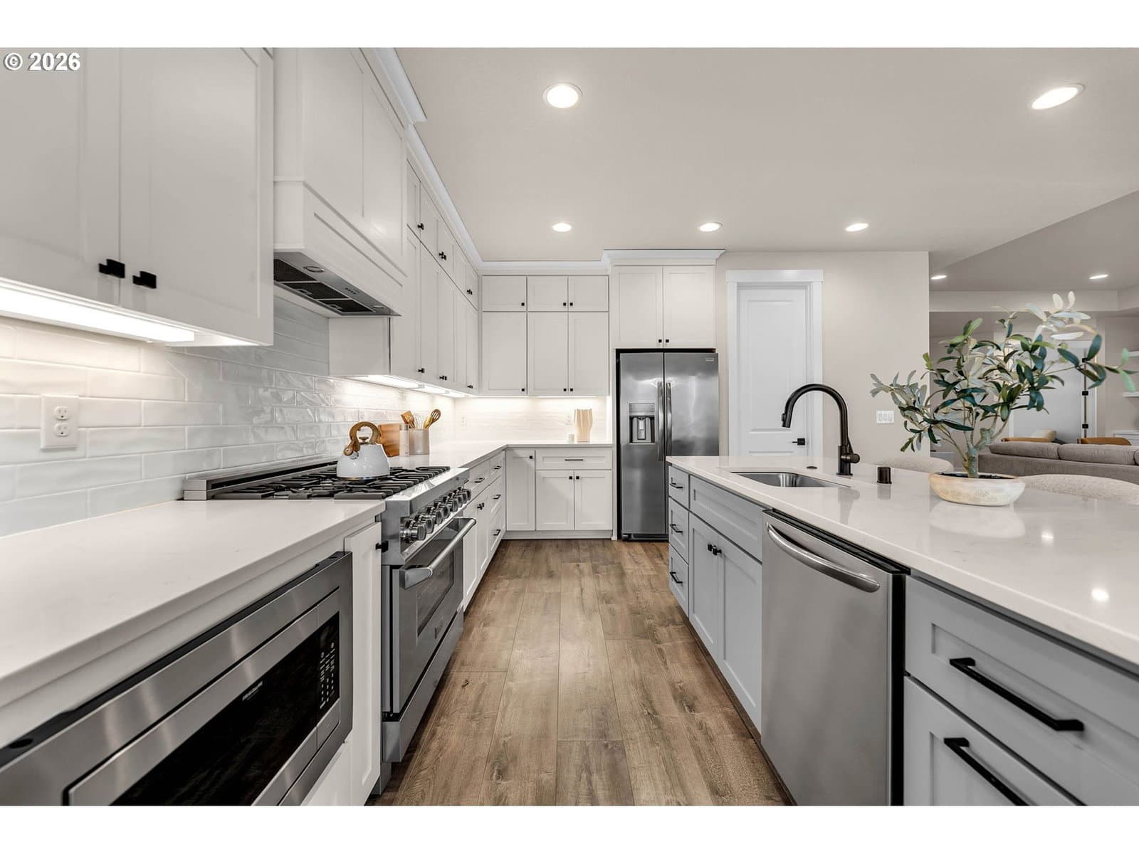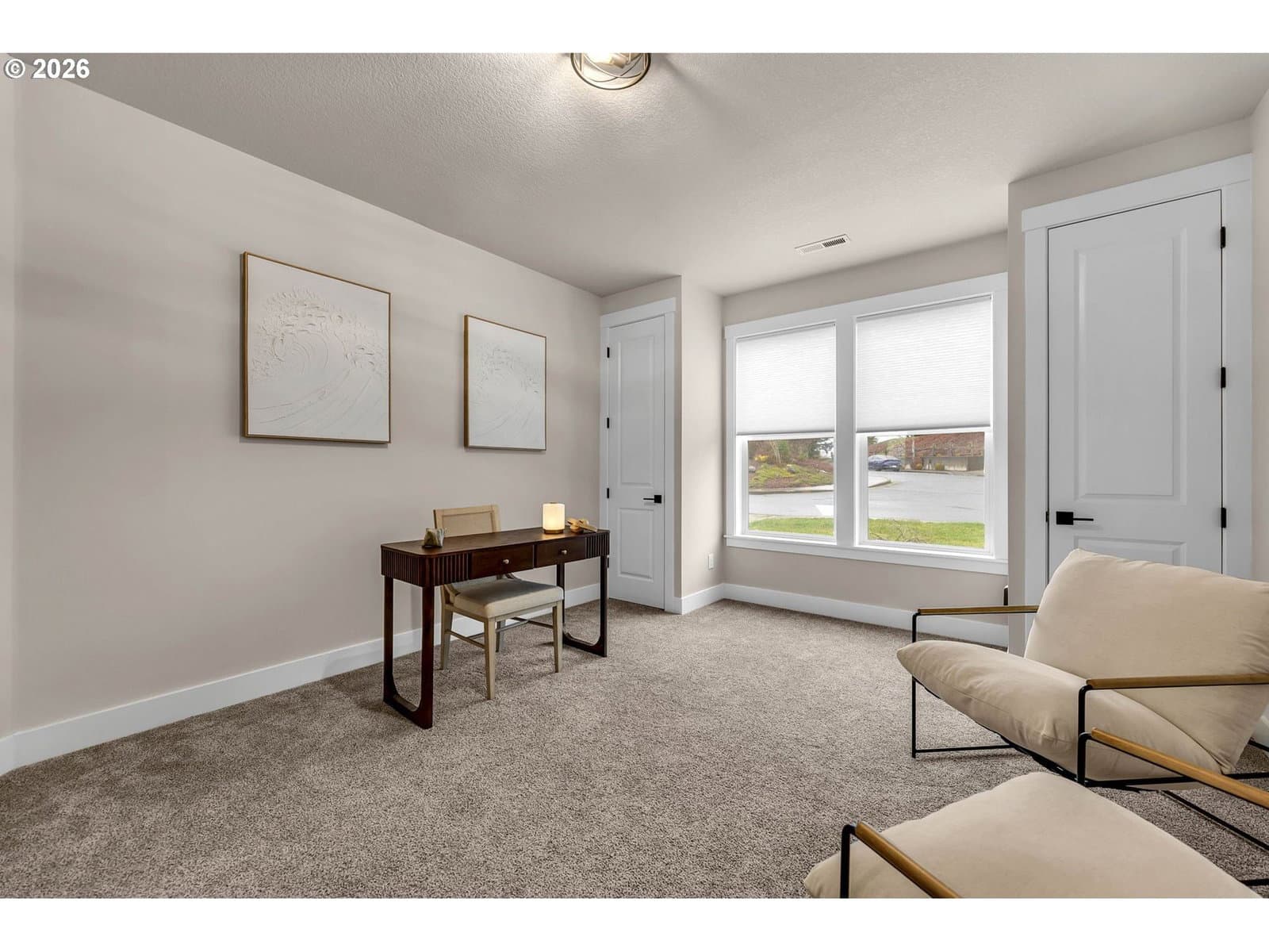 Perched within River Watch Estates, this exceptional single-level residence captures sweeping Columbia River views from the entire western side of the home. Expansive windows frame a constantly changing landscape where ships move quietly along the river, morning light reflects across the water, and evenings end with spectacular sunsets stretching across the horizon. The view is expansive, calming, and ever-changing — a daily reminder of why this vantage point is so special.The home was thoughtfully designed so the primary living spaces fully embrace the setting. The kitchen, dining, and living areas flow seamlessly together, creating an open and comfortable environment ideal for both everyday living and entertaining. A spacious kitchen with quartz surfaces, a gas range, and a walk-in pantry offers both style and functionality, while the living room’s cultured stone fireplace with built-in cabinetry and open shelving provides a warm and inviting focal point.Wide-plank flooring and a soft neutral palette carry throughout the home, allowing the natural light and the river views to take center stage. Electronic blinds provide privacy and shade when needed while still allowing the home to remain bright and connected to the landscape outside.The primary suite offers a relaxing retreat with a soaking tub, glass shower enclosure, and an oversized walk-in closet designed for comfort and convenience.Set on a generous corner lot, the property offers the presence of outdoor space while remaining beautifully low maintenance. The yard has been intentionally designed to minimize upkeep, allowing more time to enjoy the surroundings rather than spend weekends maintaining them. The covered composite deck with overhead heaters extends the living space outdoors, creating the perfect place to unwind while taking in the river, watching passing ships, or enjoying the dramatic western sunsets.Directly across the way, Horizon Park. Vacation where you live right here in Kalama.