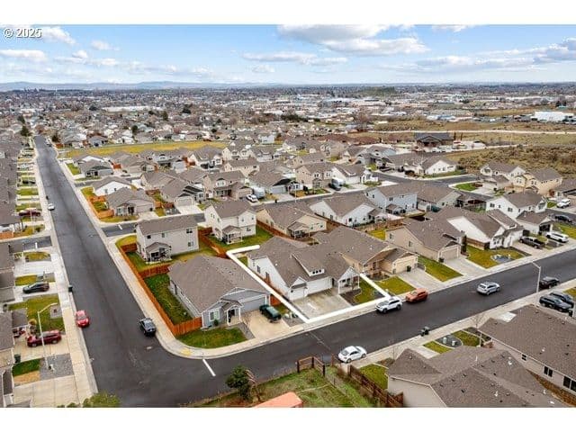 Discover this charming one-owner farmhouse-style home, built in 2022 and thoughtfully designed for modern living. Offering 4 spacious bedrooms and 2 baths, this home welcomes you with open-concept living spaces that blend comfort and style.The chef-inspired kitchen features quartz countertops, a generous island bar, and stainless steel appliances, making it the perfect centerpiece for gatherings and everyday living.The owner’s suite provides a true retreat, complete with a private en suite showcasing a stand-alone soaking tub, walk-in shower, and an oversized closet for exceptional storage.Step outside to enjoy a covered patio overlooking the fenced backyard—ideal for relaxing evenings, playtime, or entertaining guests.Built with care and maintained with pride, this farmhouse gem is ready to welcome its next owner.