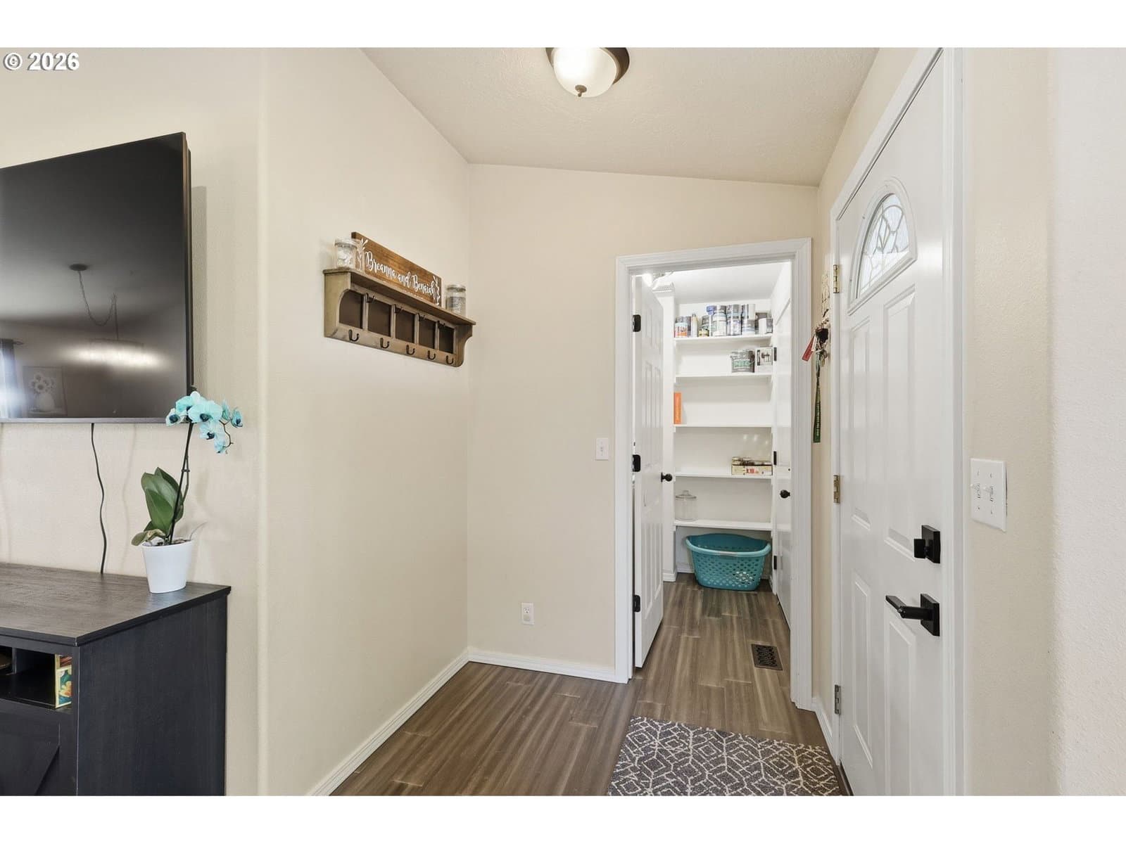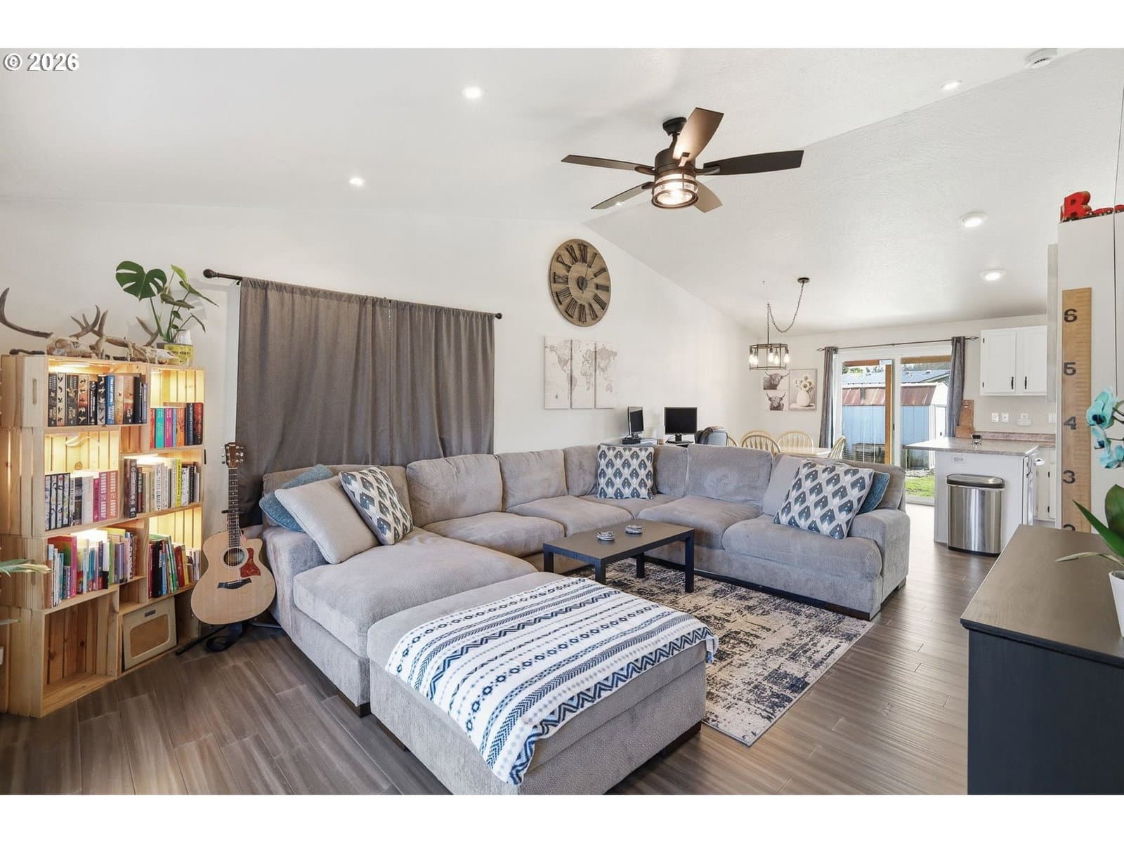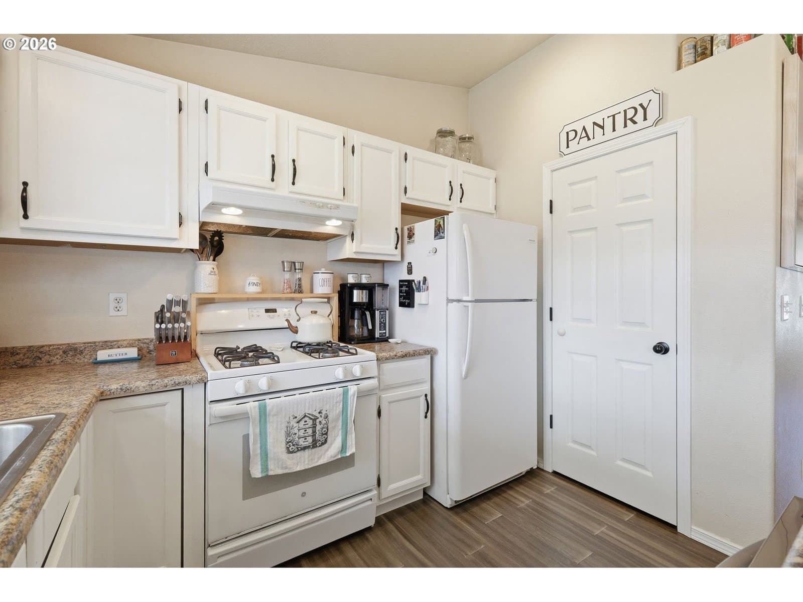 Located on a quiet, dead-end street in Cottage Grove, this well maintained single level home offers 3 bedrooms and 2 bathrooms. The spacious living room features vaulted ceilings and a bay window, creating an open and functional living space. The kitchen includes free standing gas stove, an eating bar, pantry, and abundant cabinet storage. New flooring has been installed throughout the main living areas. Vinyl windows and a forced air heating/cooling system provide year round comfort and efficiency. The bedrooms are nicely sized, and the layout offers practical, everyday livability.Outside, you’ll find a fully fenced backyard, covered patio, and a storage shed for tools and equipment. Driveway behind house allows for backyard access.Cottage Grove is known for its small town feel and access to outdoor recreation. Enjoy weekends at Dorena Lake, biking or walking the Row River Trail, or exploring the area’s historic covered bridges. This home is just minutes from the newly renovated Main Street, featuring art walks, local eateries, and classic small-town charm. All within a quick commute to Eugene, U of O, and Lane community College. If you’ve been looking for a solid starter home, this is the one! Move-in ready homes in this price range are becoming harder to find, making this a smart opportunity for first-time buyers, investors, or anyone looking for a well kept, low maintenance property in a great location. Agent is related to seller.